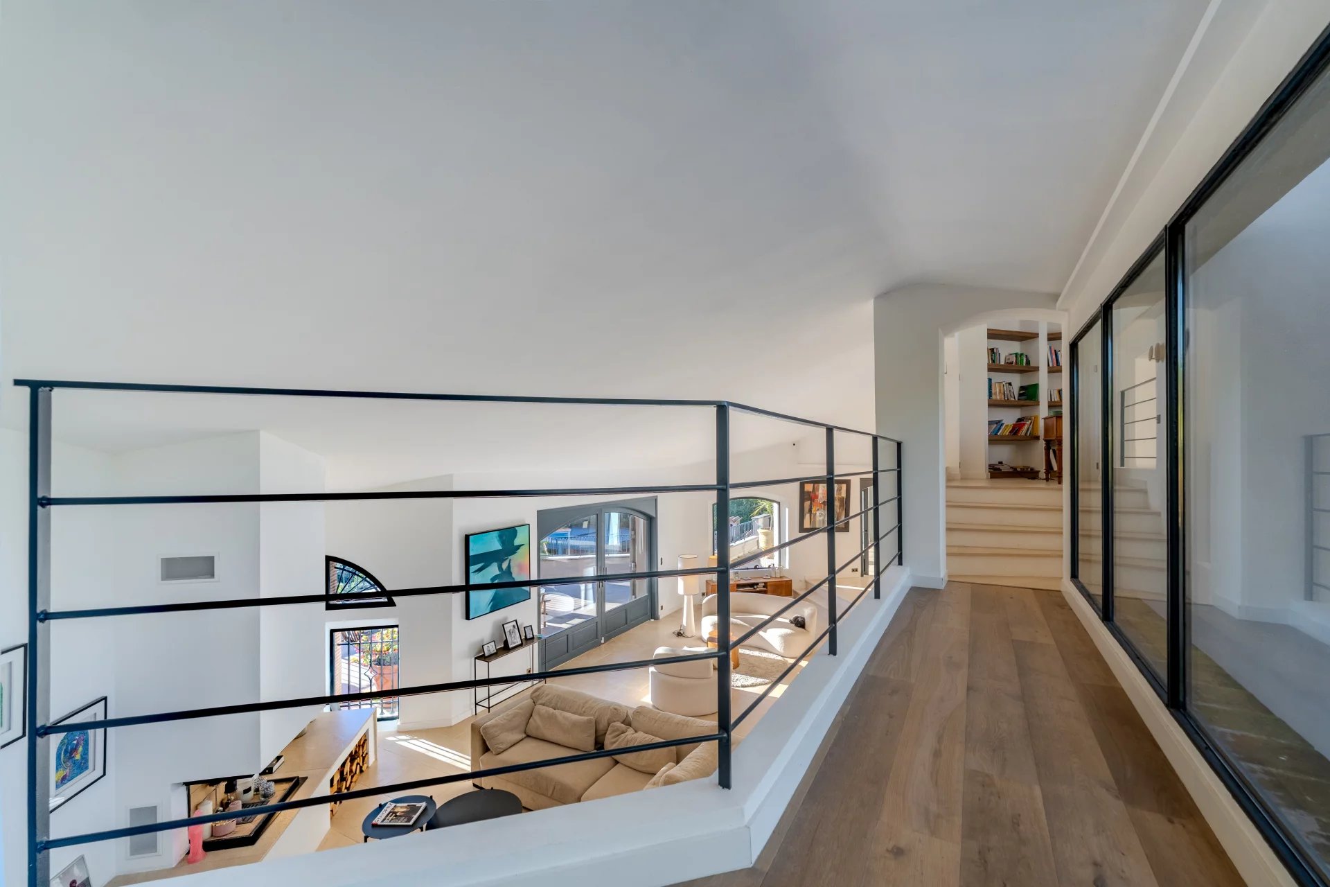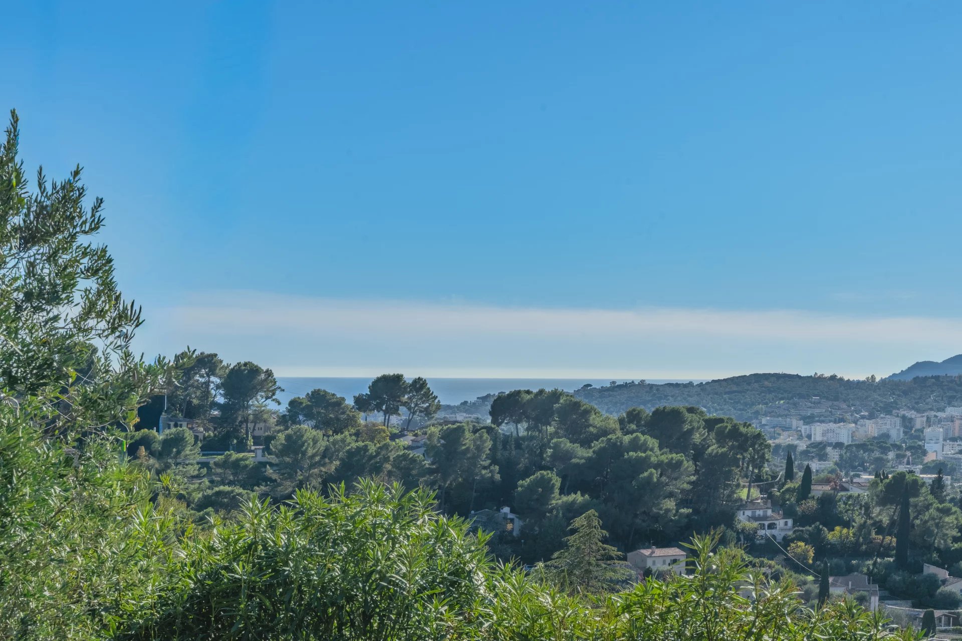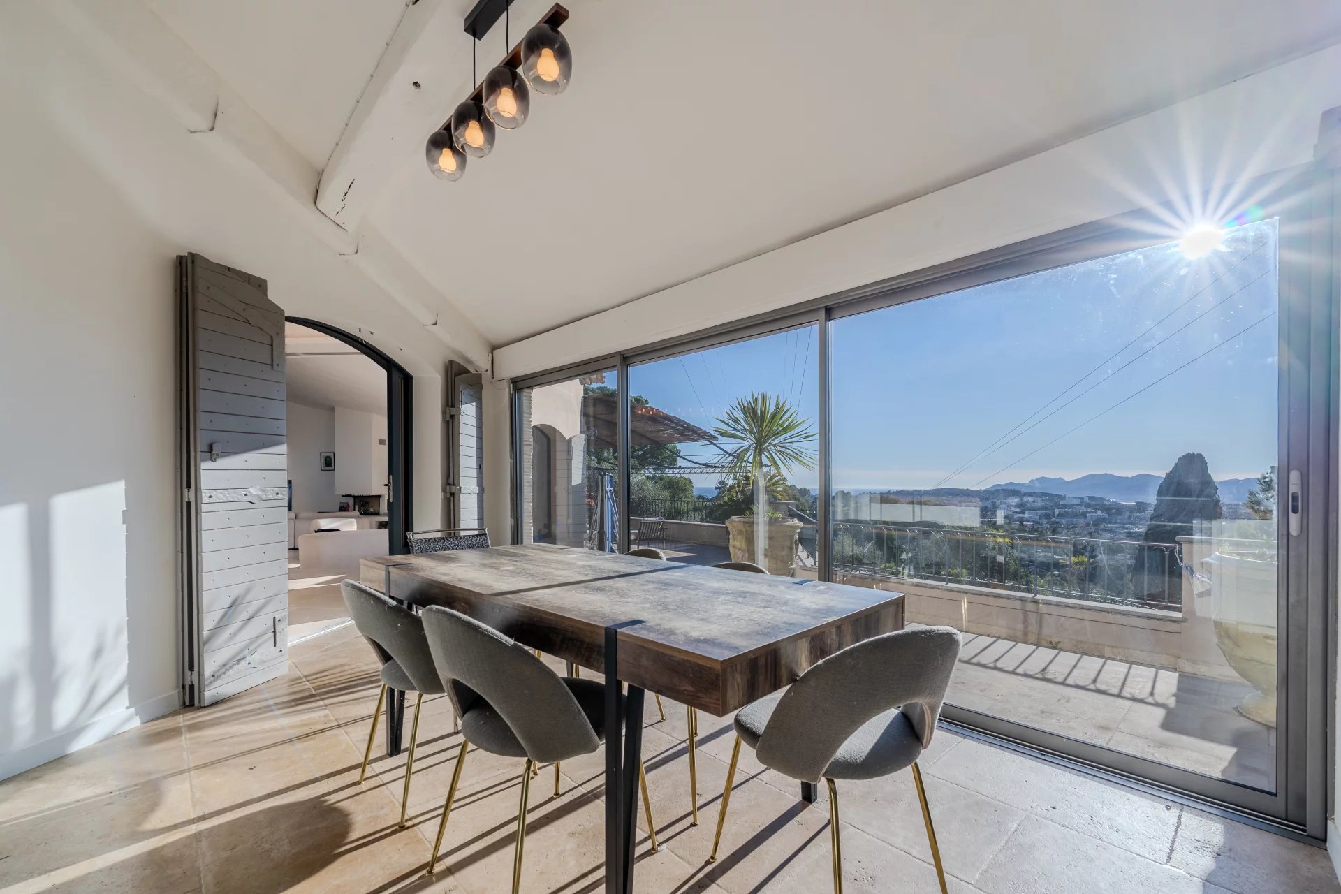 Exceptional, fully renovated villa located in one of Mougins’ most sought-after areas, close to the Etang de Mougins, with breathtaking views of the sea and the Esterel massif. Built of Portuguese stone, this sumptuous property comprises a first floor, a garden level and an upper floor.