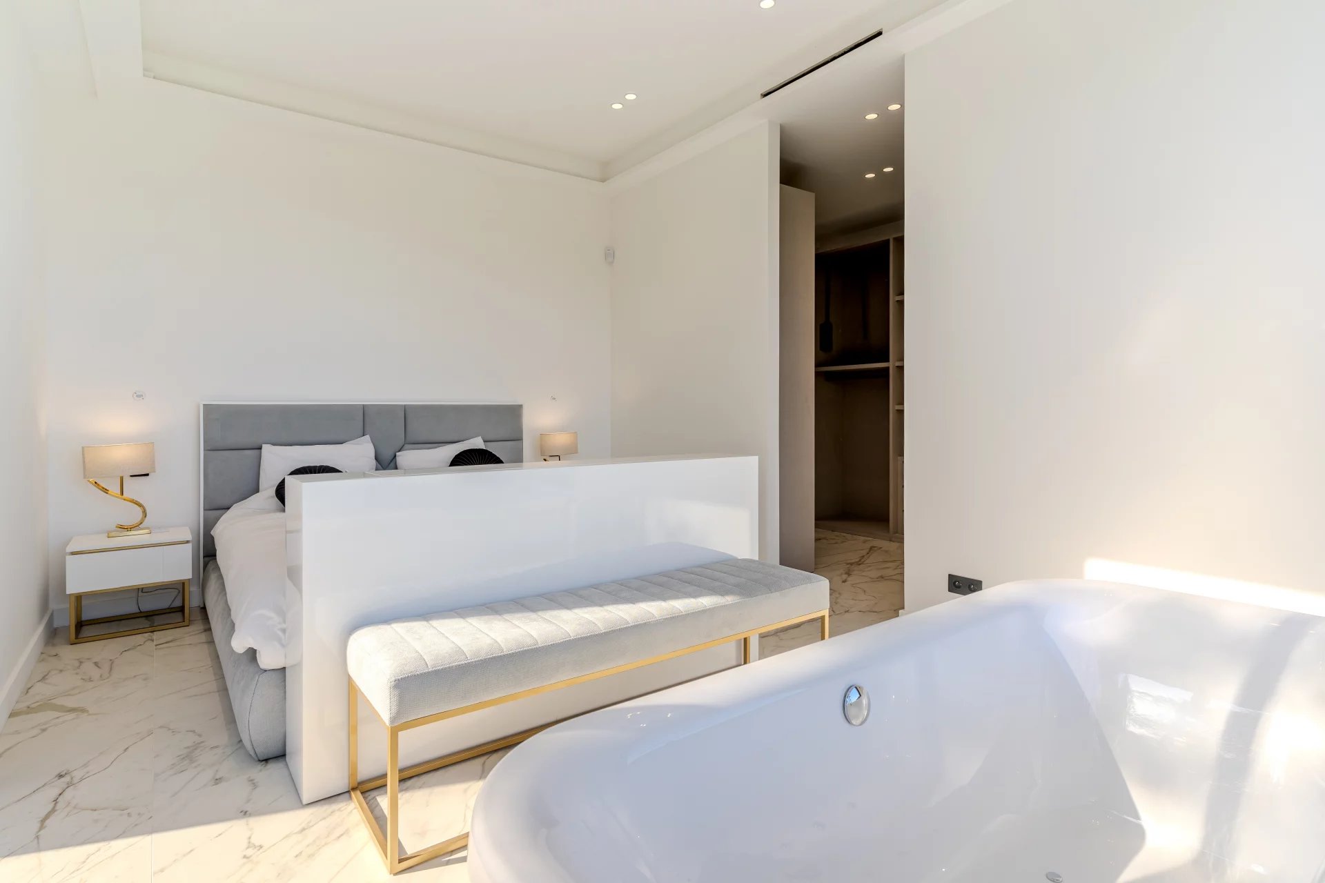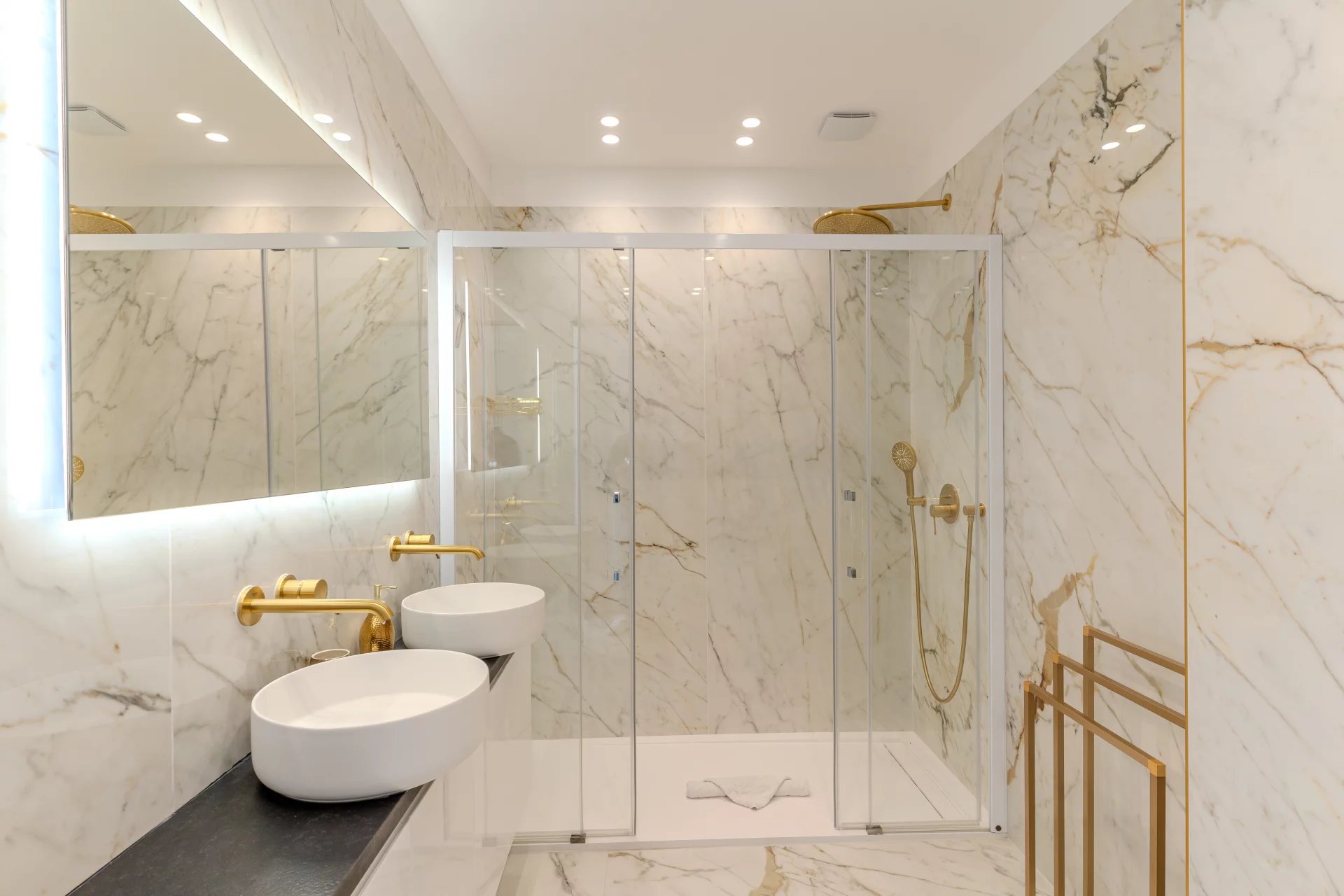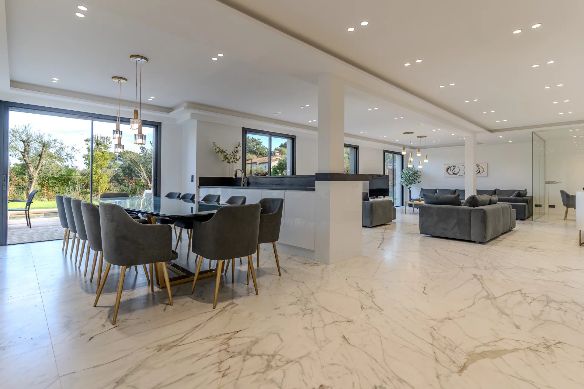 Generous volumes bathed in natural light are organized around elegant, open-plan living spaces, including a convivial lounge and open kitchen, extended by areas dedicated to relaxation and leisure: cinema room, wellness area with sauna and hammam, and a gym.