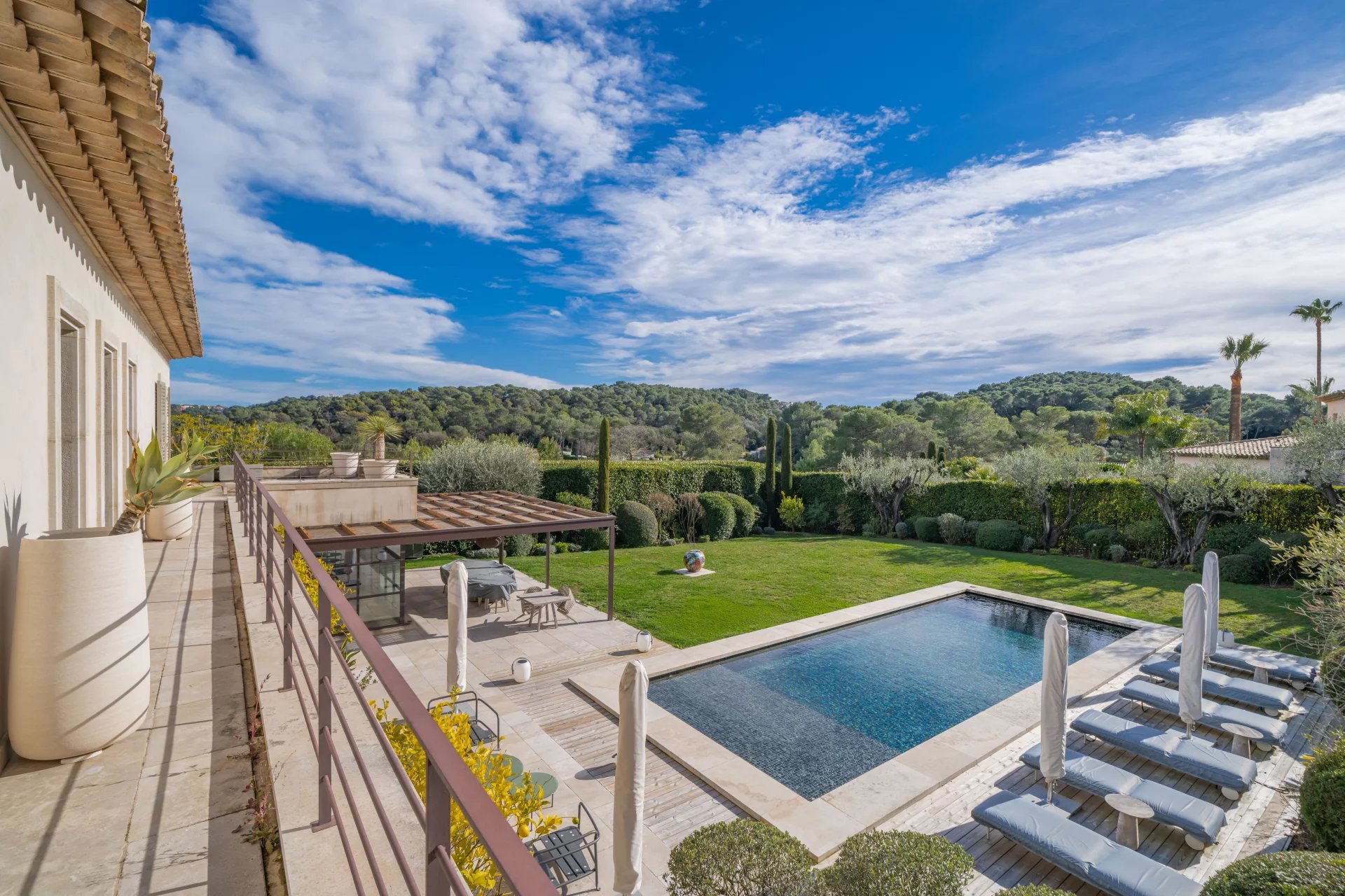 Co-exclusive listing: In absolute tranquility, within a small private estate of just a few luxury villas, stands this superb architect-designed home inspired by a traditional bastide, featuring contemporary interiors.