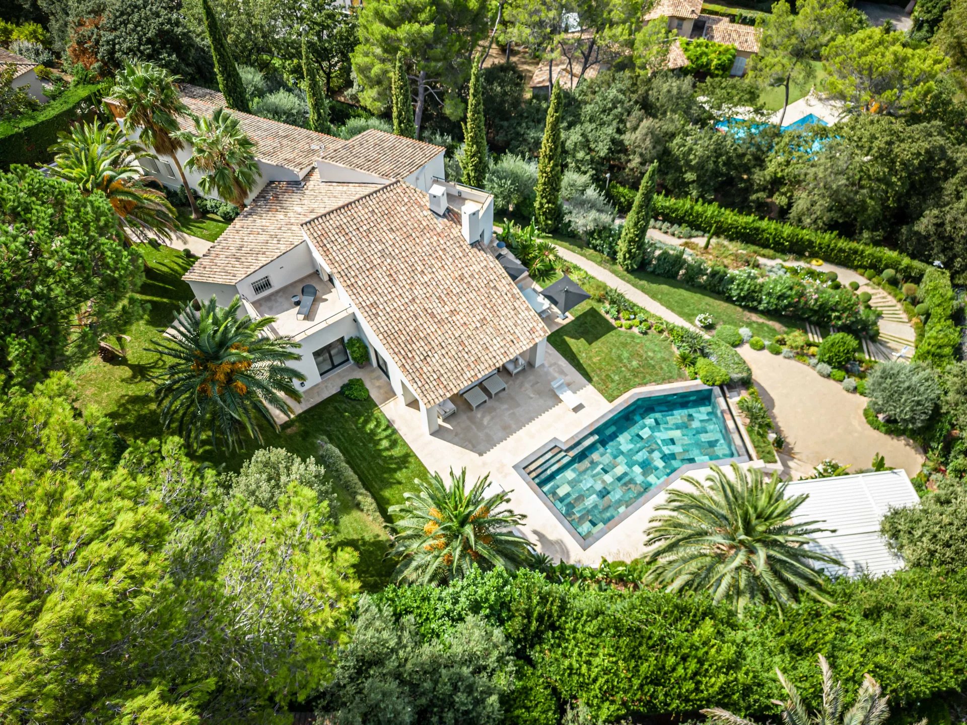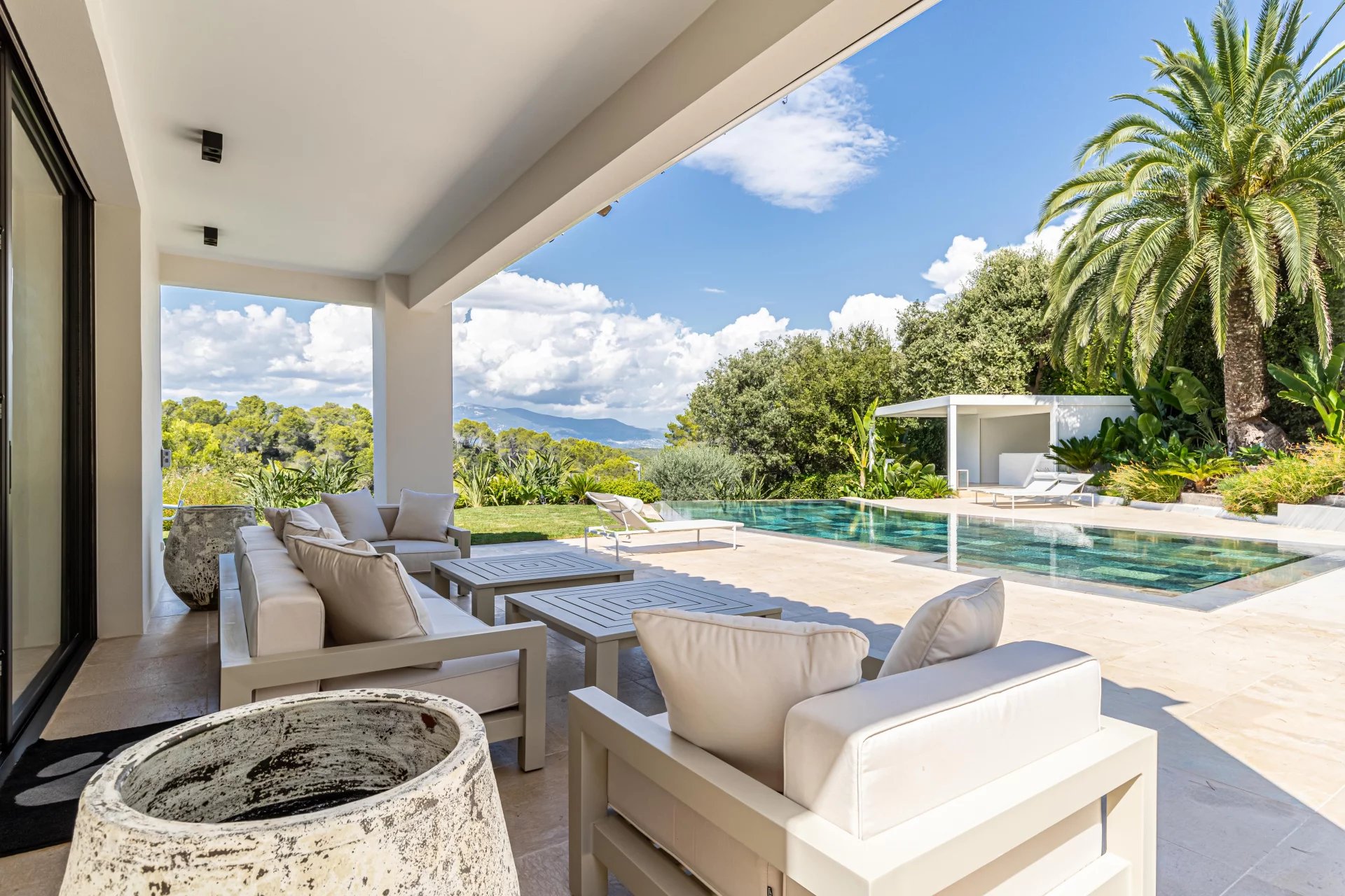 In the very coveted and ultra secure Domaine des Parcs in Mougins, magnificent property of 350m2 completely renovated with high-end finishes. In a dominant position in the middle of the estate, it benefits from an environment of great tranquility and a lovely view of the surrounding nature and the Alps mountains. Inside, the villa has generous volumes and a perfect layout.