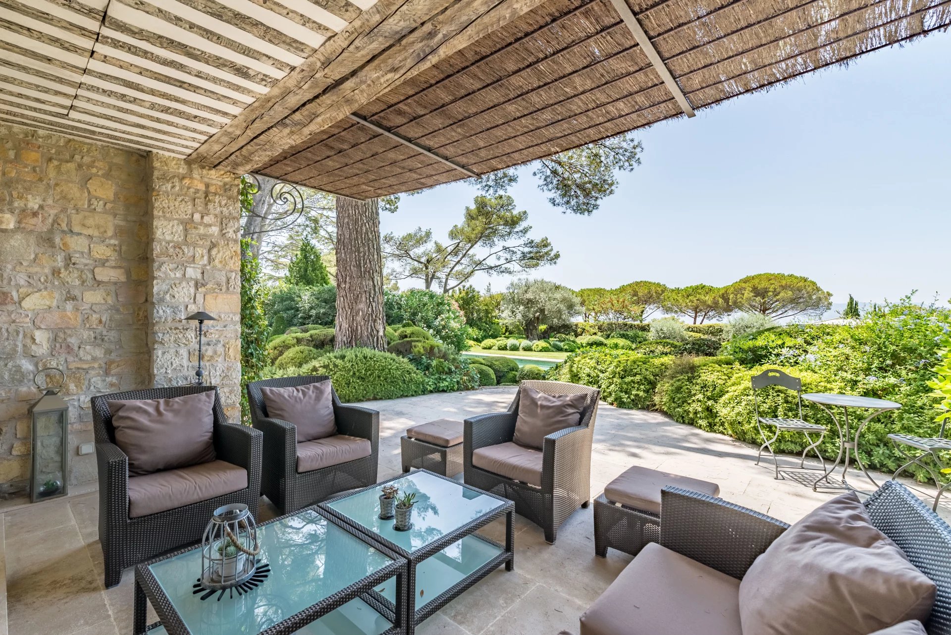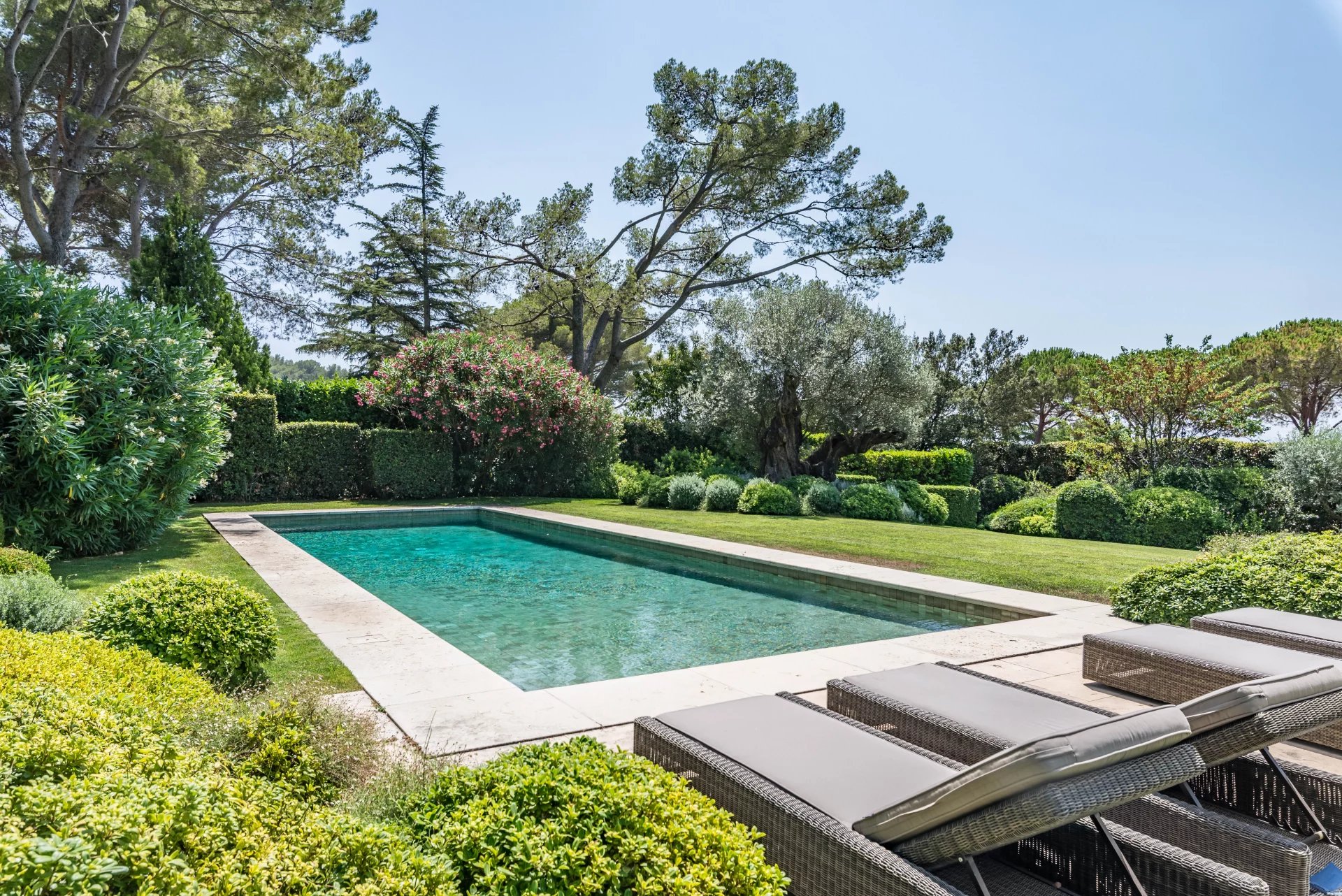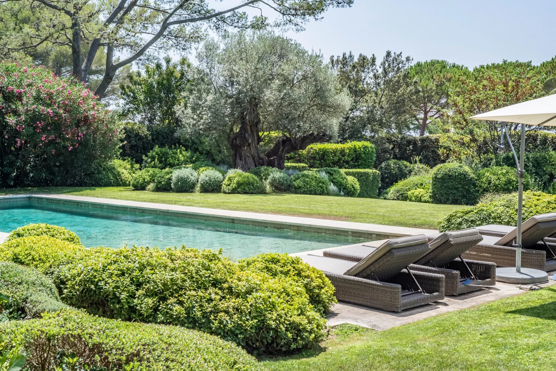 The villa is bordered by numerous terraces and outdoor spaces, as well as a magnificent heated swimming pool.