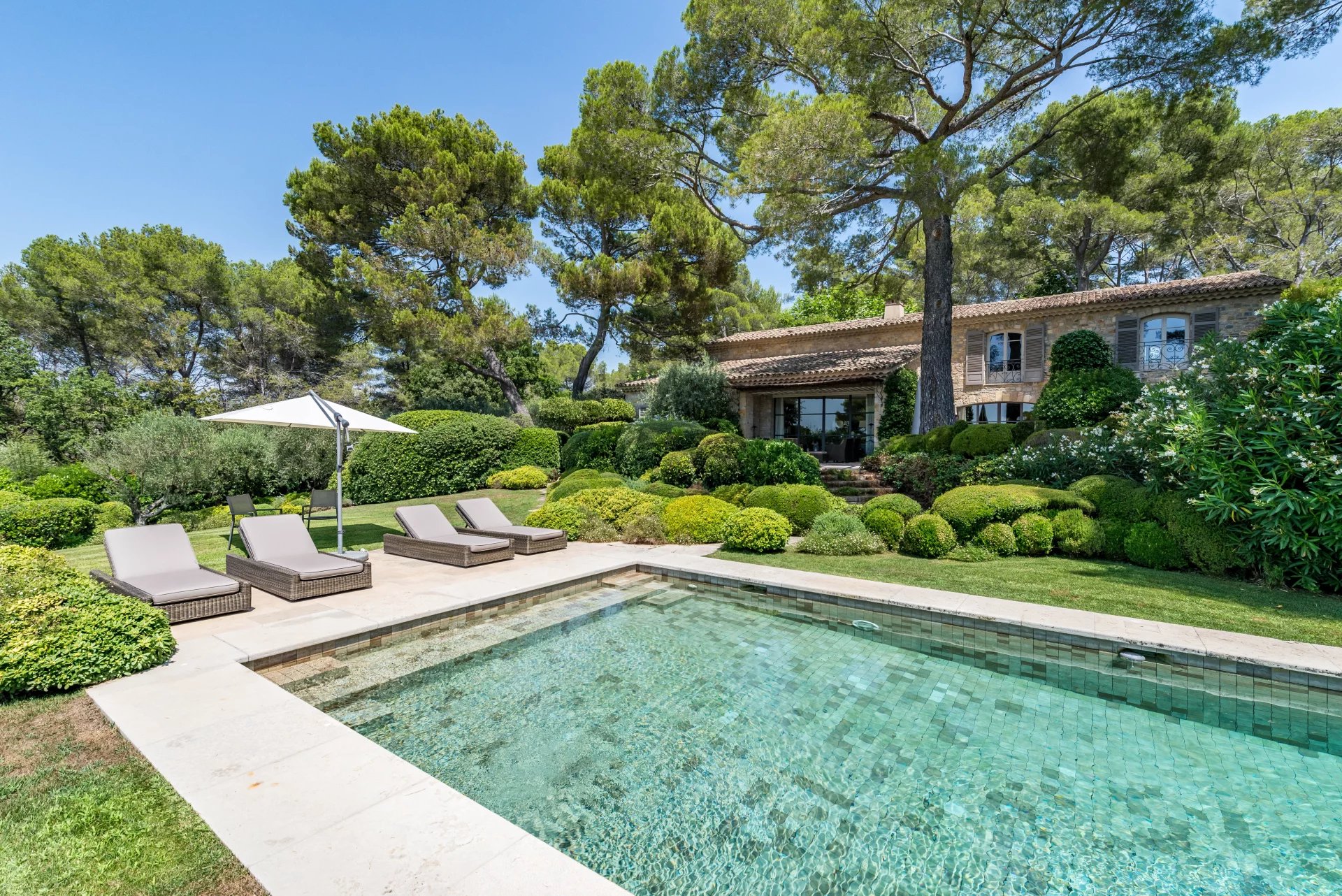 A property full of charm in absolute peace and quiet, fully renovated by architect Pellerin’s, with magnificent landscaped gardens designed by Jean Mus.