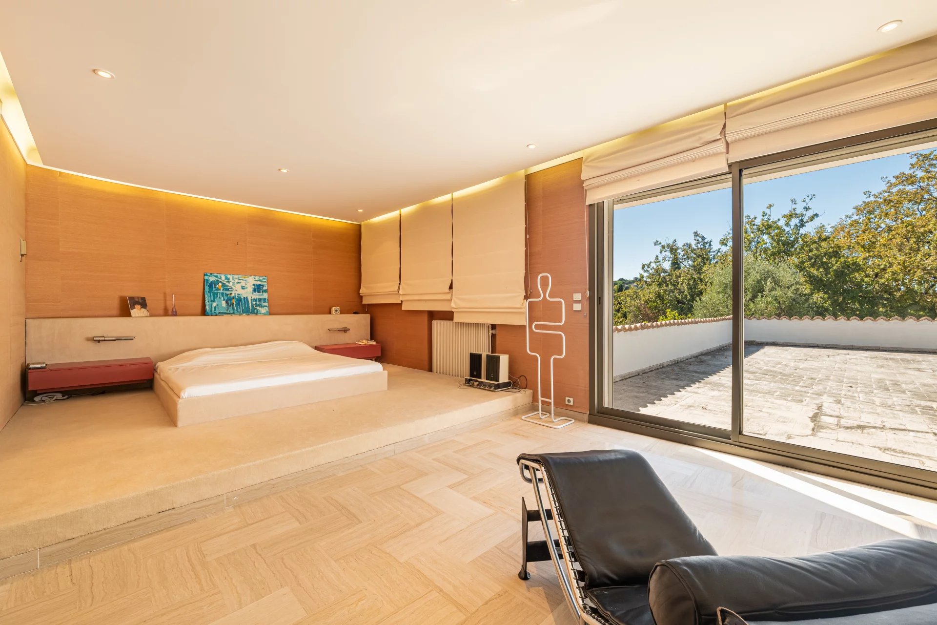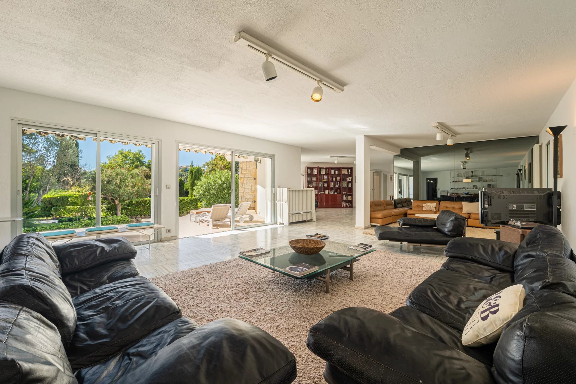 Set in a prestigious residential area of Mougins, this elegant villa of approximately 475 m2 stands at the end of a long, tree-lined driveway, surrounded by nearly 6,500 m2 of landscaped gardens and offering beautiful views of the old village.