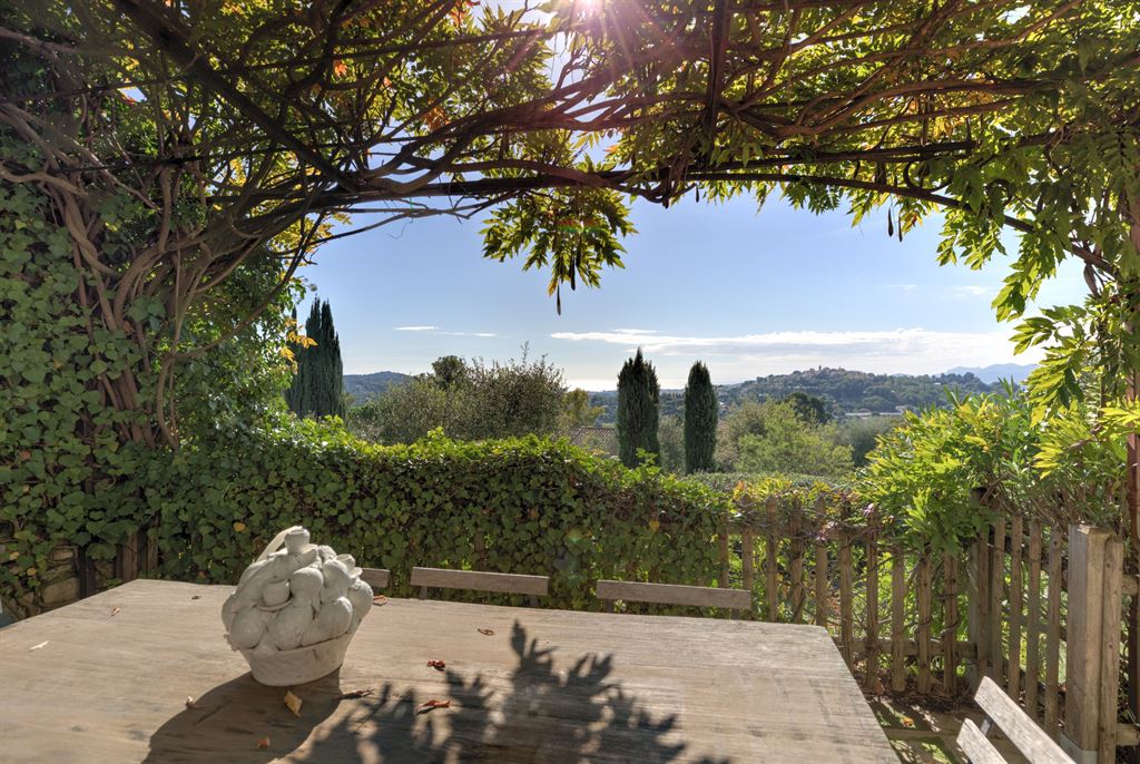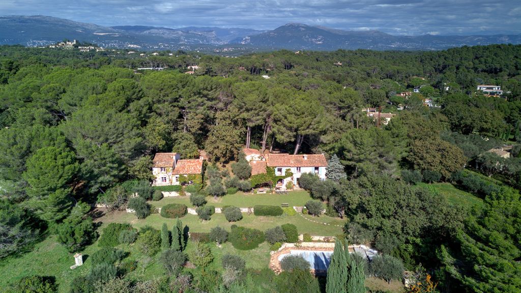 Comprising three stone buildings, it offers exceptional panoramic views of the village of Mougins and the sea, all while being ideally located near the old village, providing a tranquil and preserved living environment.