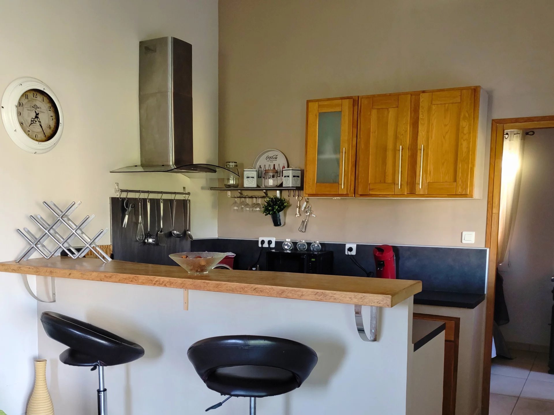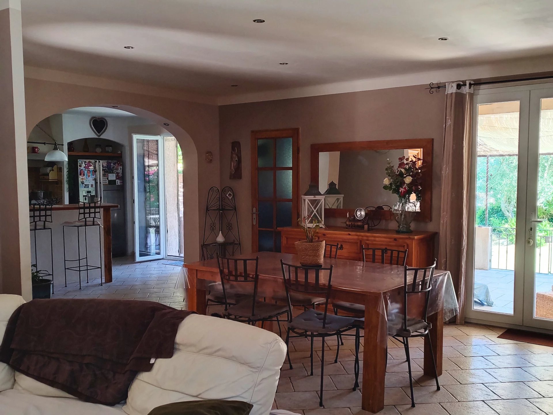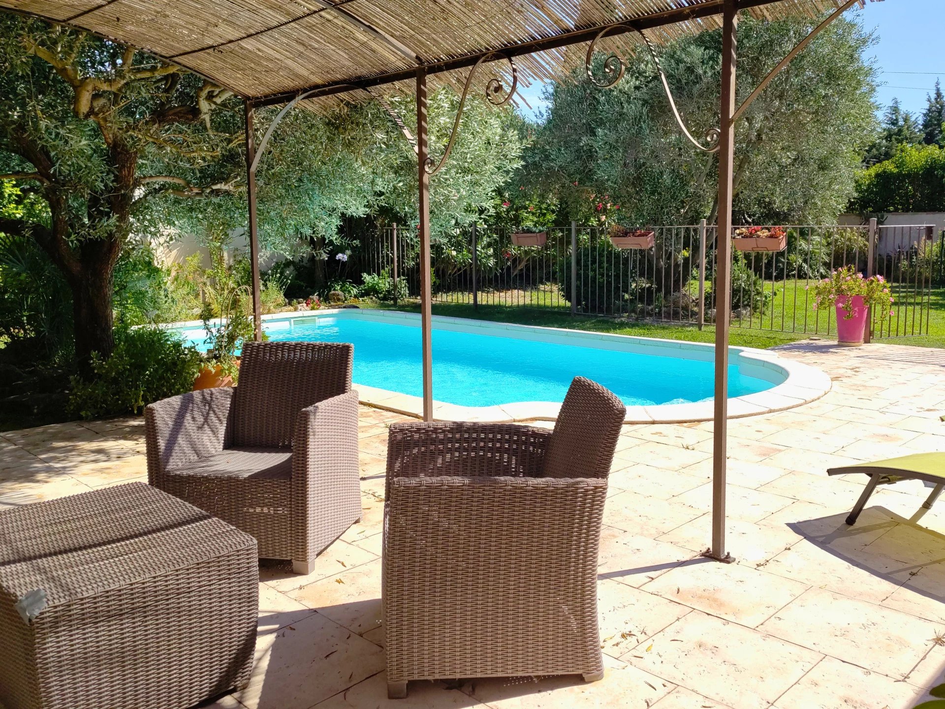An outdoor kitchen and large shaded terraces allow you to make the most of the tree-lined grounds and the swimming pool.