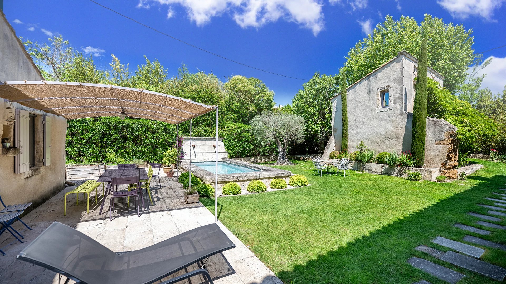 In the village of Mouries, renowned for its olive production, this most attractive 18th Century farmhouse is peacefully positioned at the end of a cul-de-sac.