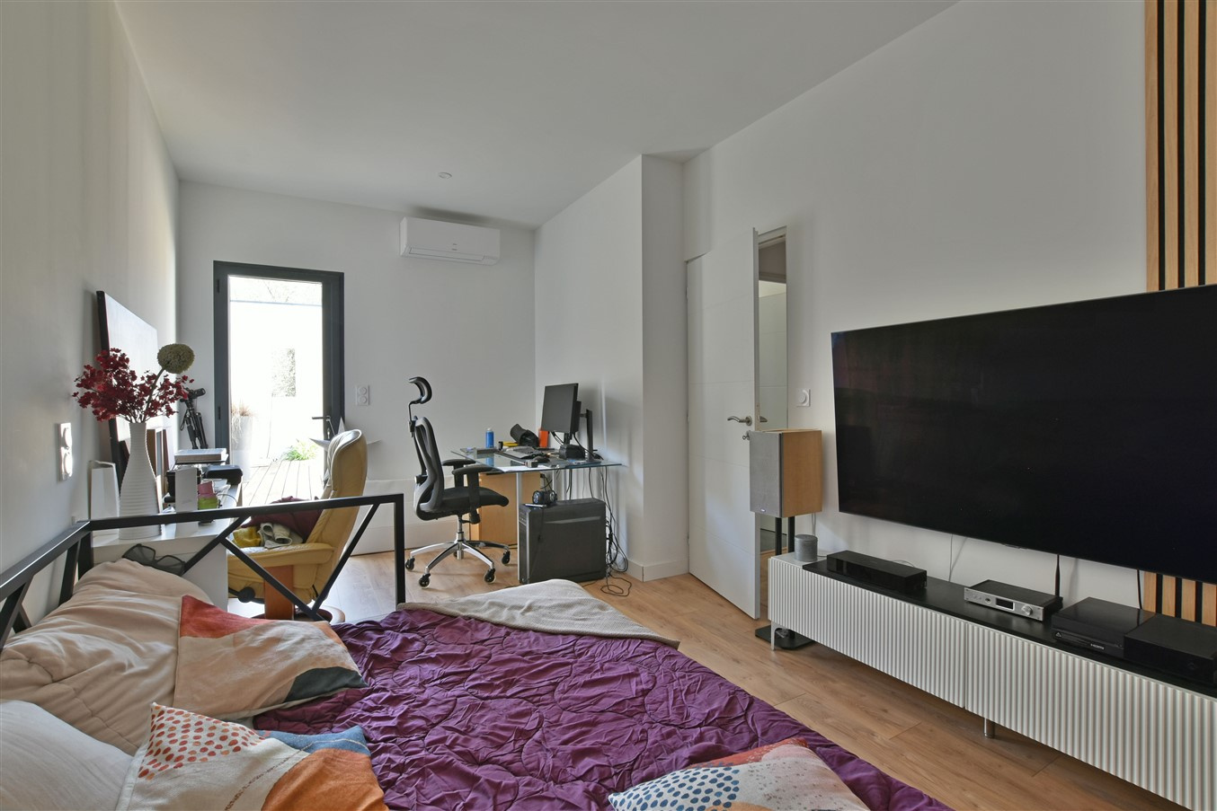 The property also benefits from an independent 15 m2 bedroom with shower room and WC, ideal for guests or a professional practice, adjoining a fully insulated 28 m2 garage (including floor and flat roof insulation).