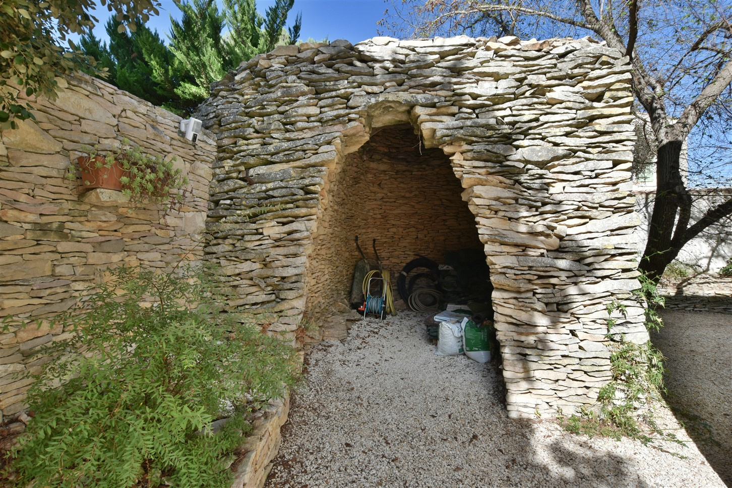 The grounds are enclosed and easy to maintain, with a large parking area and exposed concrete driveway, a mineral garden with Mediterranean species, and a listed hut in very good condition.