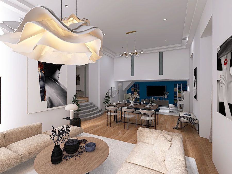 – Spacious double living room with soaring ceilings and abundant natural light