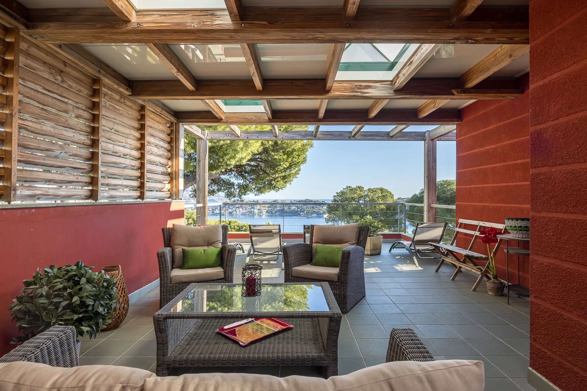 Another asset of this villa is the large covered terrace. It is perfect for outdoor dining, with a barbecue to enjoy summer evenings. You can spend convivial moments with your loved ones while admiring the breathtaking sea view.