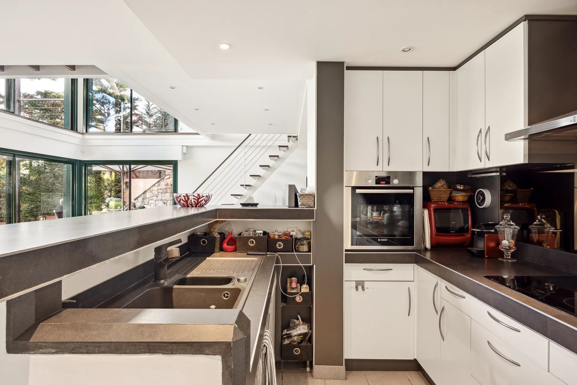 The open-plan kitchen is also a very pleasant living space. It is perfect for family meals or gatherings with friends, with a central island that allows you to prepare meals while enjoying the panoramic view.