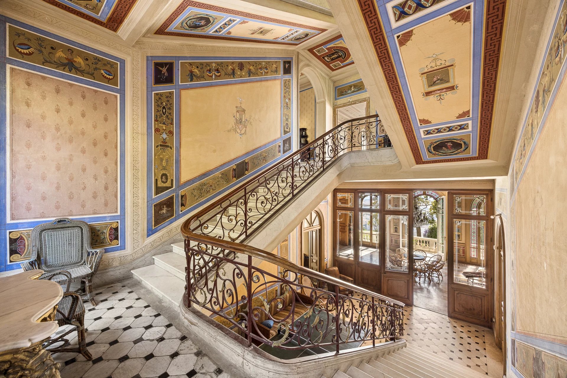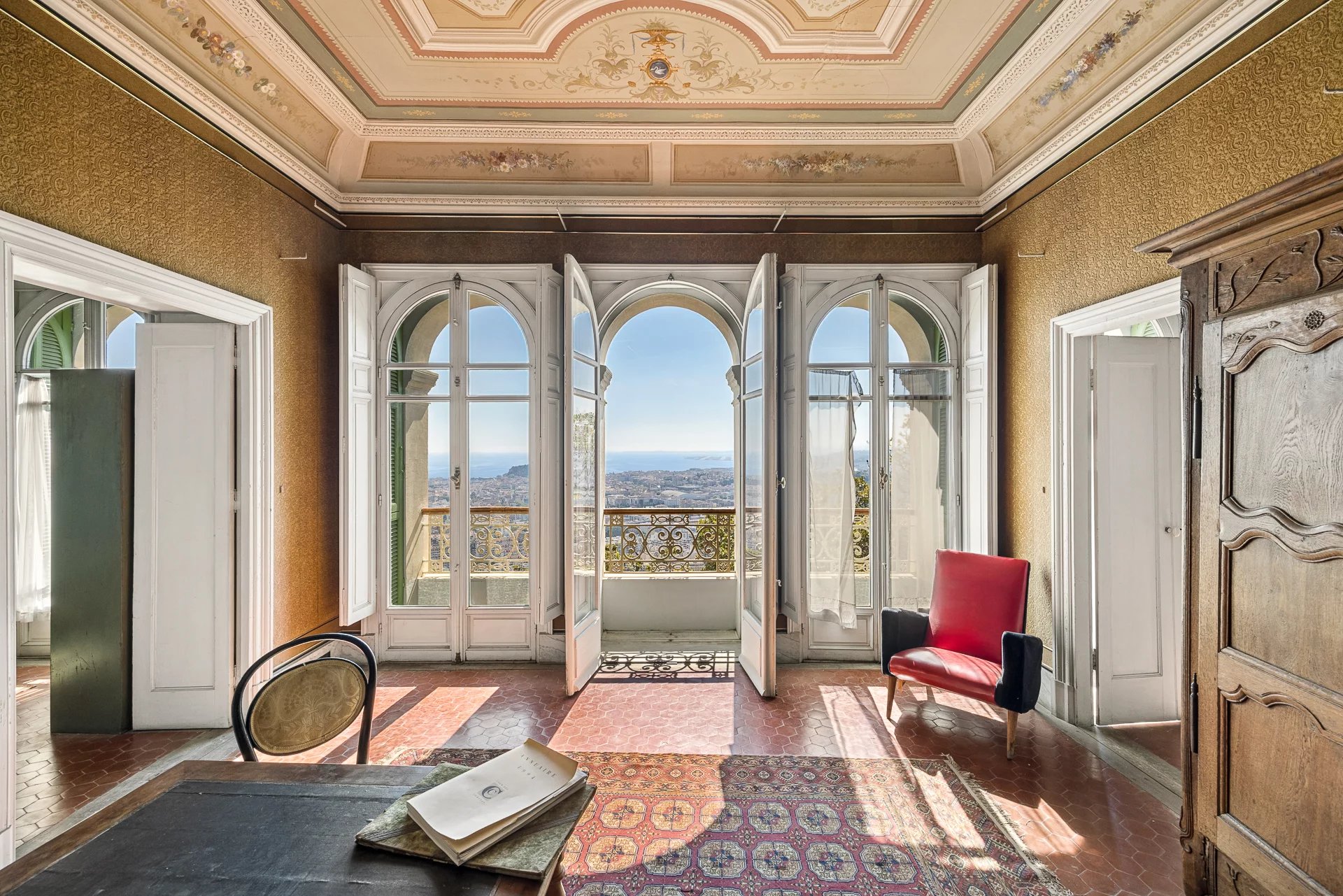 Overlooking the city of Nice, this late 19th-century property offers spectacular views of the Mediterranean and the rooftops of Nice, in a setting that is both peaceful and steeped in history. Listed as a Historic Monument, it embodies a rare architectural style, directly inspired by the Italian Renaissance.