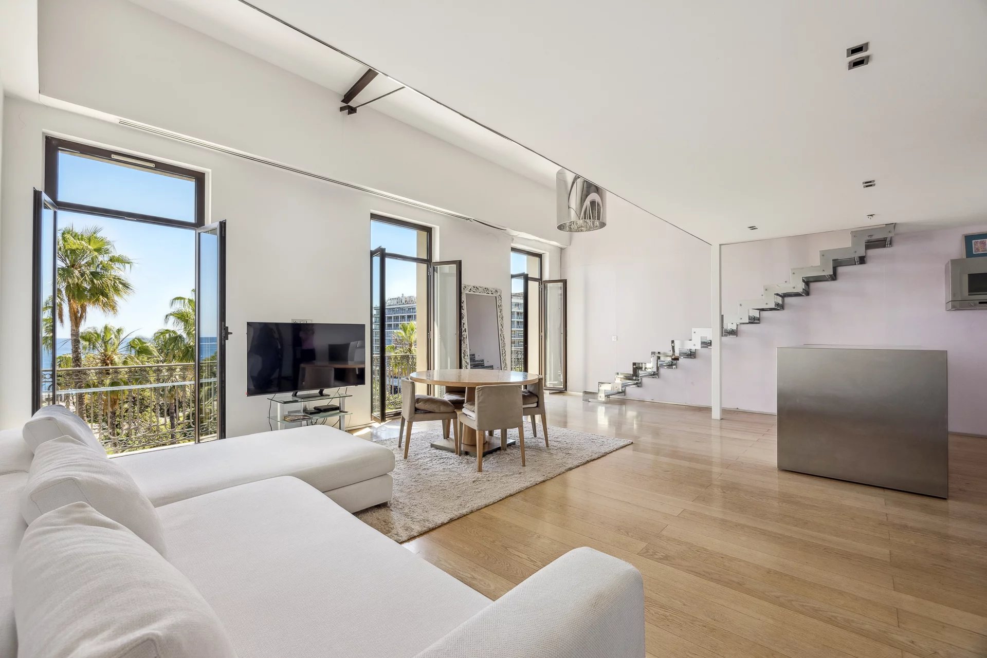A rare jewel in the heart of the Carre d’Or, this exceptional top-floor 3-room apartment offers unobstructed views of the Mediterranean and the lush gardens along the iconic Promenade des Anglais—a location that epitomizes the elegance of the French Riviera.
