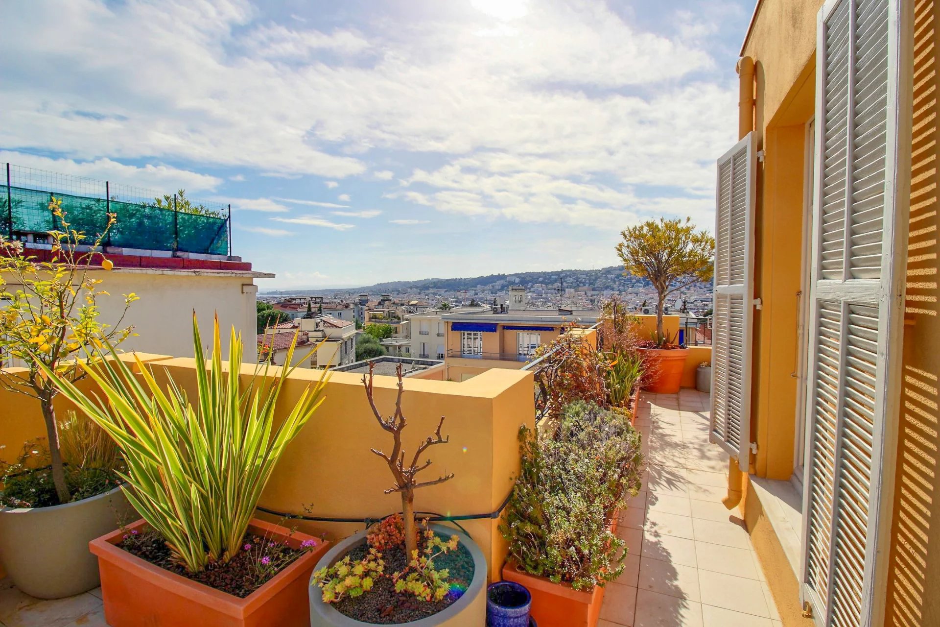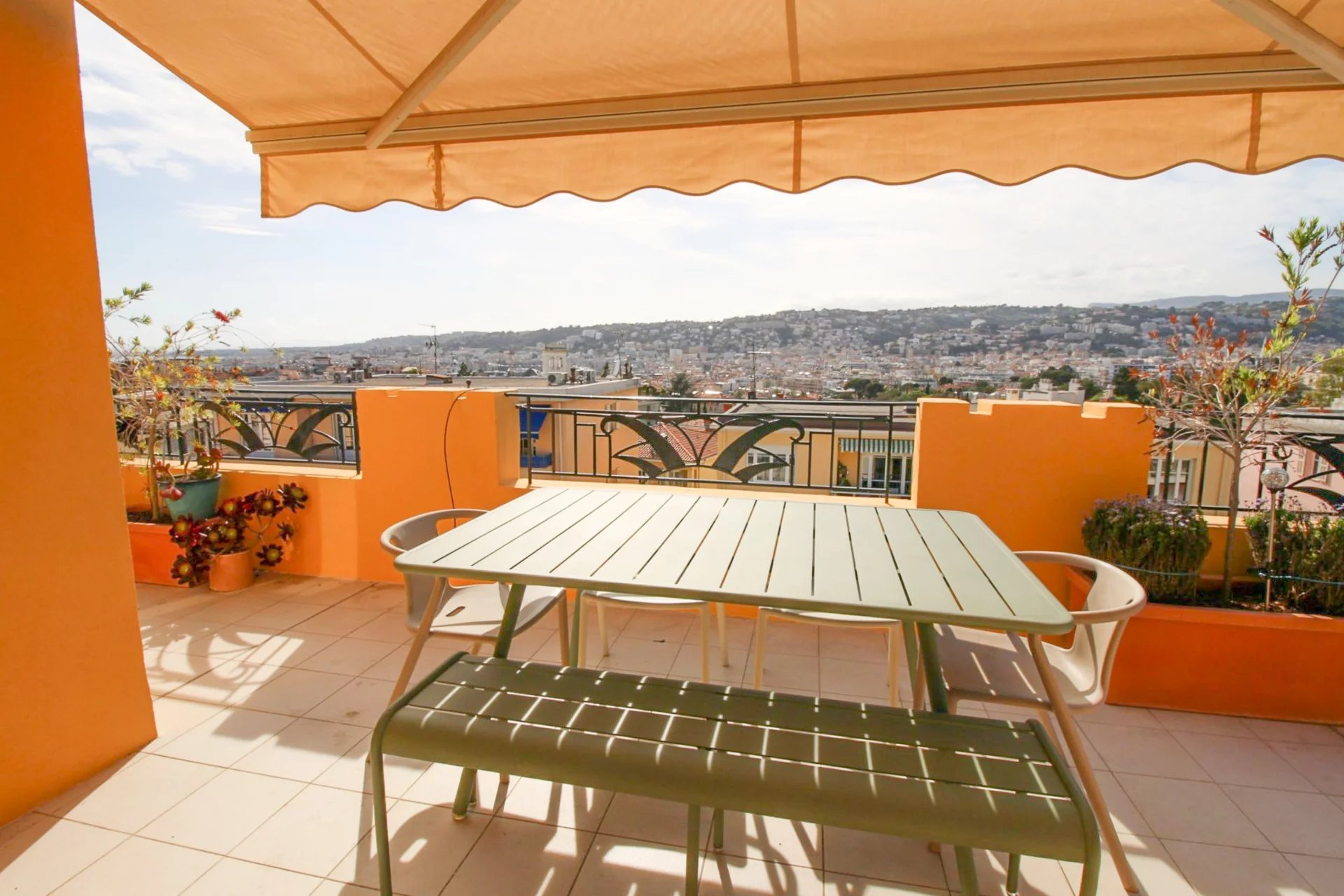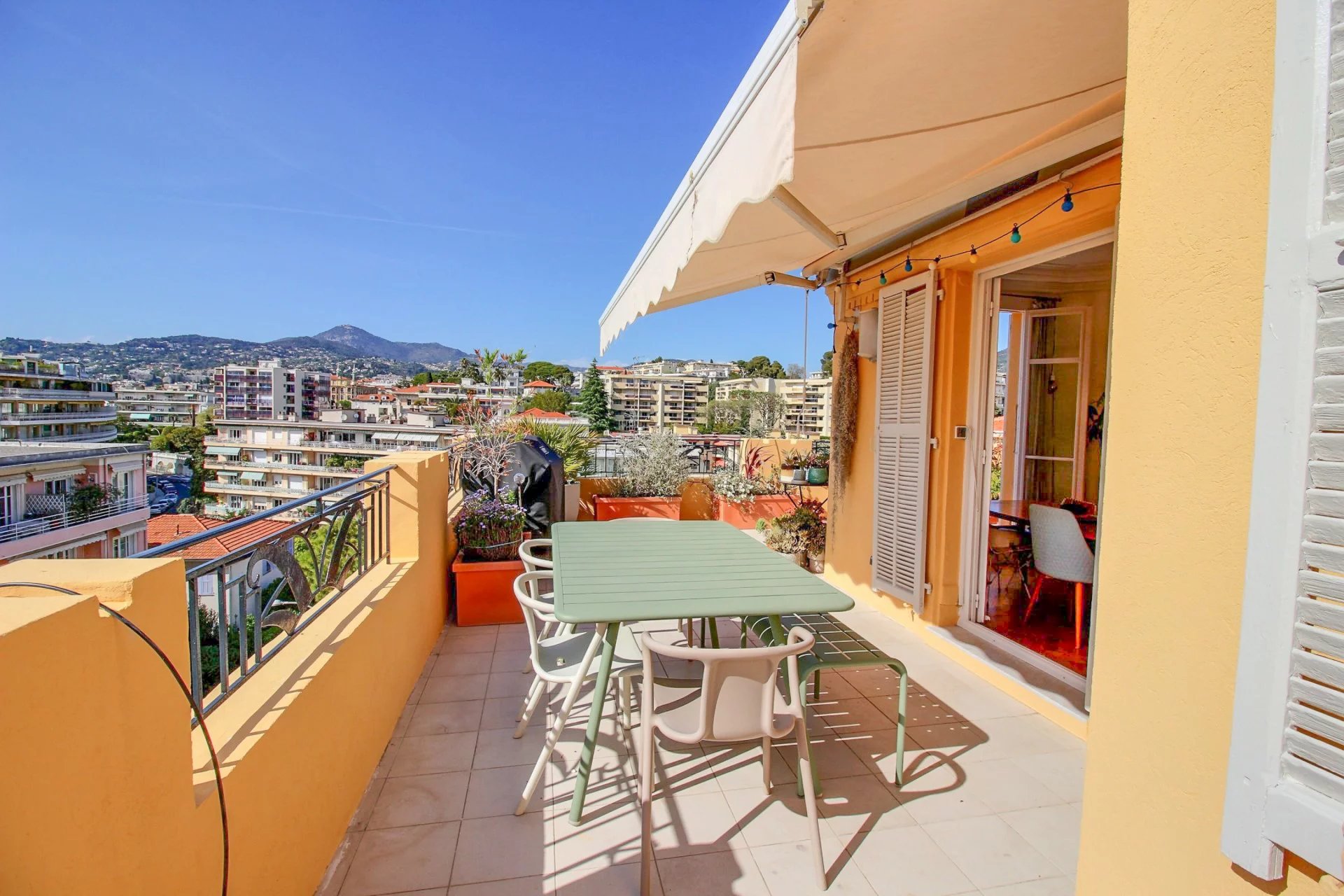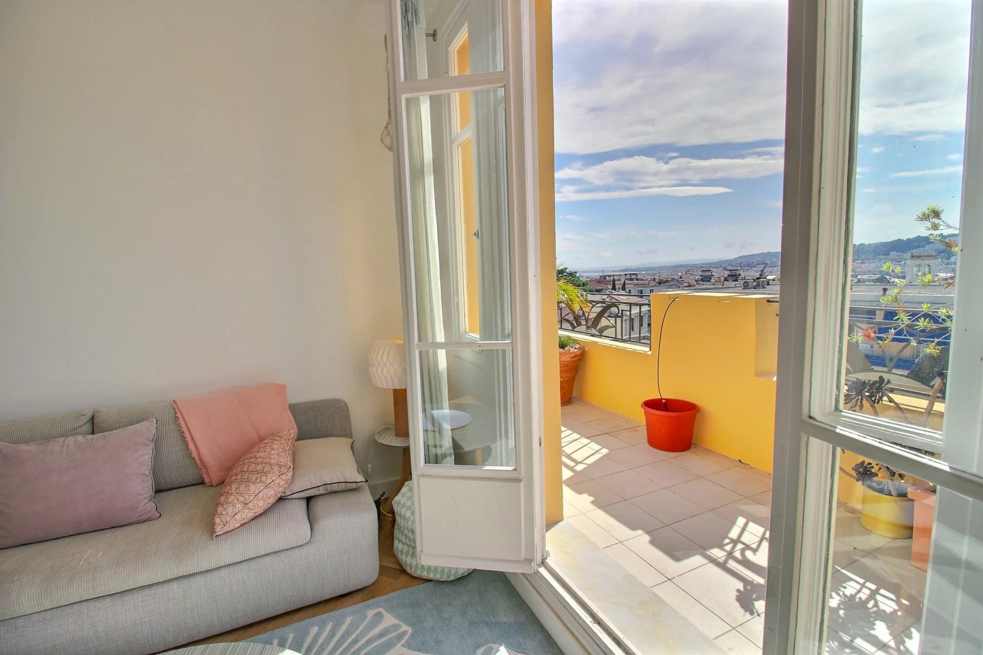 On the 4th and last floor of a beautiful Art Deco building, this 84 m2 roof terrace has a 121 m2 terrace with a sea view and a view over the entire city of Nice.