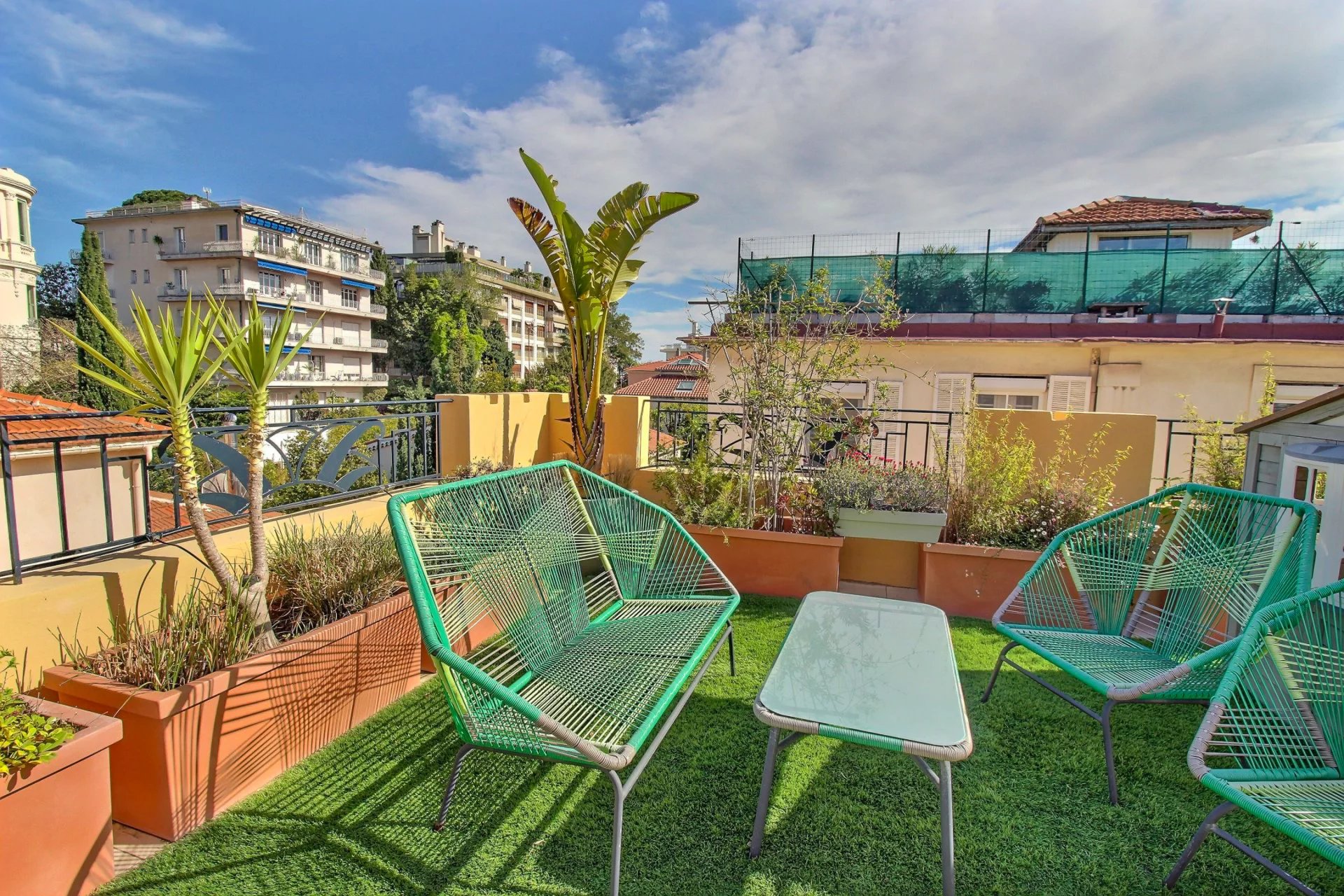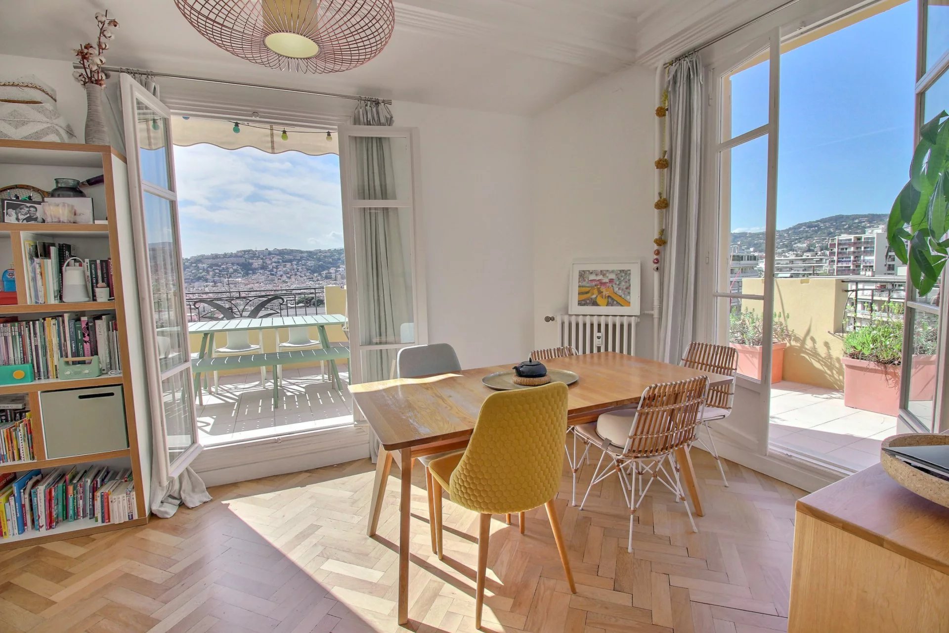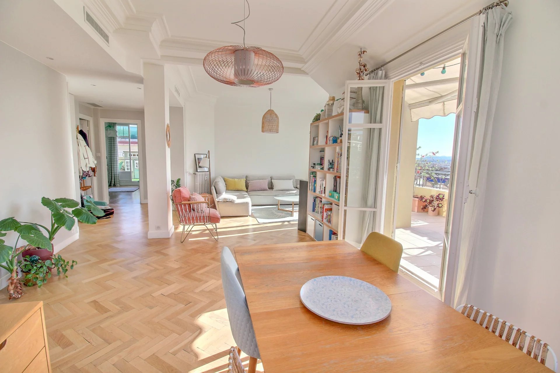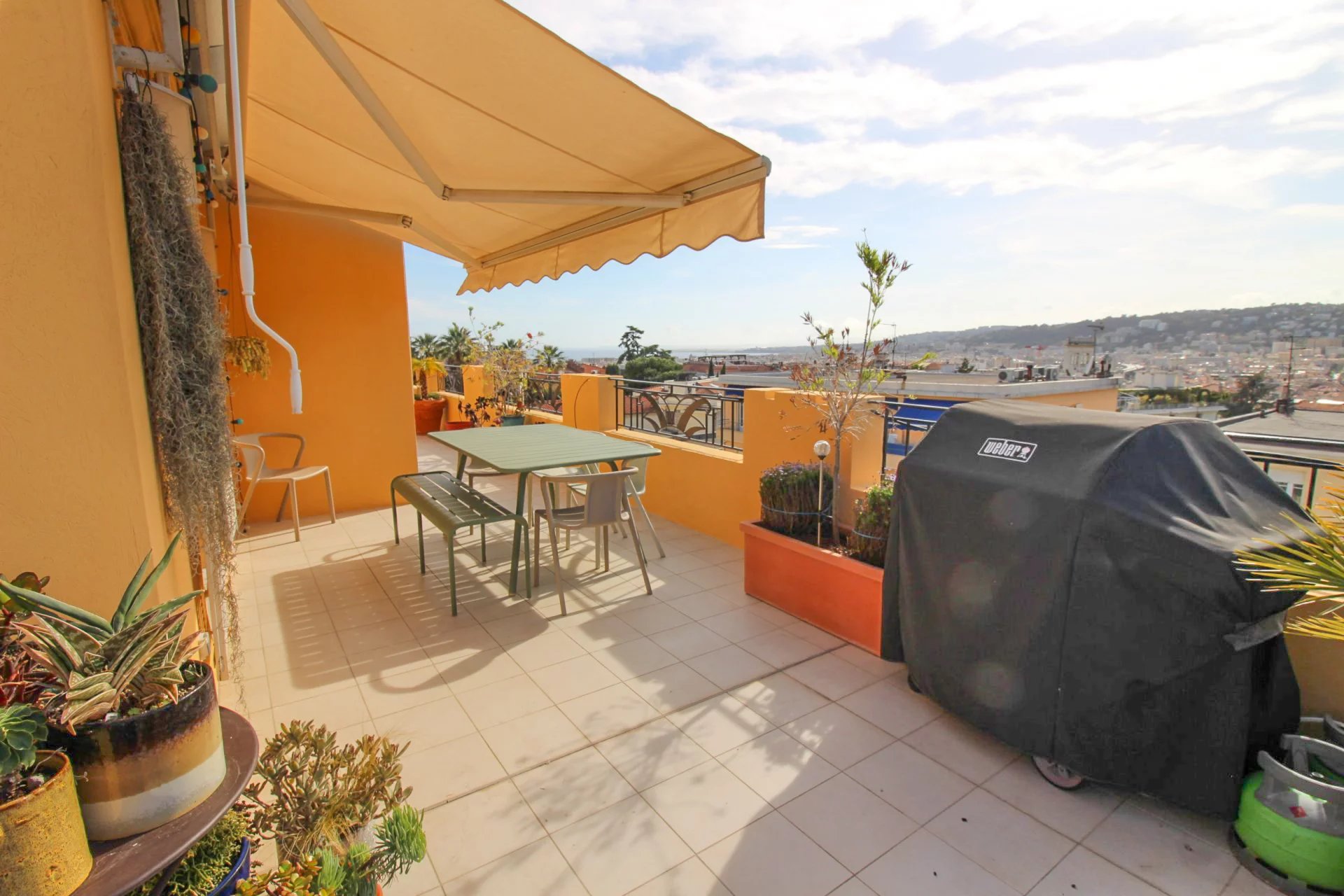 On the 4th and last floor of a beautiful Art Deco building, this 84 m2 roof terrace has a 121 m2 terrace with a sea view and a view over the entire city of Nice.