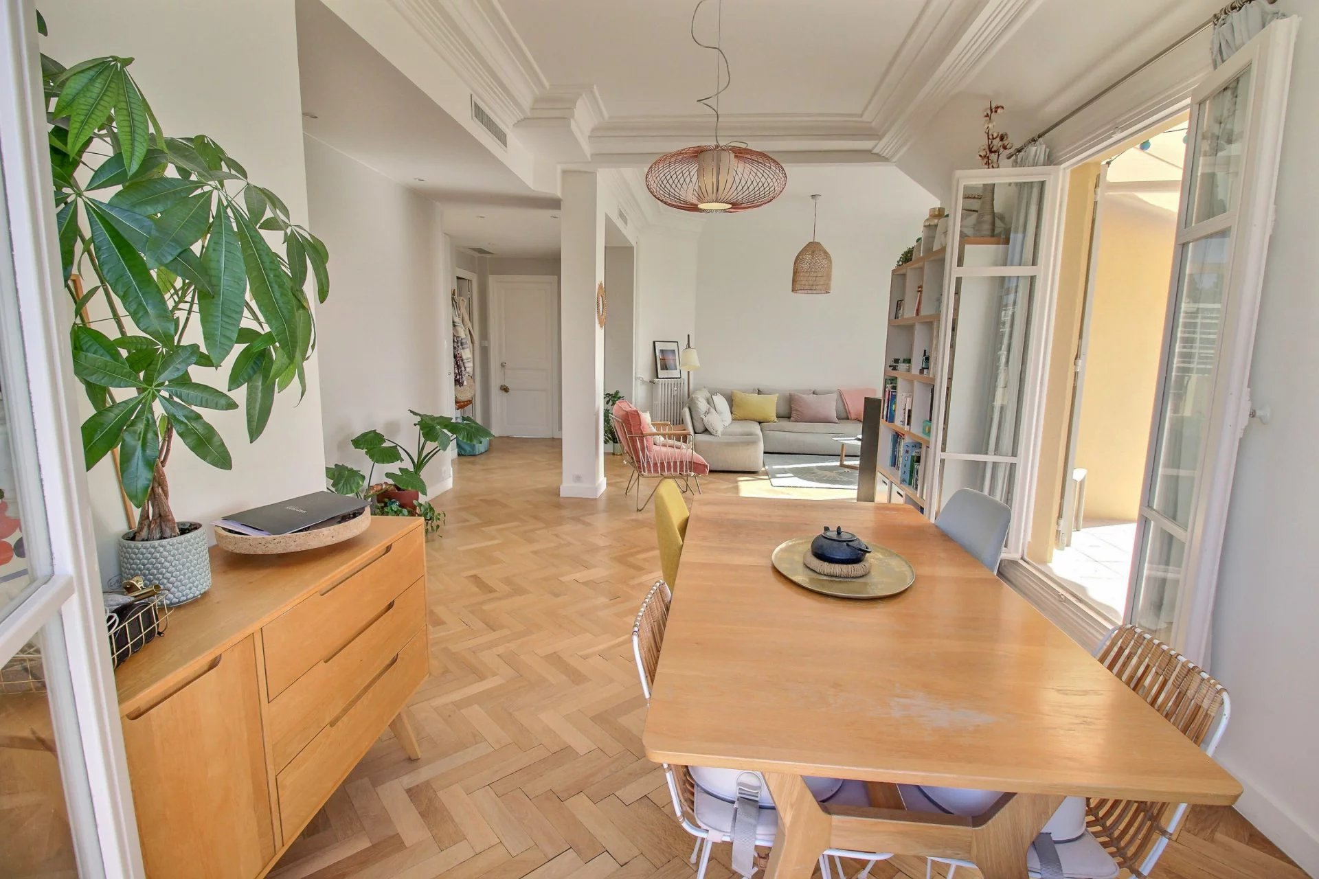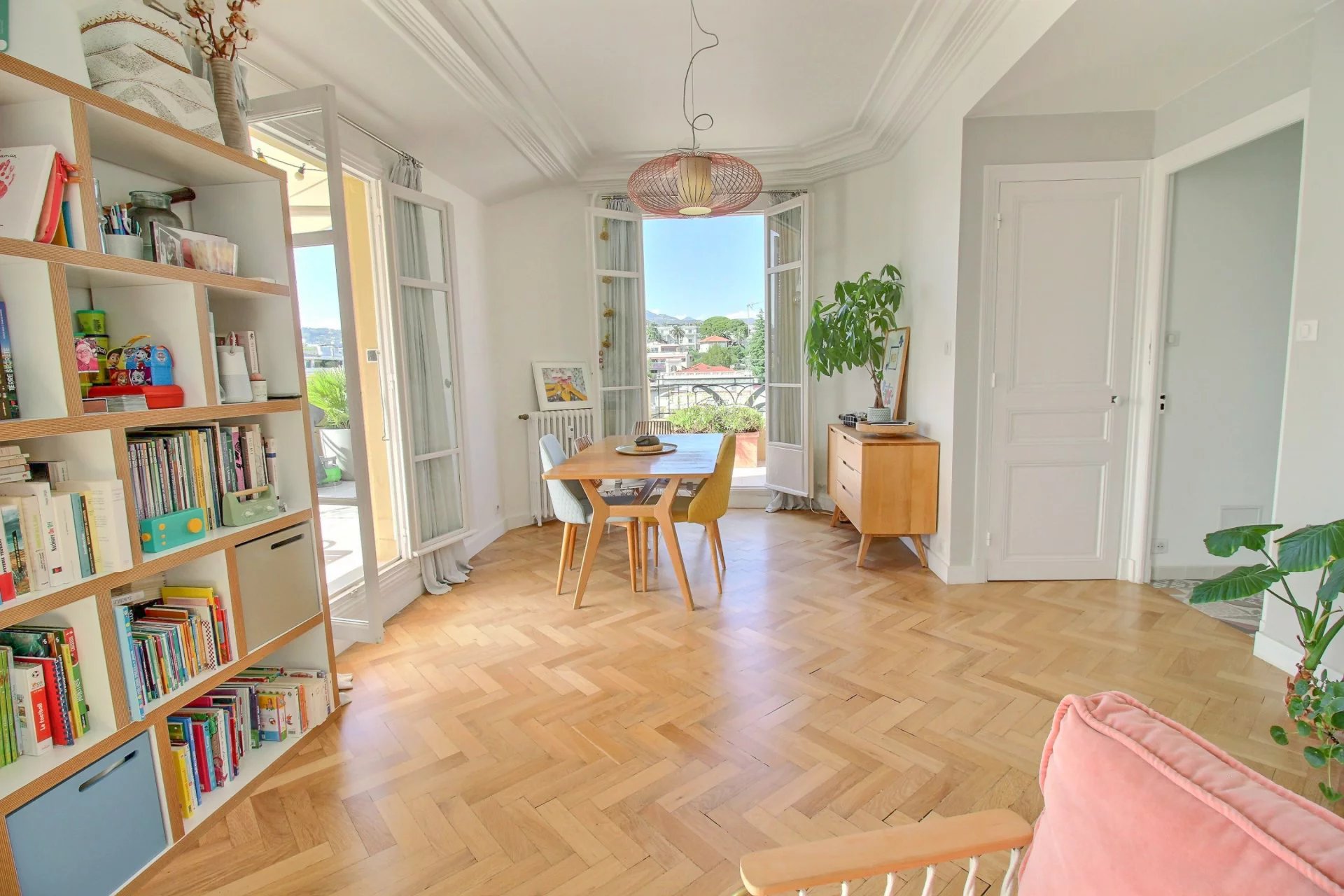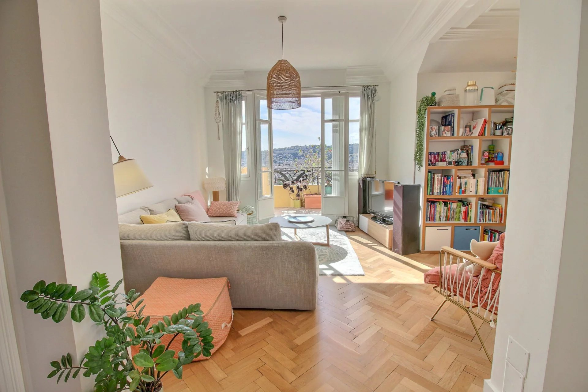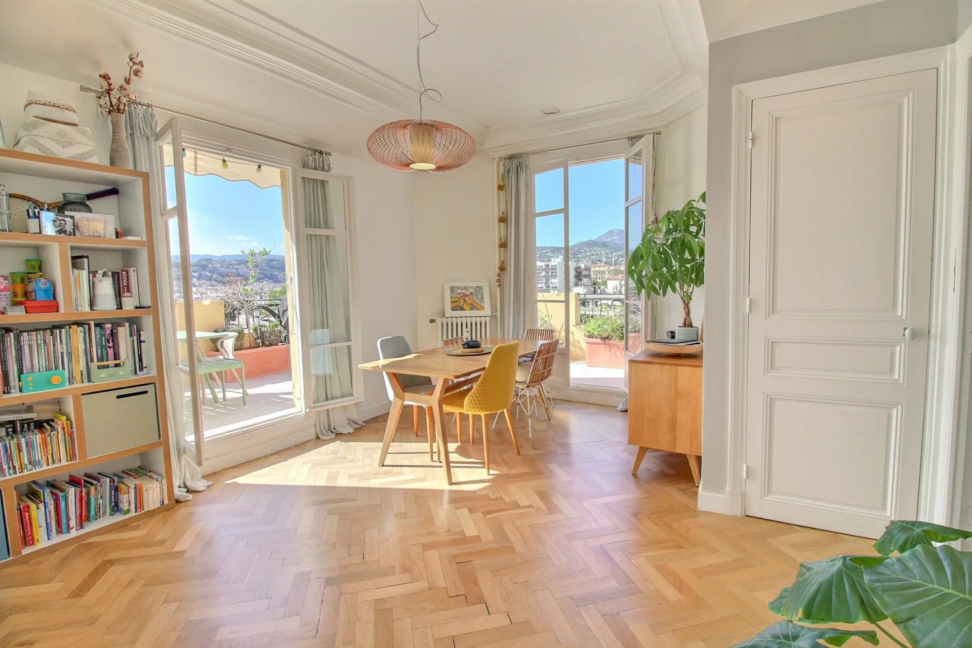 On the 4th and last floor of a beautiful Art Deco building, this 84 m2 roof terrace has a 121 m2 terrace with a sea view and a view over the entire city of Nice.