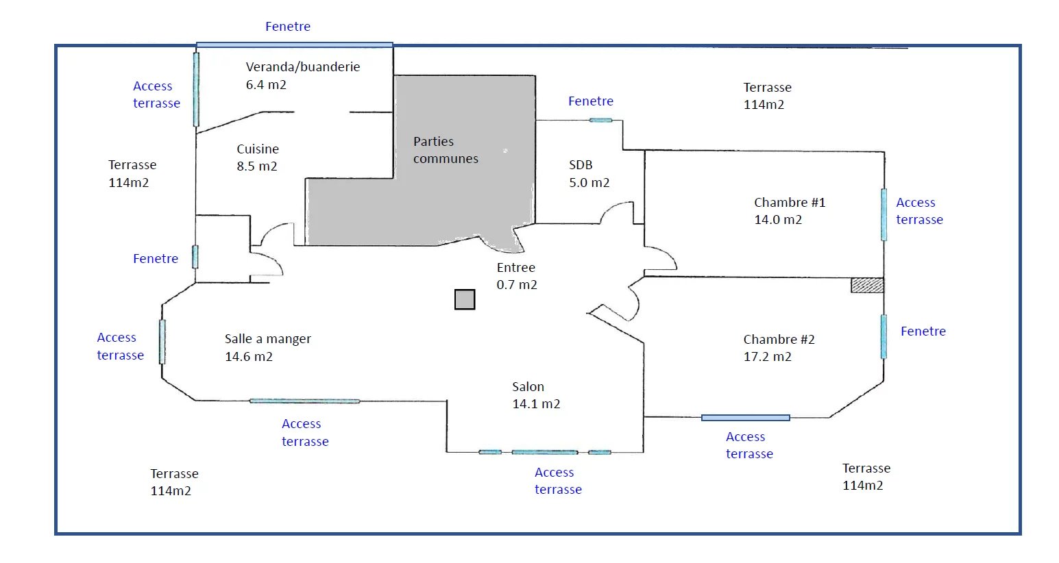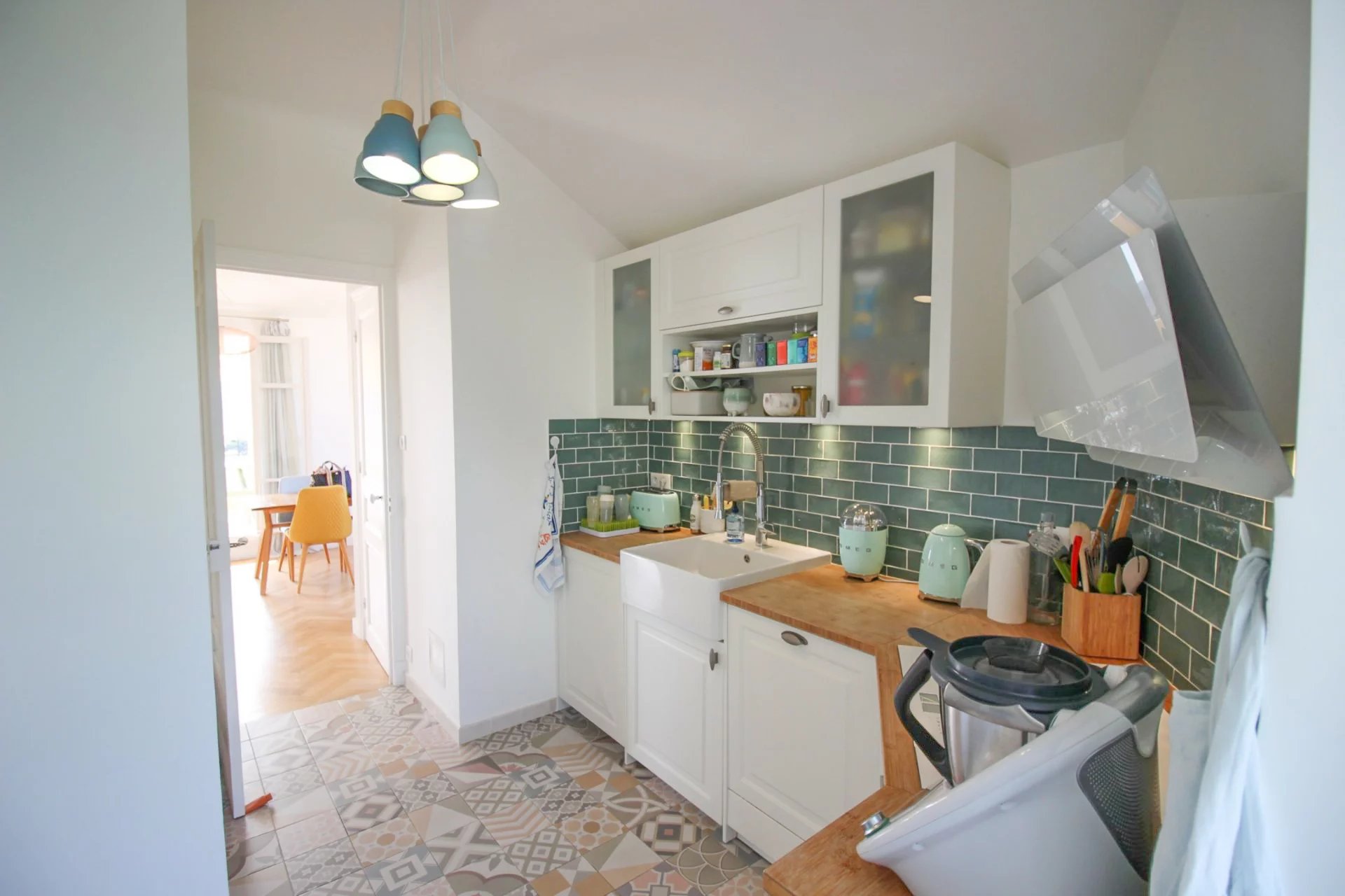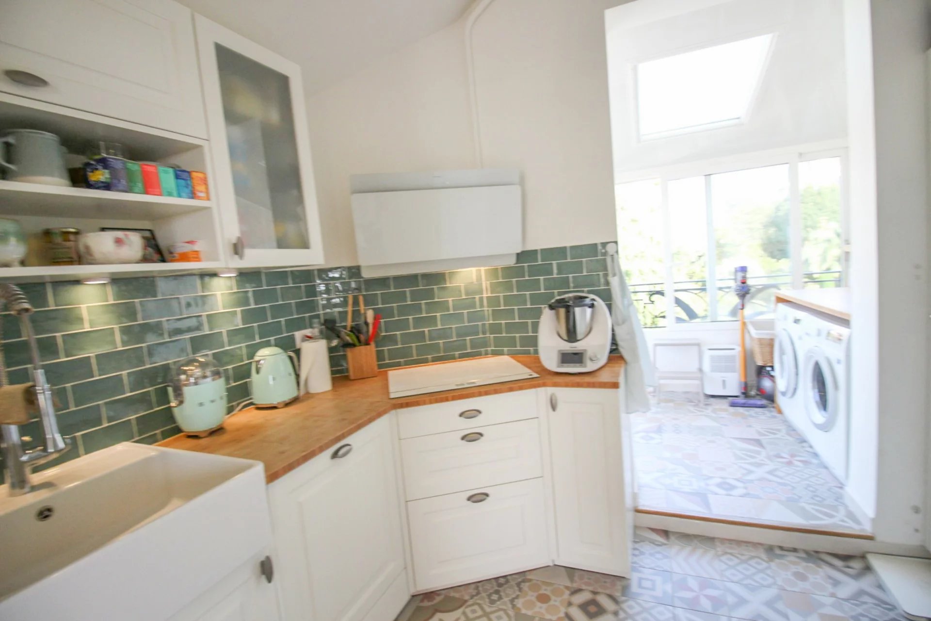 Accommodation opens onto a magnificent double living room with 3 French windows giving access to the south west facing terrace. The kitchen is independent and benefits from an enclosed veranda hosting the laundry room and the storeroom.