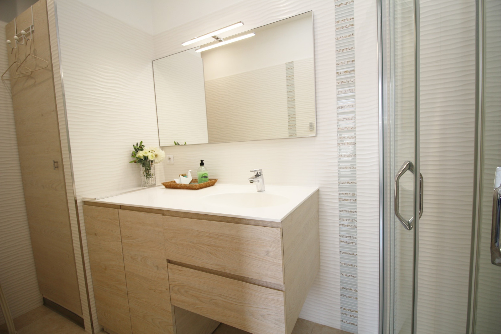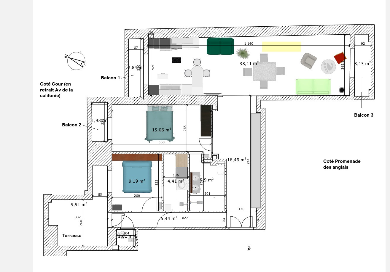 The 38 m2 living area, which includes a fully equipped kitchen, opens onto two balconies, allowing you to enjoy breakfast, lunch, or dinner in the sun at different times of day depending on your preferred exposure.