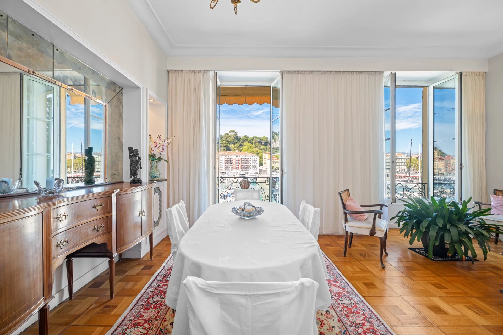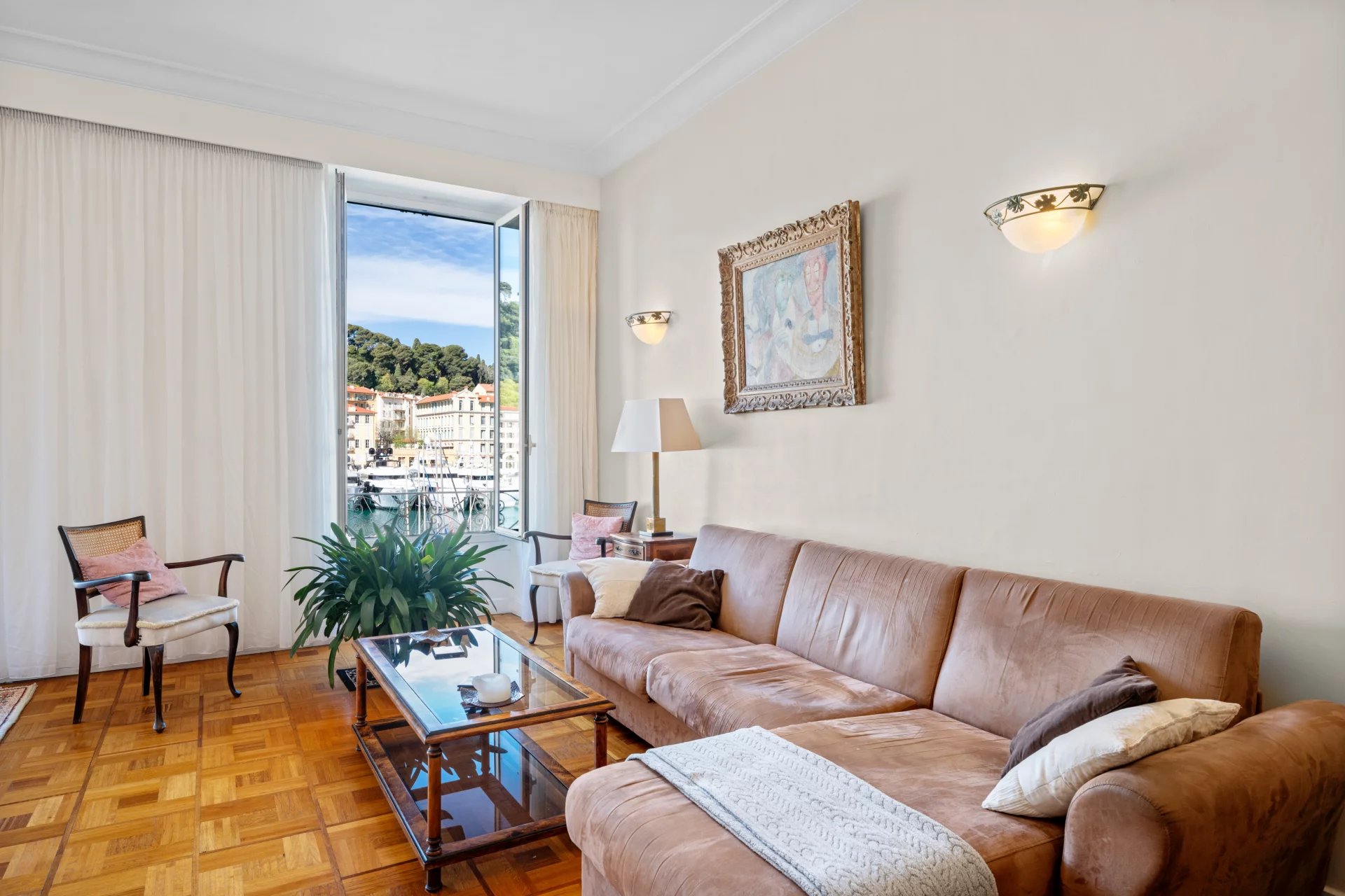Ideally located in the highly sought-after Port Lympia district, within a characterful Nicois building with elevator, this upper-floor apartment enjoys remarkable open views over the port, its iconic pointus, and the Castle Hill.