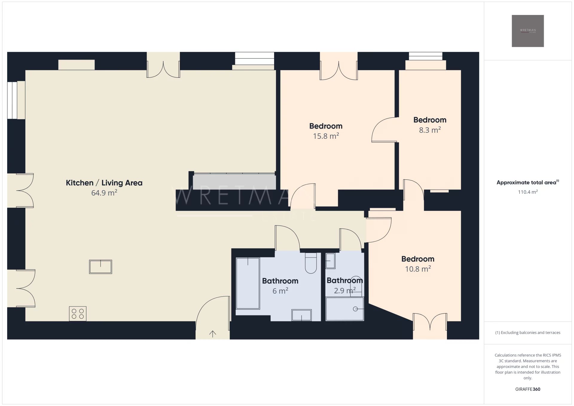 The apartment features three cosy bedrooms, two of which have their own private balconies. The living room offers the possibility to create a fourth bedroom. You will also find a modern shower room and a bathroom with heated towel rails.