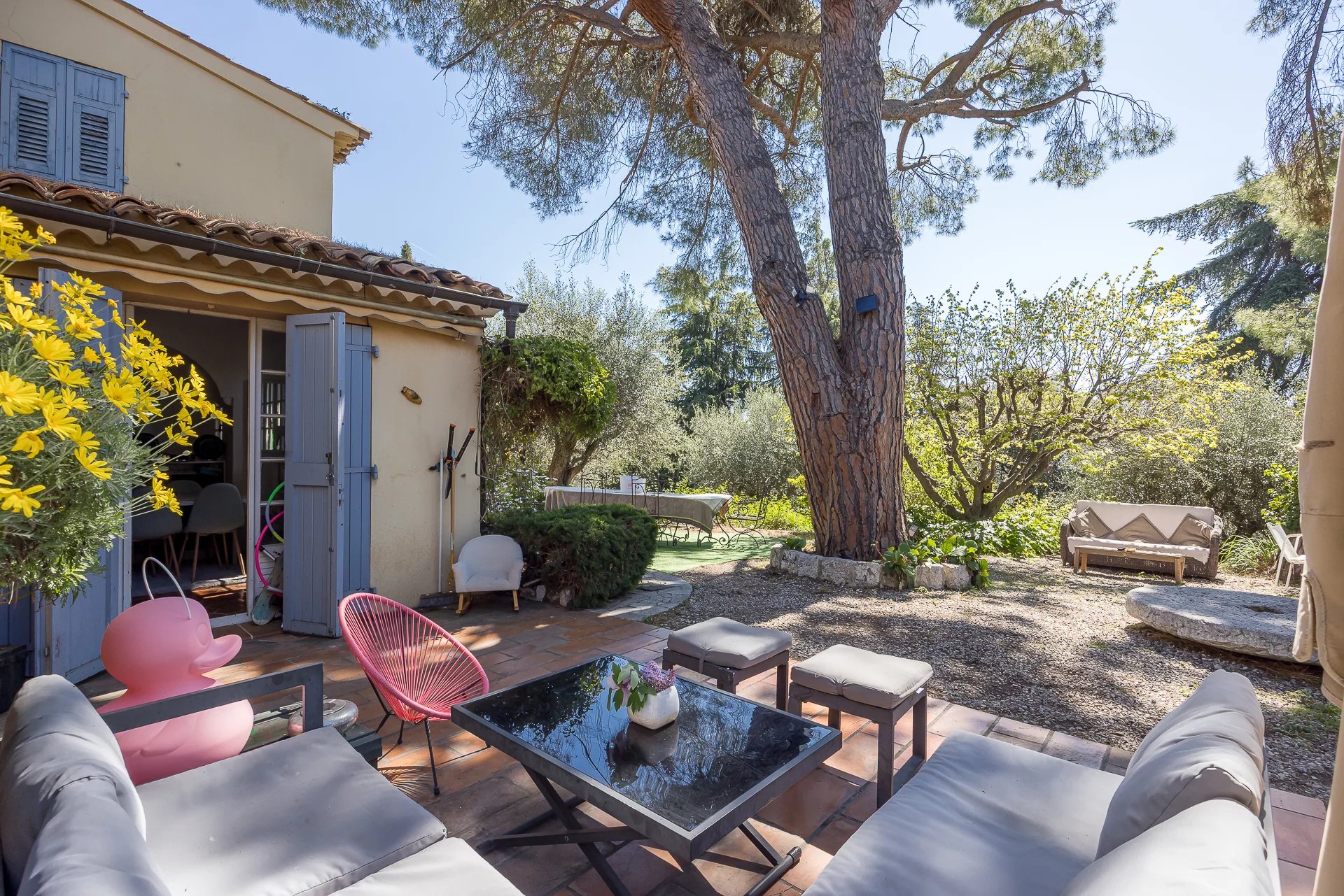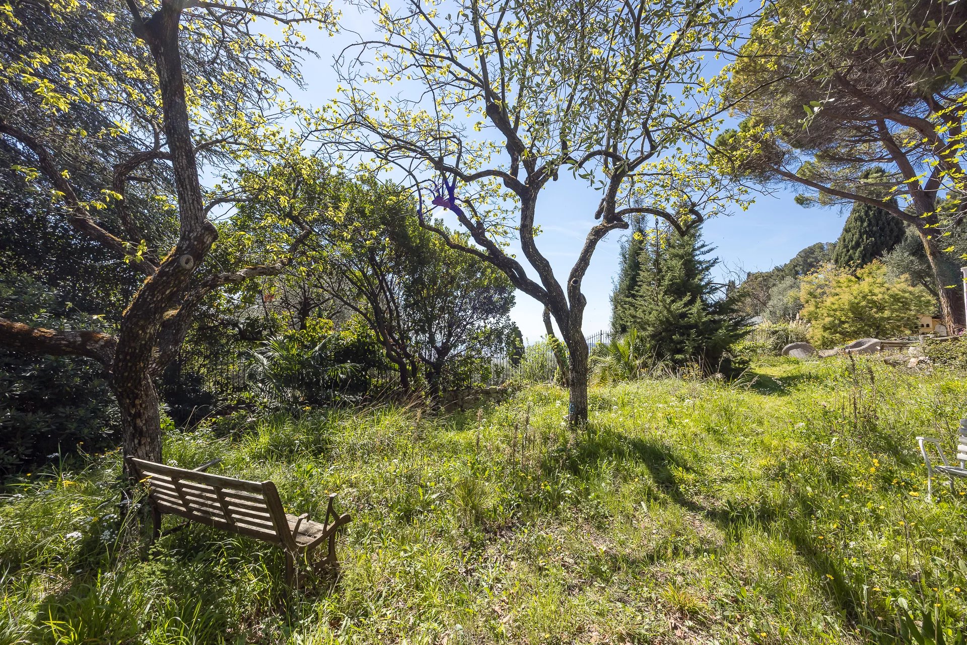 Part of the plot enjoys a panoramic sea view over the Bay of Nice, whilst the main house benefits more from a green and secluded setting. The land also offers building potential for the construction of two additional villas of approximately 140m2 each.
