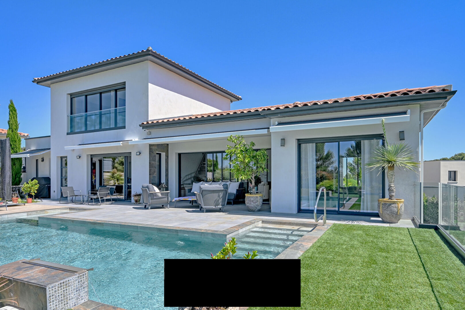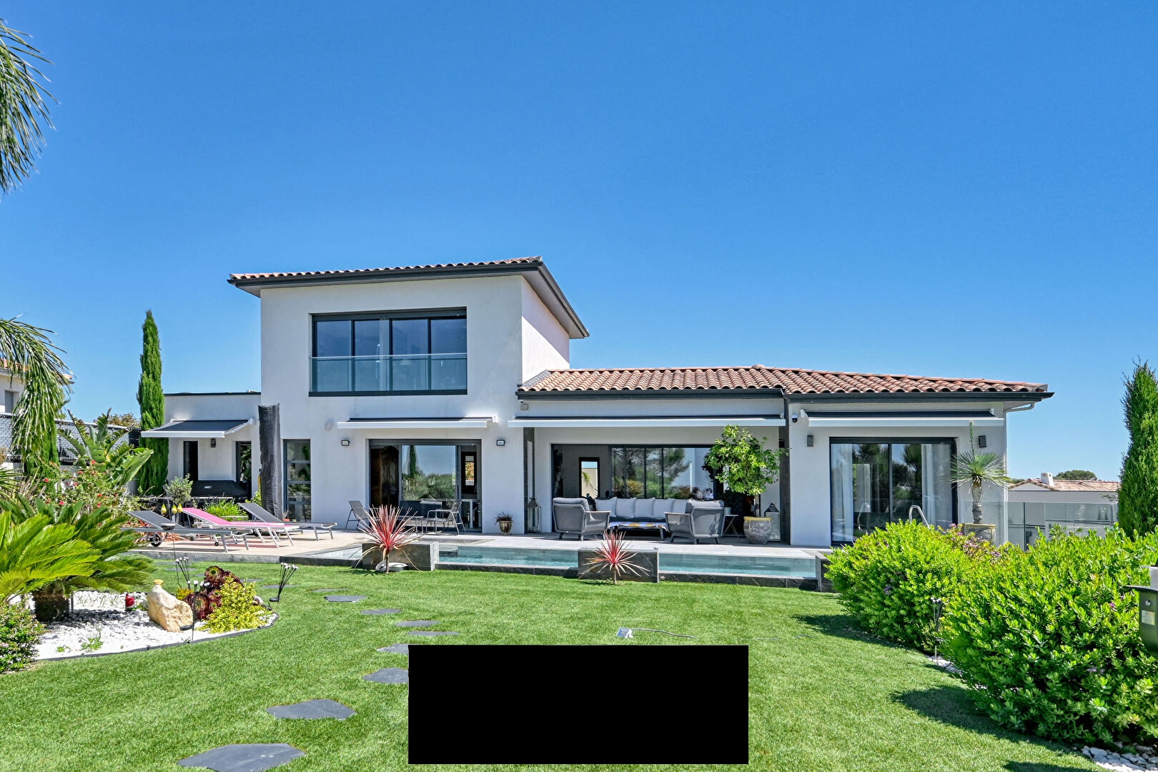 Built in 2020 to RT 2012 standards, this villa benefits from a ducted reversible air conditioning system, a garage, two outdoor parking spaces, and an electric vehicle charging station.