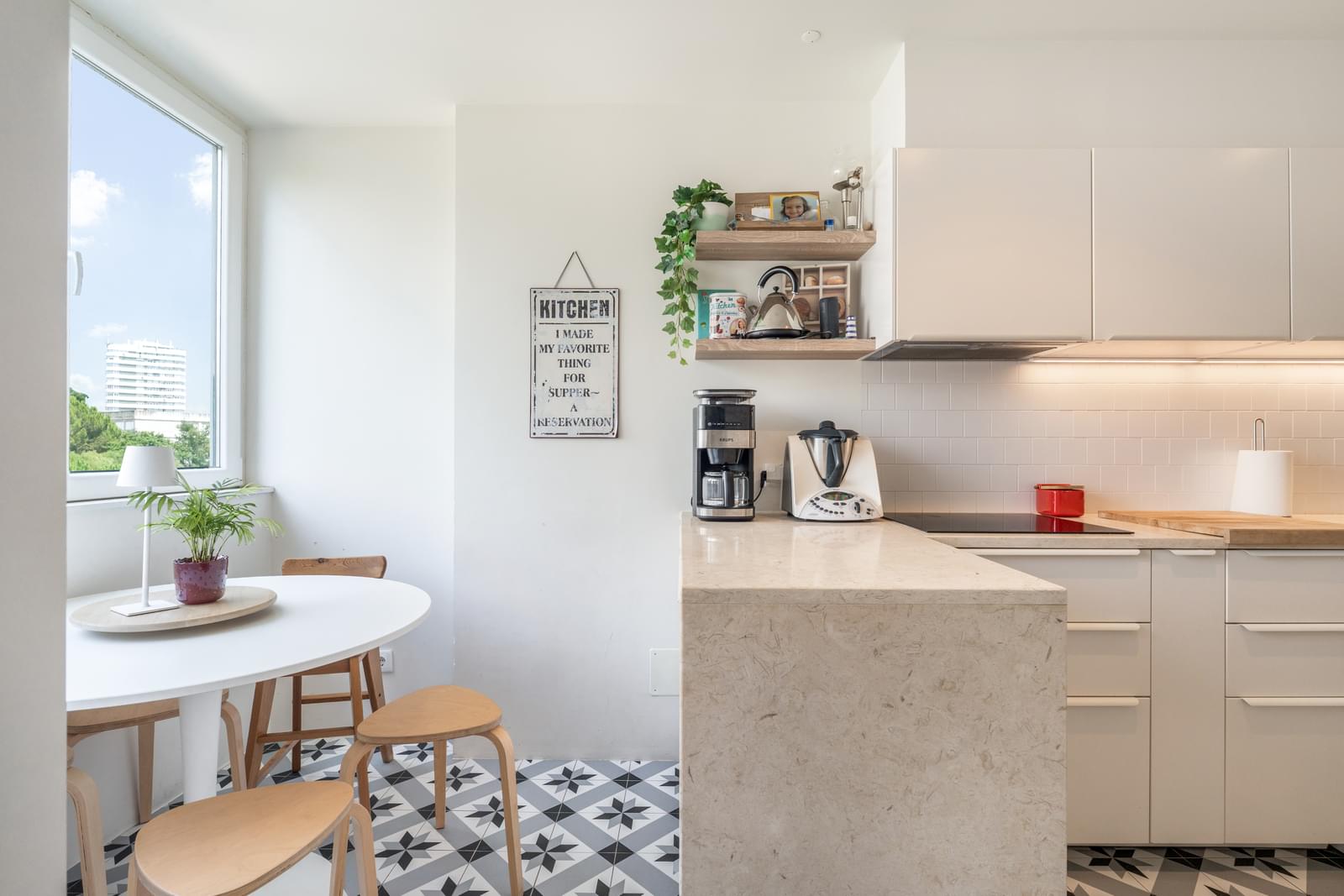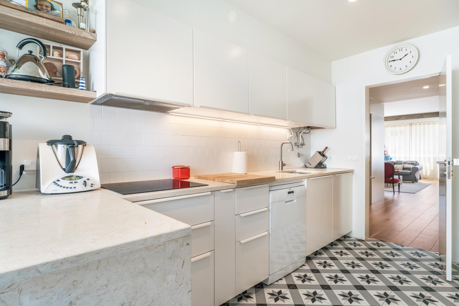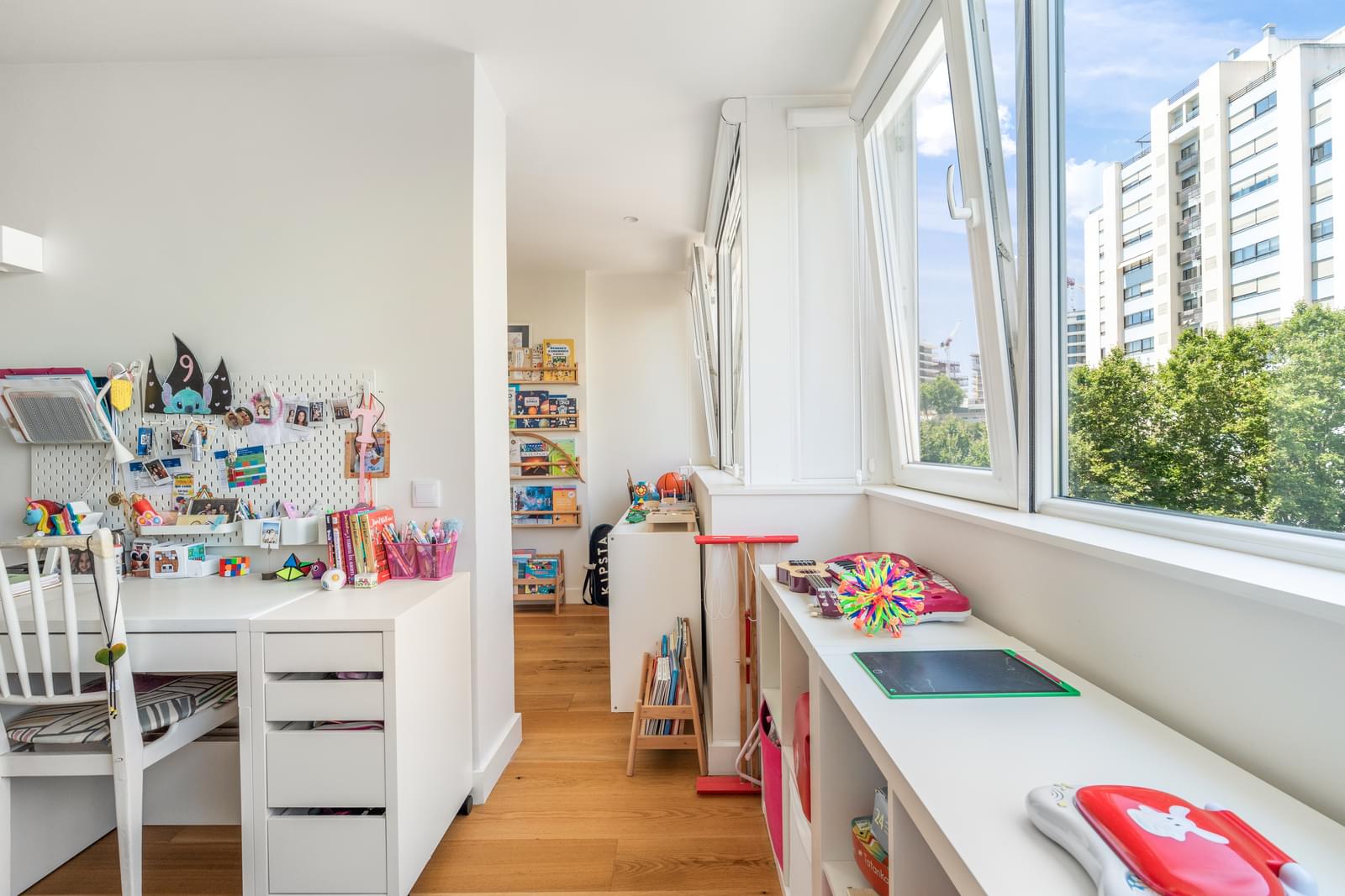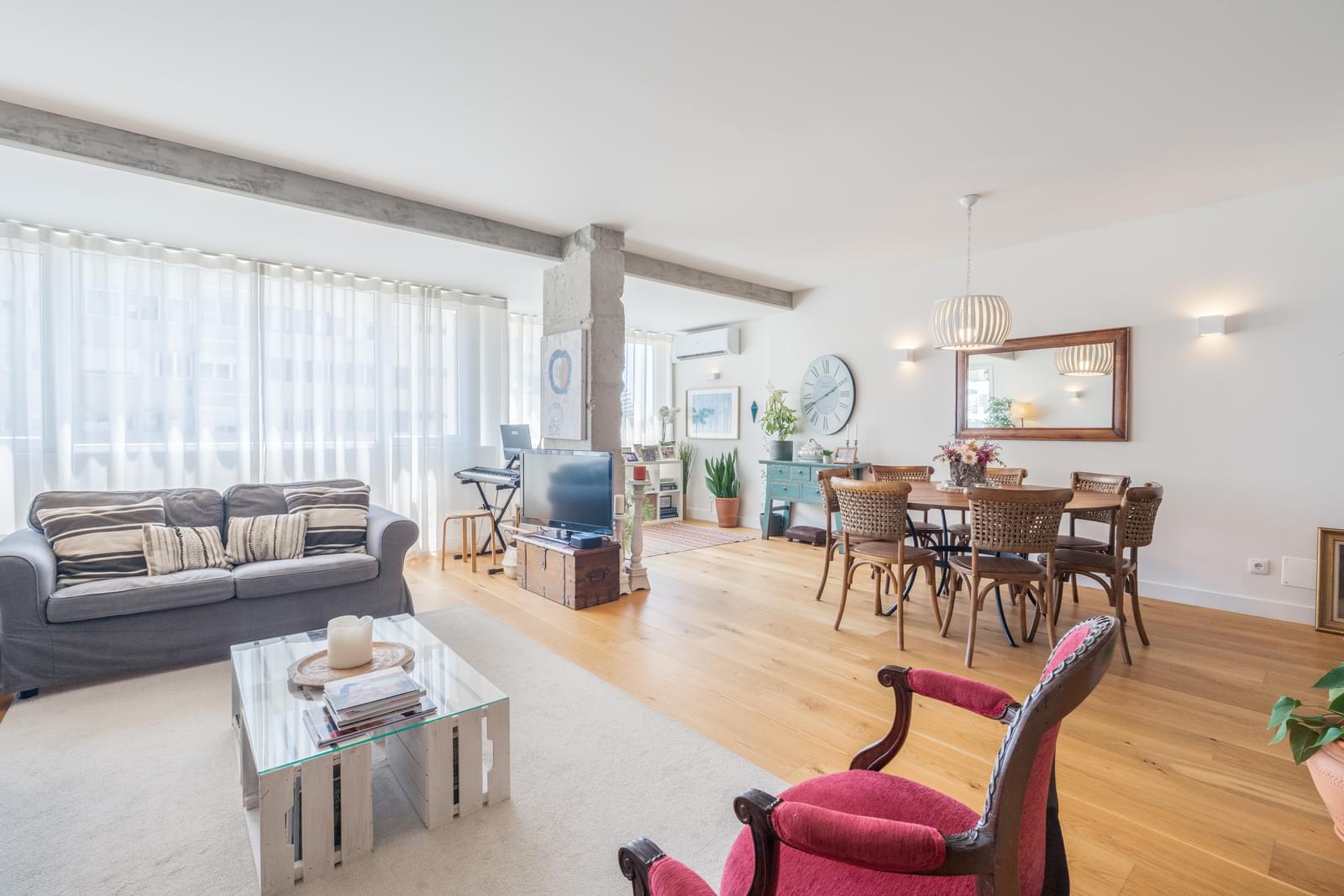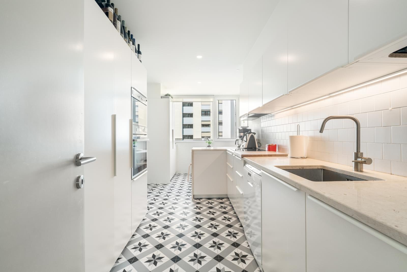 Positioned on a high floor of a 1990s building on Rua Brito Pais, it was fully renovated in 2015 by the office of architect Vasco Lima Mayer, with a contemporary approach that combines high-quality materials, abundant natural light, and well-considered spatial flow.