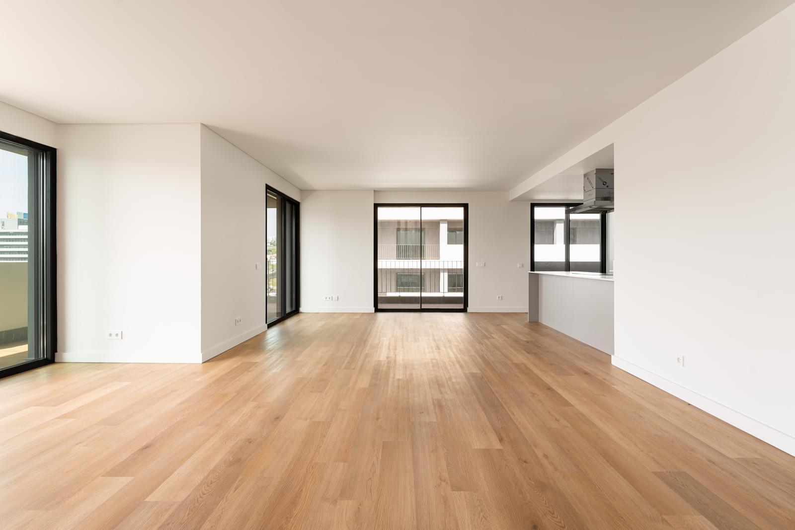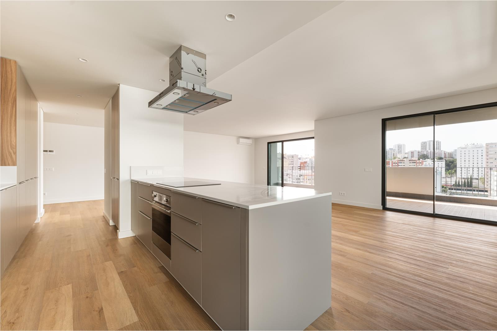 4-Bedroom apartment, with 185 m² plus 86 m² of balcony, facing East, West and North, with views to Monsanto woods and the Miraflores Urban Park, three parking spaces and a storage room, in the Terraces MIREAR condominium, in Miraflores.