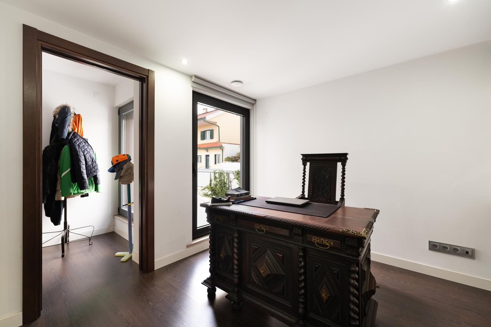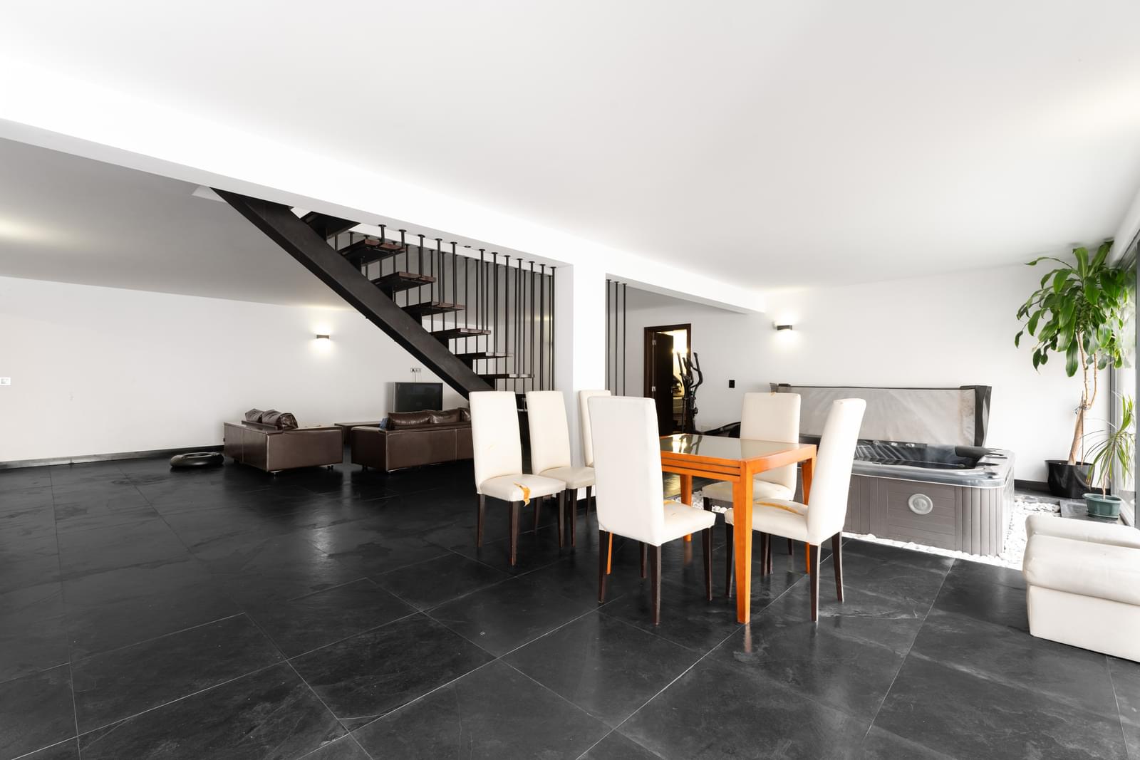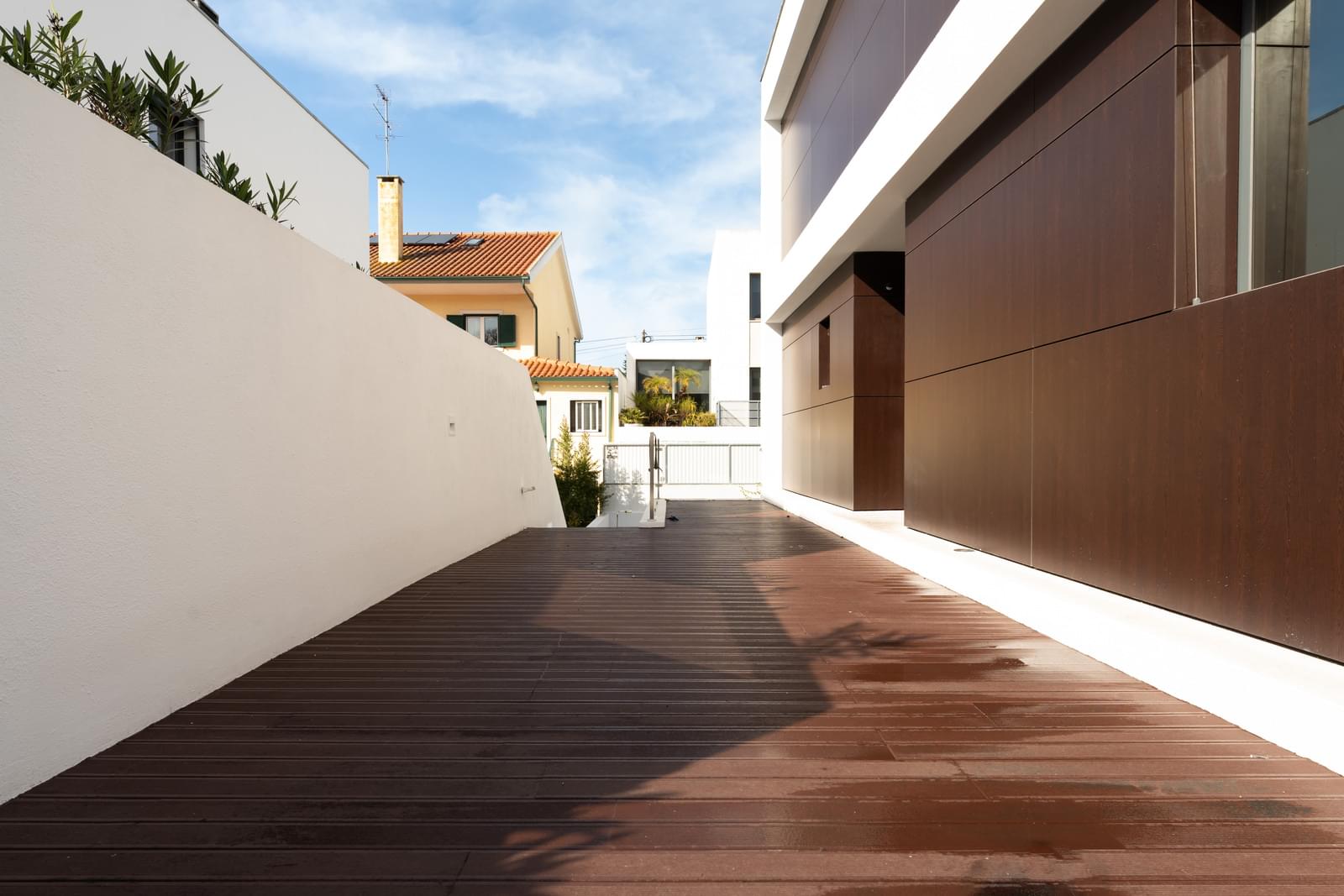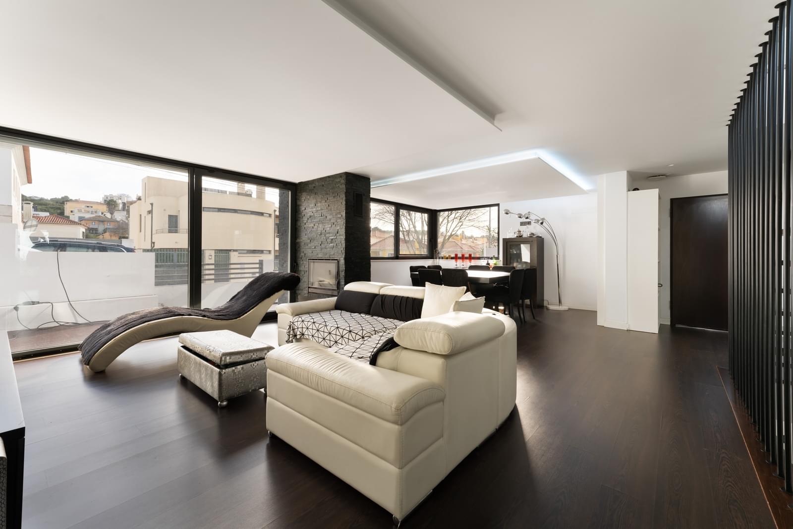 T4 contemporary-style detached villa with a saltwater pool, set on a 299 m² plot with a total construction area of 297 m², located in Murganhal, a residential neighborhood in Caxias, just 15 minutes from Lisbon and with excellent access to the A5 and Avenida Marginal.