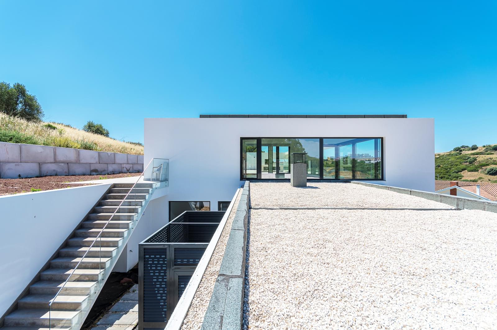Detached 4+1 bedroom villa with contemporary architecture, with a saltwater pool, set on a plot of 5,120 m2 and 424 m2 of total construction area, located in Carnaxide, Oeiras.