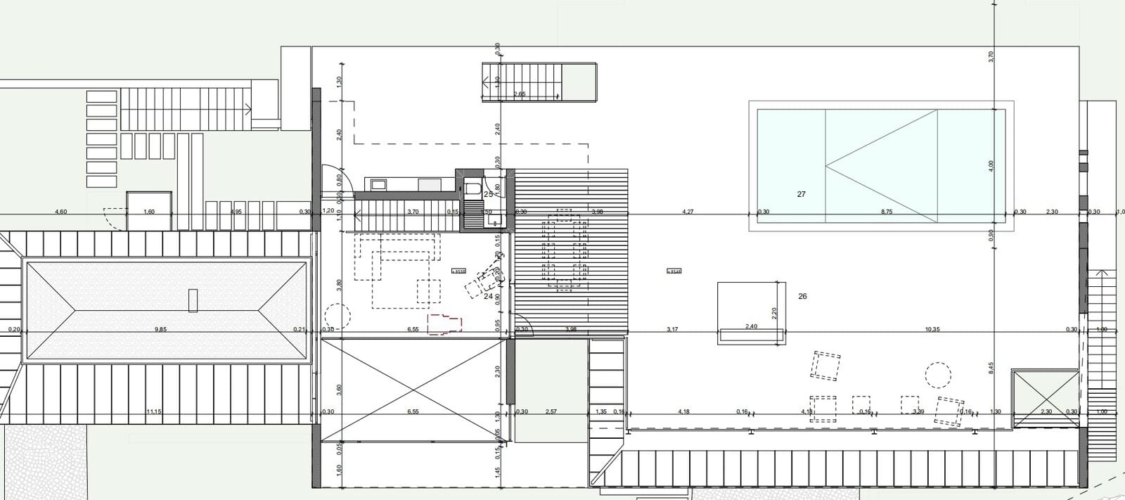 This floor has direct access to a spacious 240 m² terrace and a private pool with panoramic views. The pool (8.75 m x 4 m) is strategically positioned for maximum sunlight while ensuring privacy. In this area, there is also a barbecue zone and a full bathroom to support the pool area.