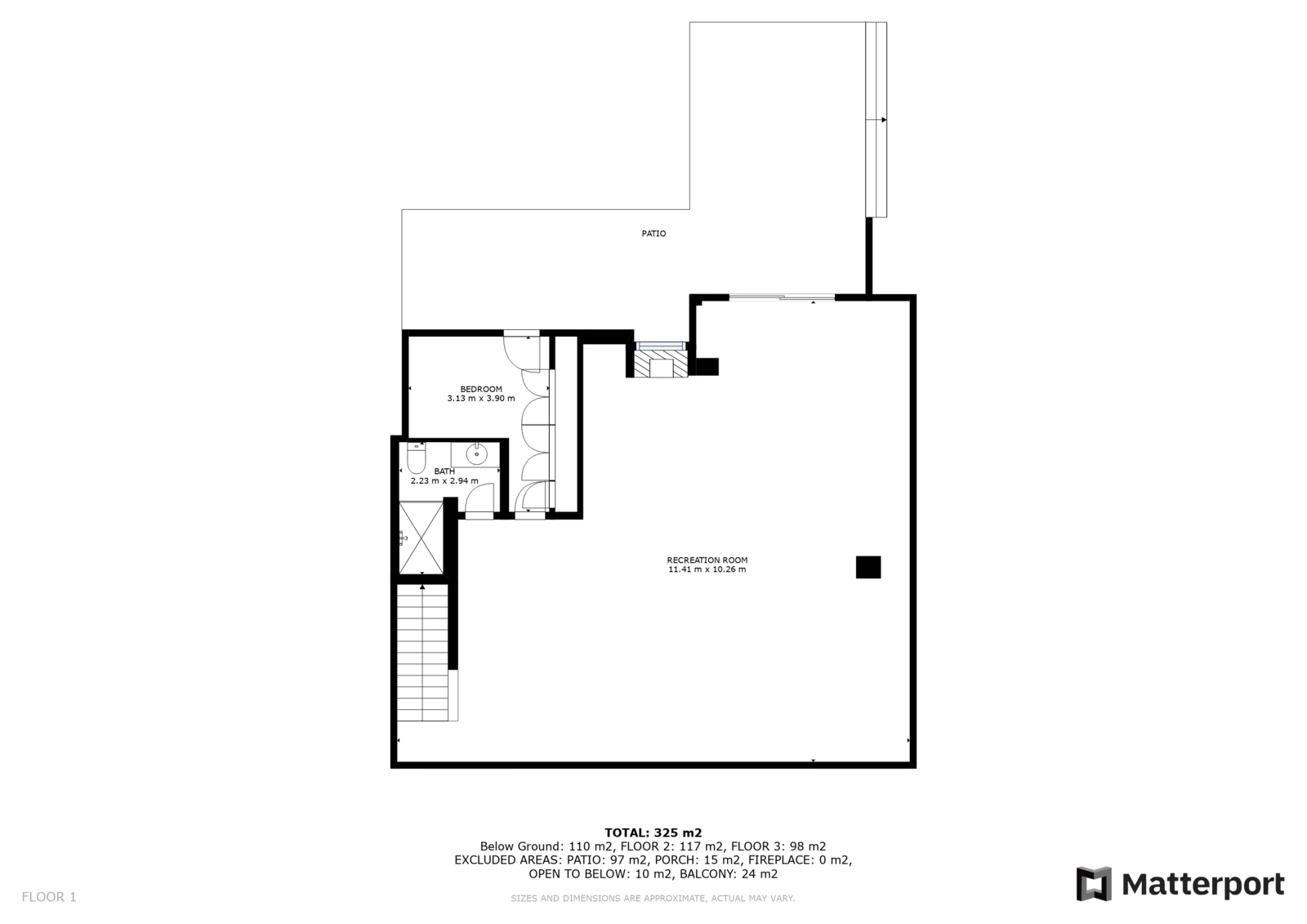 Floor -1: Multipurpose room, one bedroom, 1 bathroom and access to the garden area