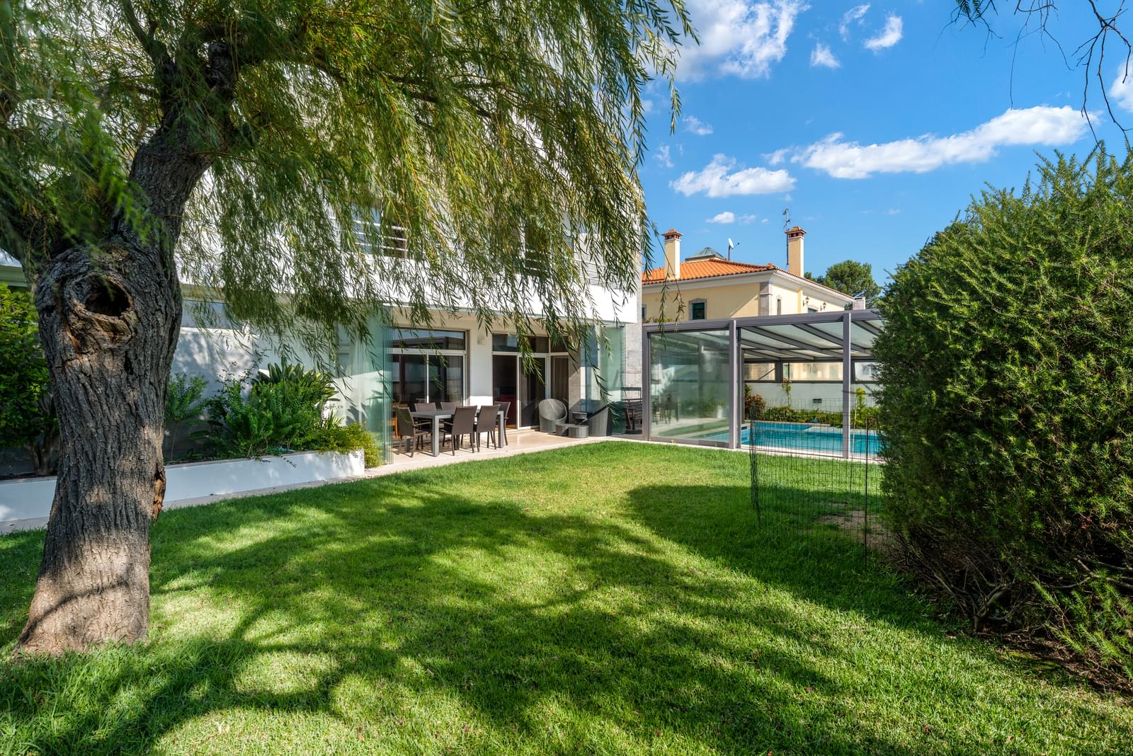 • Spacious garden with a removable covered swimming pool, allowing year-round use;