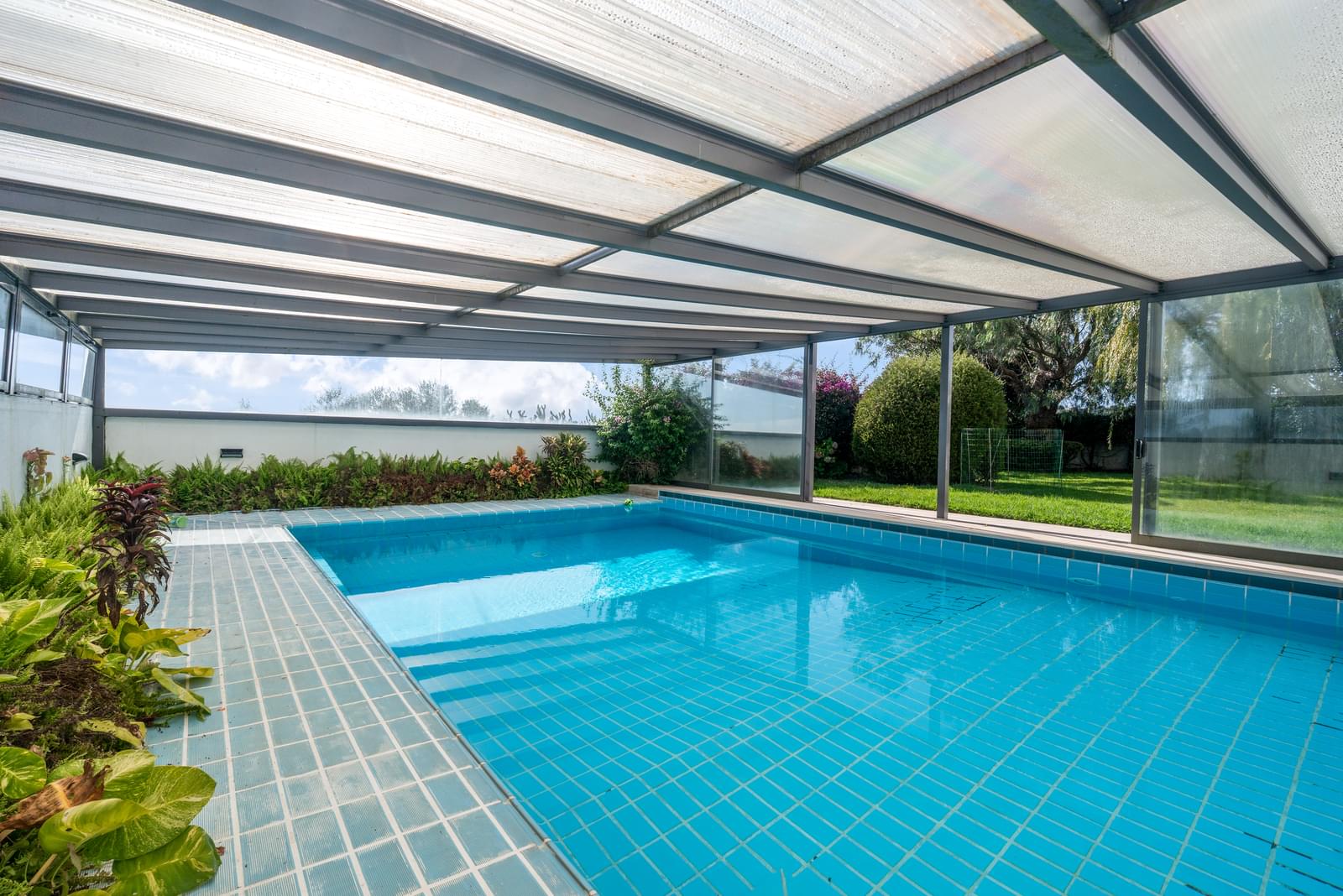 The swimming pool, currently with a removable cover, can be enjoyed throughout the year.