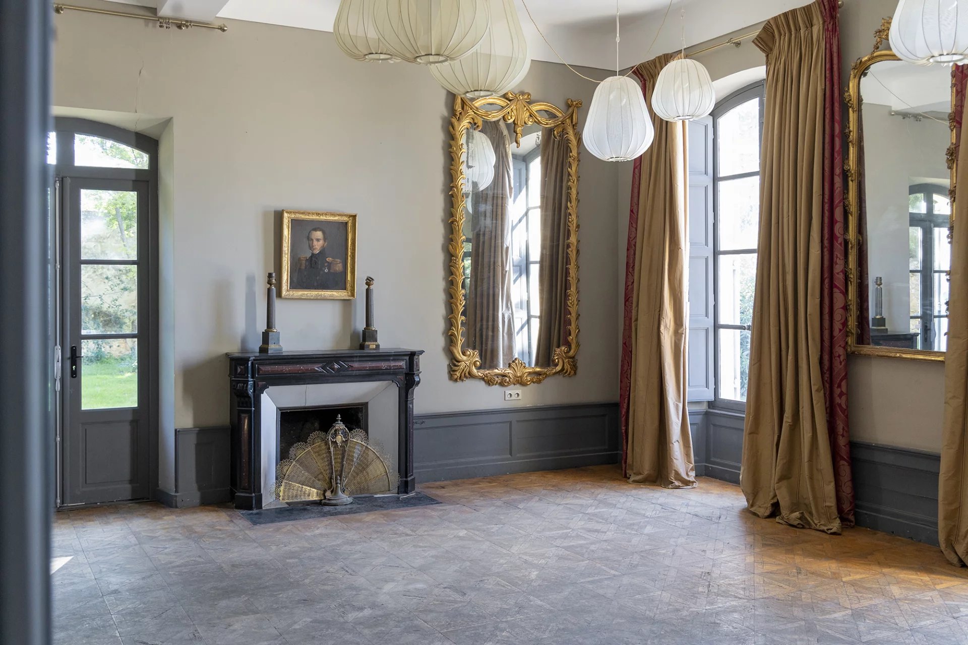 Built in 1730 and carefully renovated in 2014, the main country house offers over 700 m2 of living space on three levels, respecting 18th-century architectural codes: symmetrical facades, hipped roof, remarkable ceiling heights, marble fireplaces, antique terracotta tiles, refined woodwork, and a majestic glass entrance.