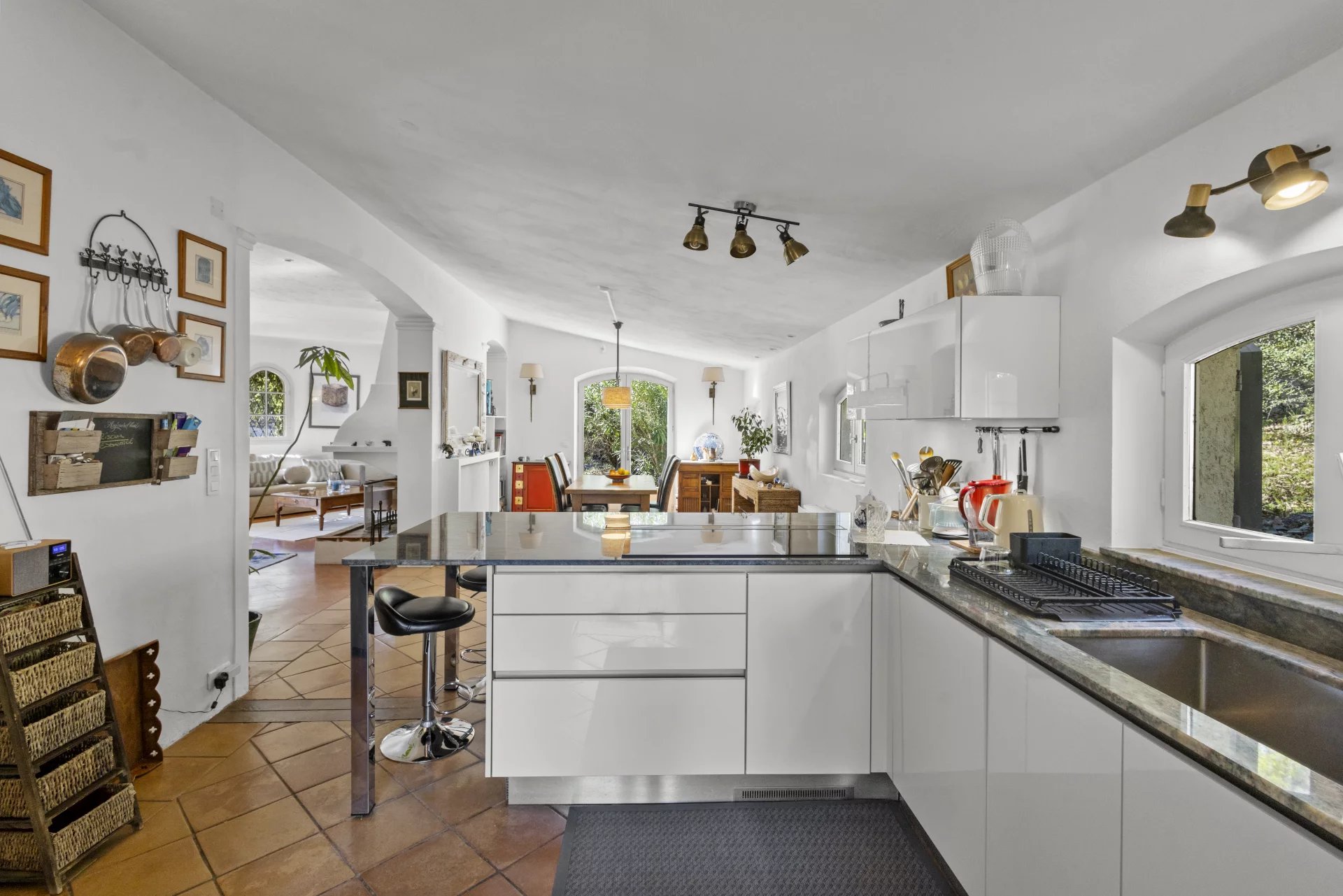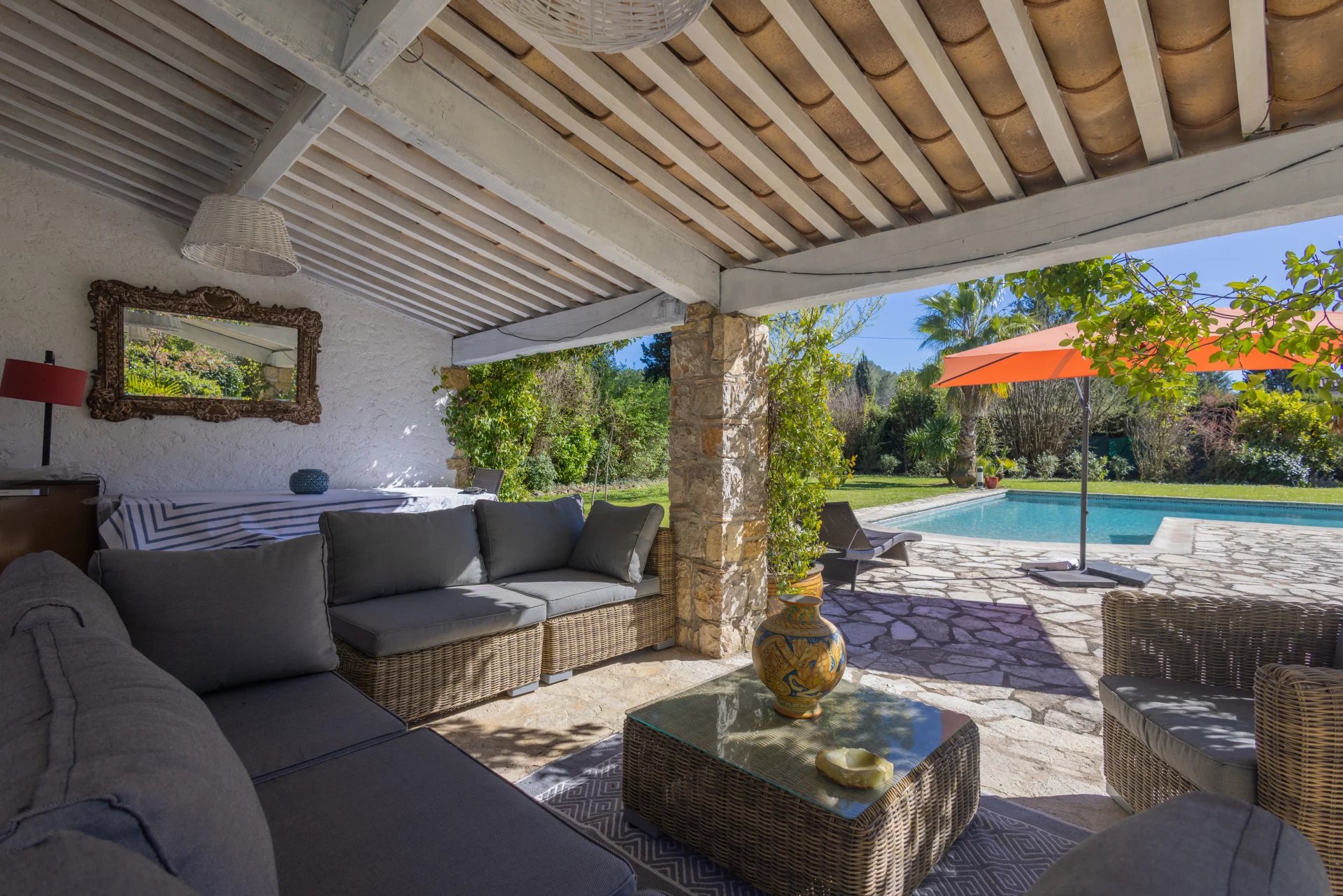 Outside, a beautiful swimming pool, a garage, and a double carport complete this enchanting picture, providing a true haven of peace where one can live and recharge in harmony with nature.