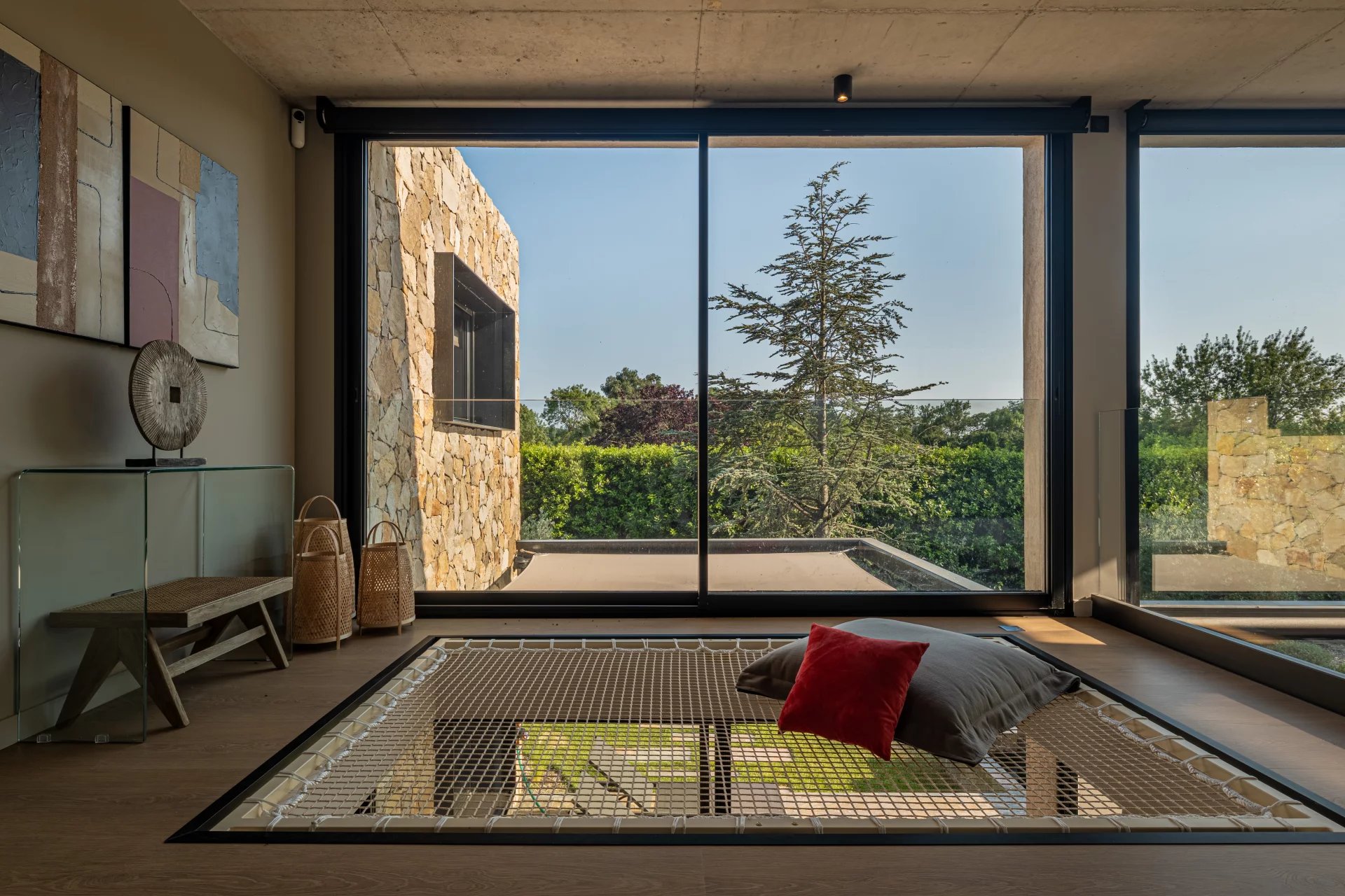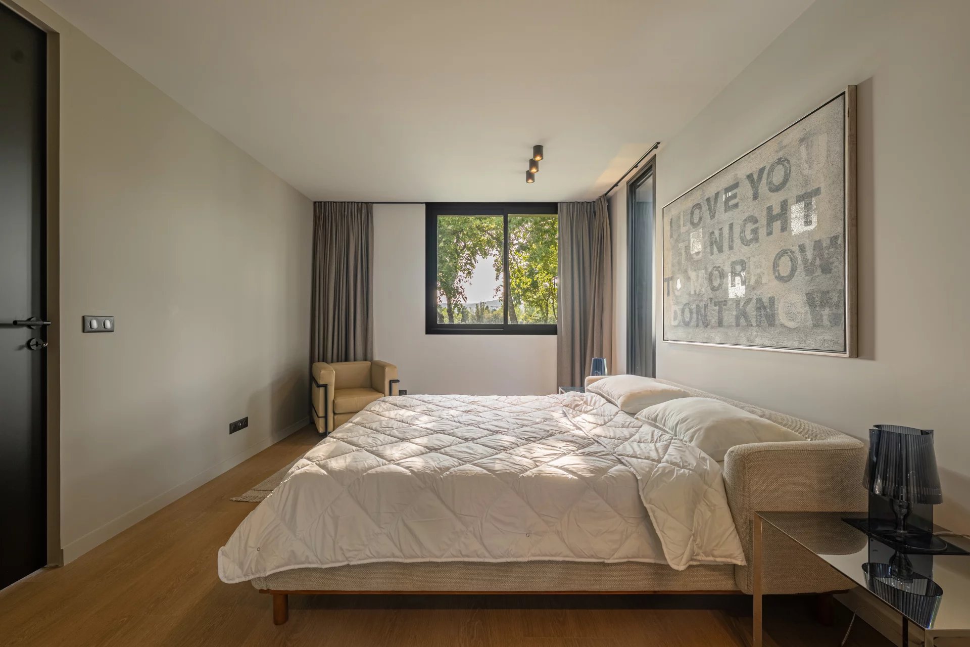 The 340 m2 property features a vast, light-filled living room, dining room and open-plan kitchen with full-height panoramic windows opening onto a terrace and exotic pool area, as well as 5 luxurious en suite bedrooms, the master bedroom on the ground floor and 4 bedrooms on the first floor.
