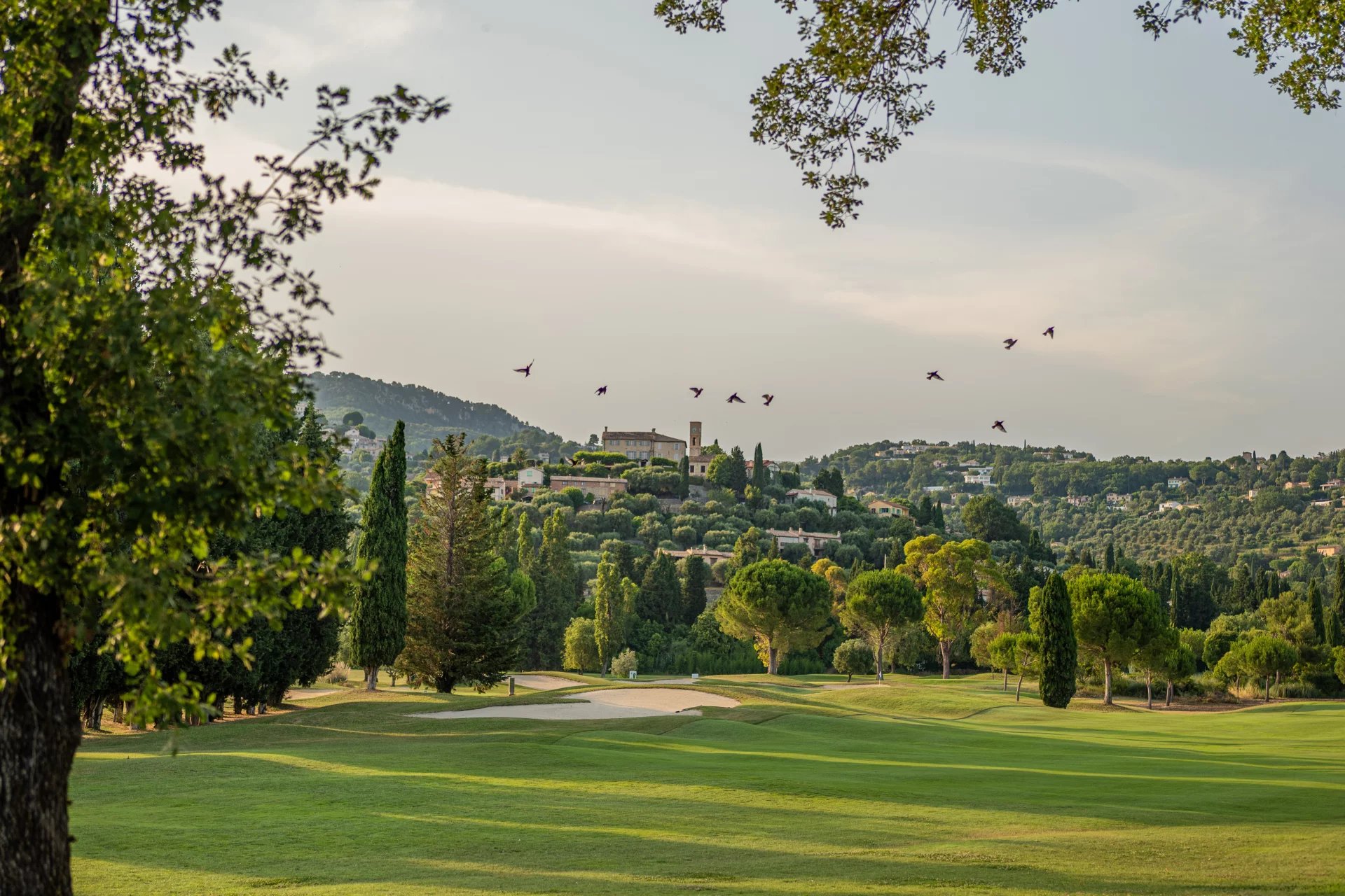 On a flat and unoverlooked south-facing plot of land of around 2000 m2 with uninterrupted views of the golf course and the village of Opio.