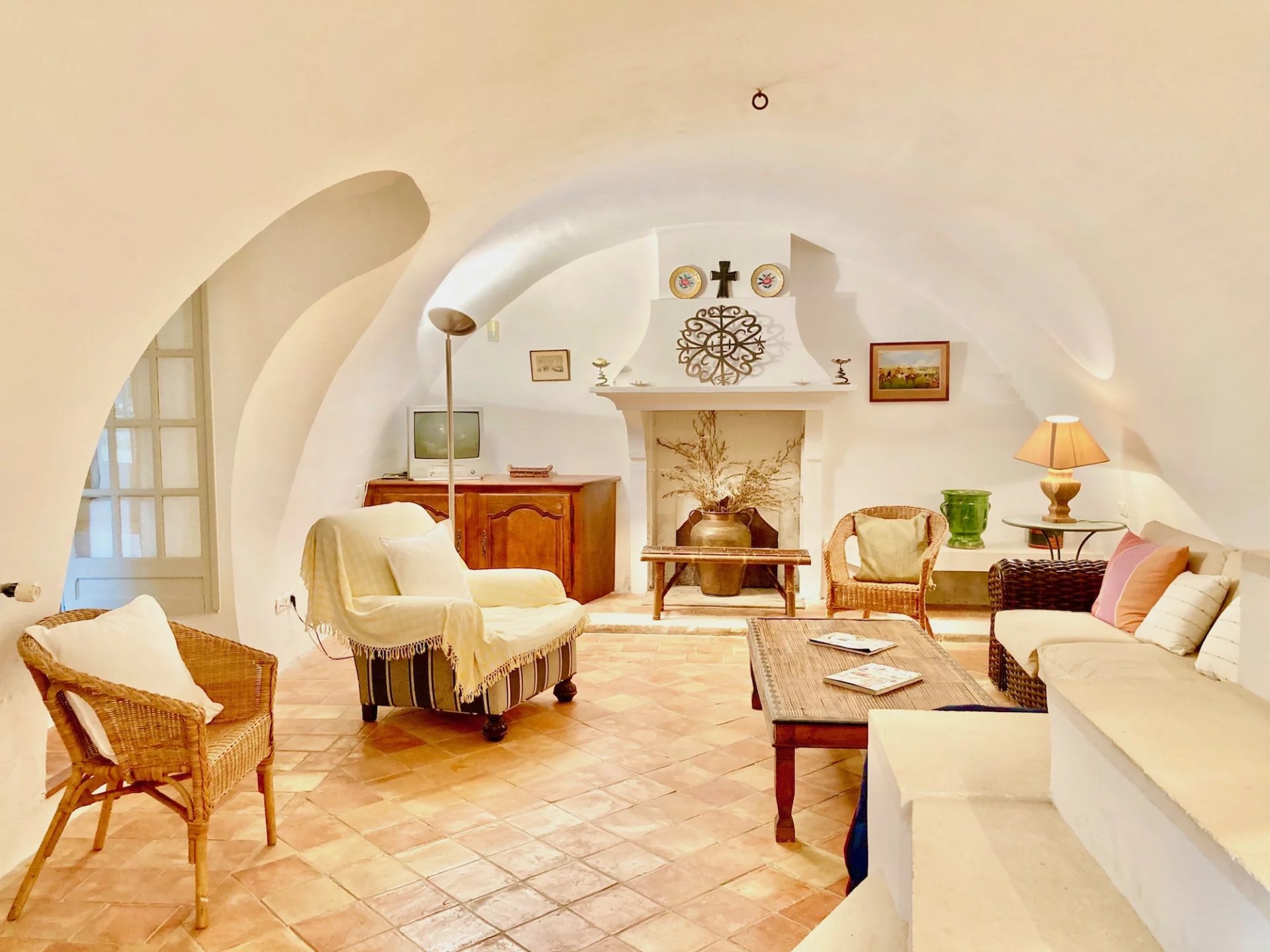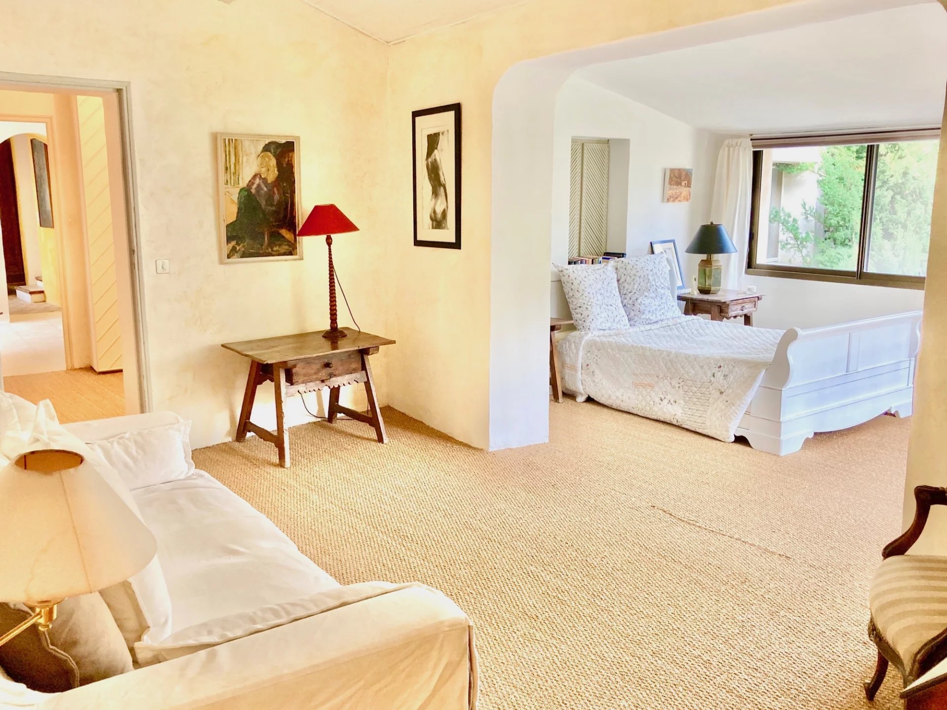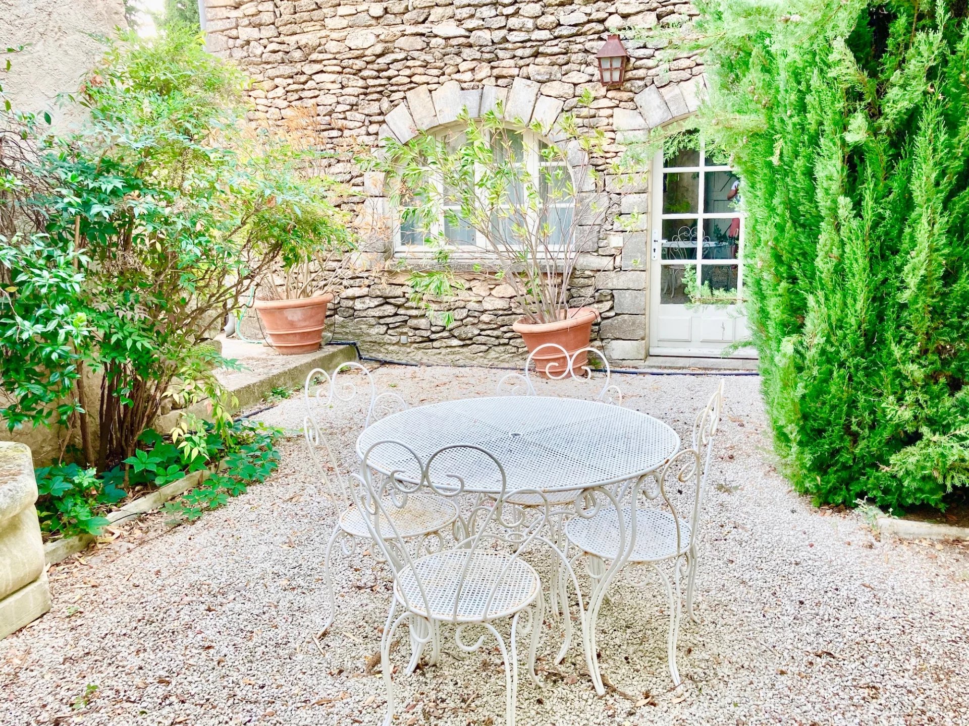 A garden/courtyard is beautifully landscaped with Provencal species. A swimming pool, a large summer awning, several terraces and a pool house with sauna and WC decorate the house. Two courtyards, one with a fountain, an enclosed and private parking space complete the package.