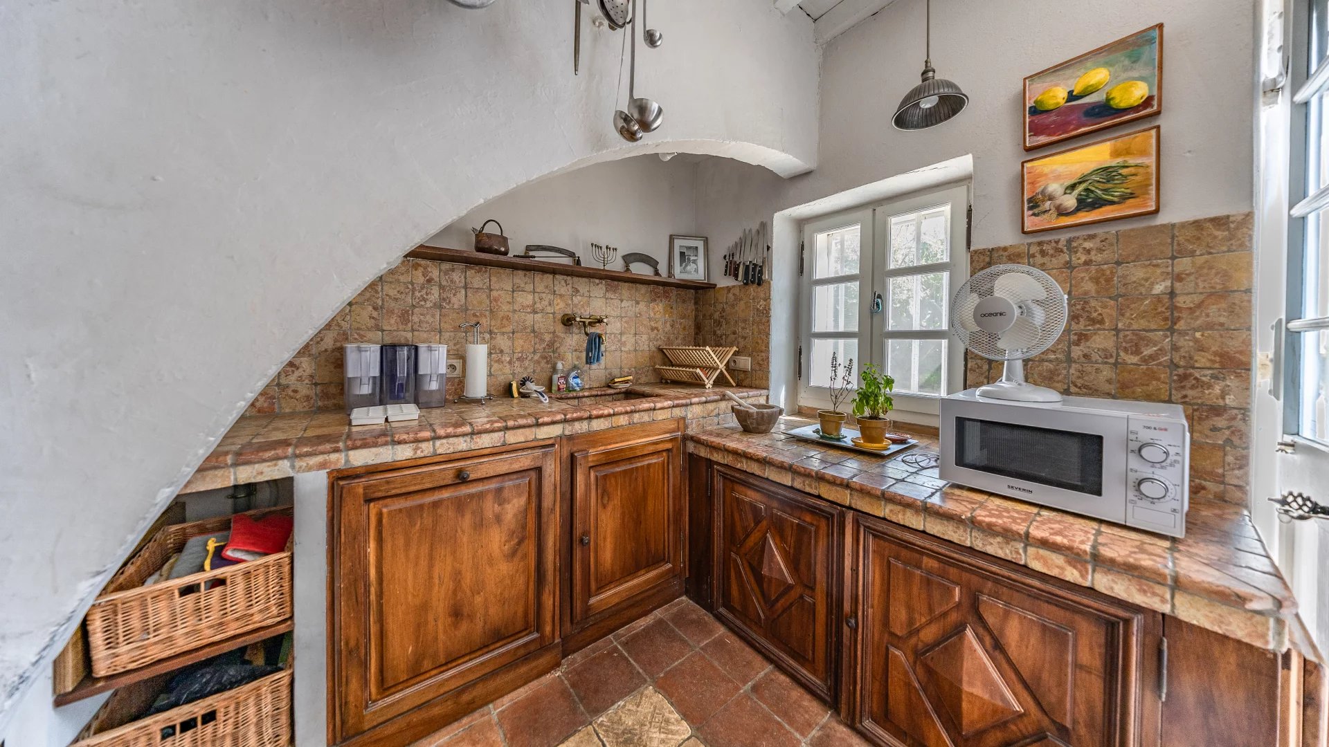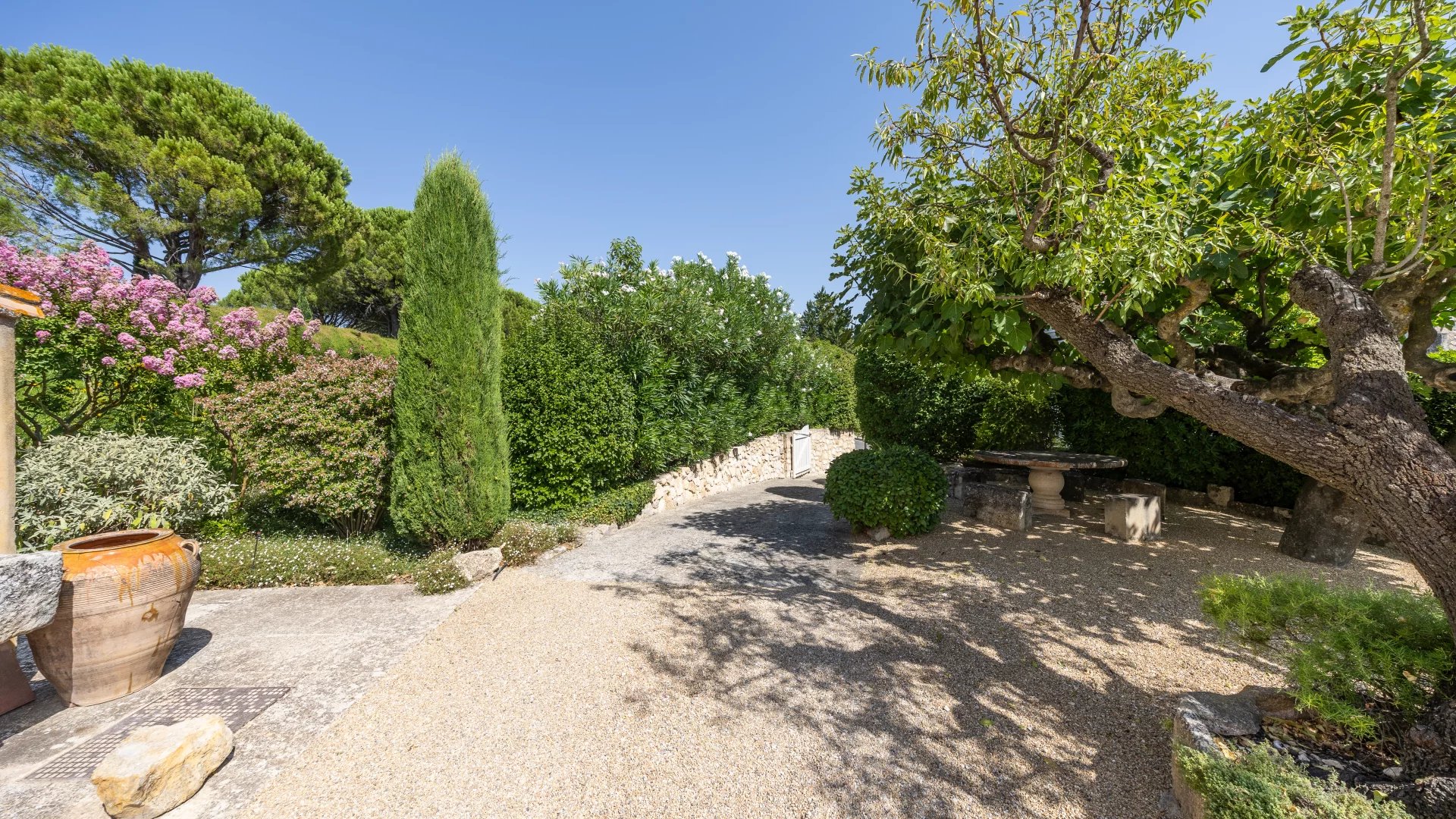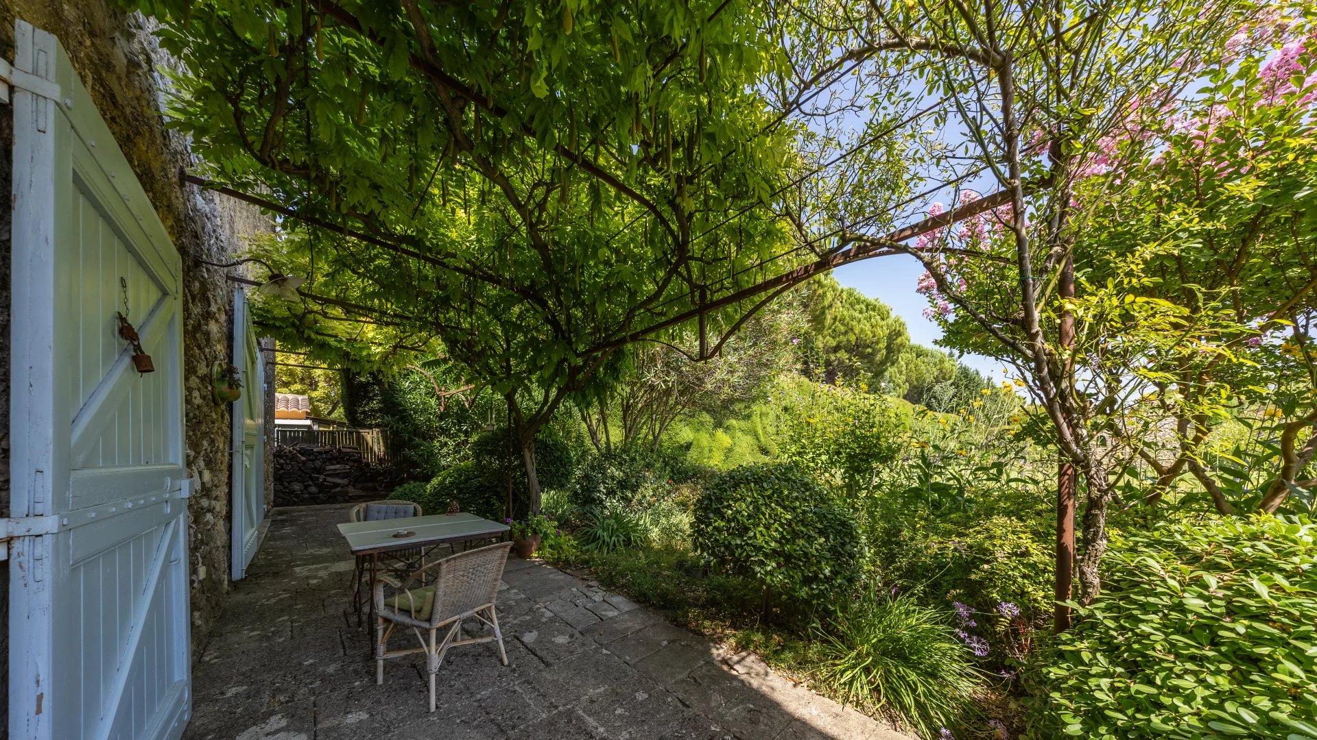 Outside, a convivial terrace overlooks the enchanting, landscaped gardens which are completely enclosed and extend to around 1,800m2 featuring a border of Mediterranean shrubs and plants, a discreetly positioned 5x10m swimming pool with a pool house, a well, some fruit trees and space for parking.