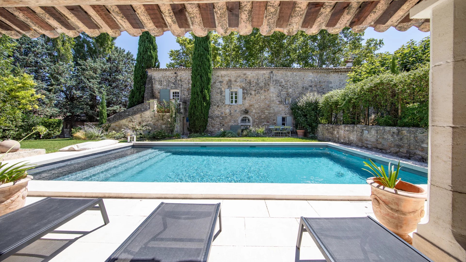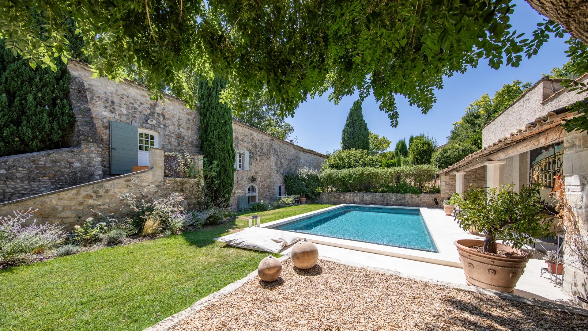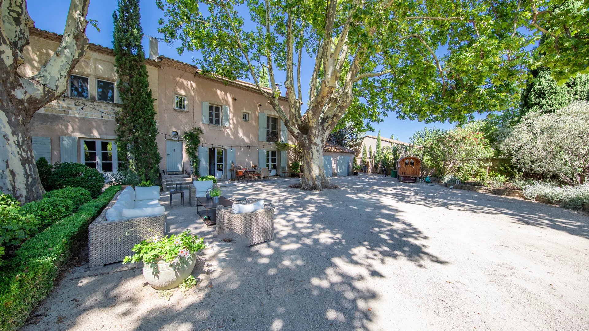 Framed by two majestic plane trees that provide dappled shade during the warm summer months, the property is a true embodiment of Provence’s timeless elegance. The beautifully landscaped gardens, filled with Mediterranean flora, create a serene and private setting, enhanced by a discreetly positioned swimming pool (10 x 5 m)—ideal for cooling off under the Southern sun.
