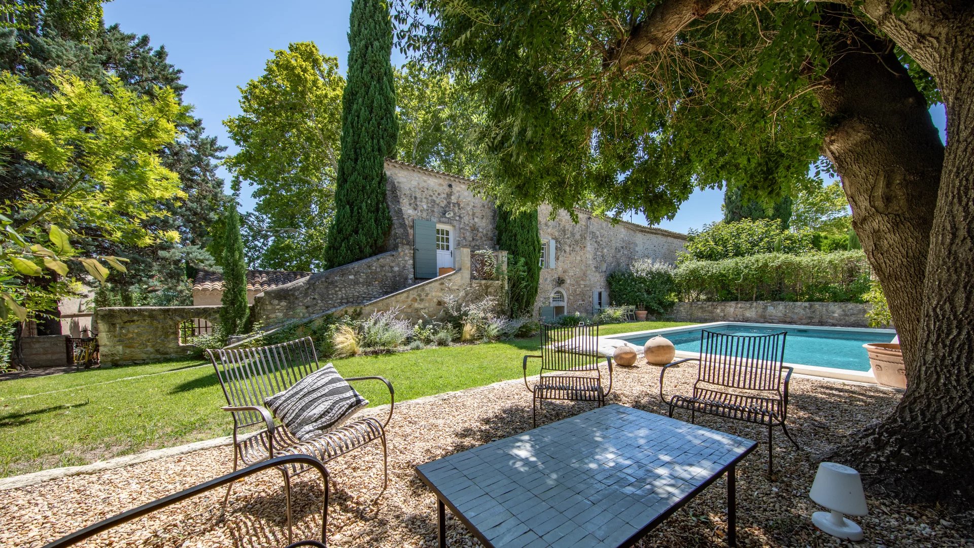 Nestled in the heart of one of the most sought-after villages in the Alpilles, this stunning and authentic stone mas enjoys an idyllic location, just a two-minute stroll from the village center, with its quaint cafes, boutiques, and Provencal charm.