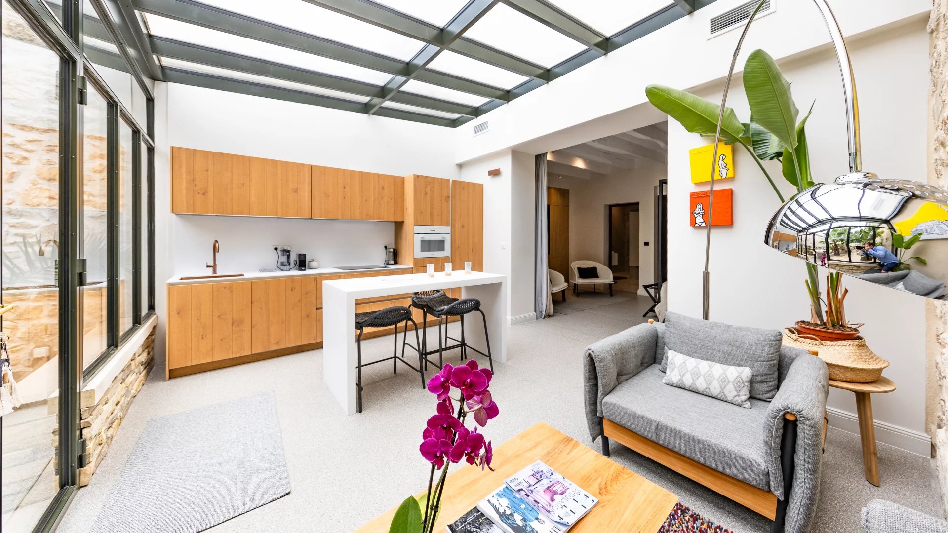 Set in the heart of the village of Paradou this imposing stone building, a former olive mill dating back to the 17th century, has been completely renovated with great taste and elegance, successfully combining the charm of the past with the modern comforts of today.