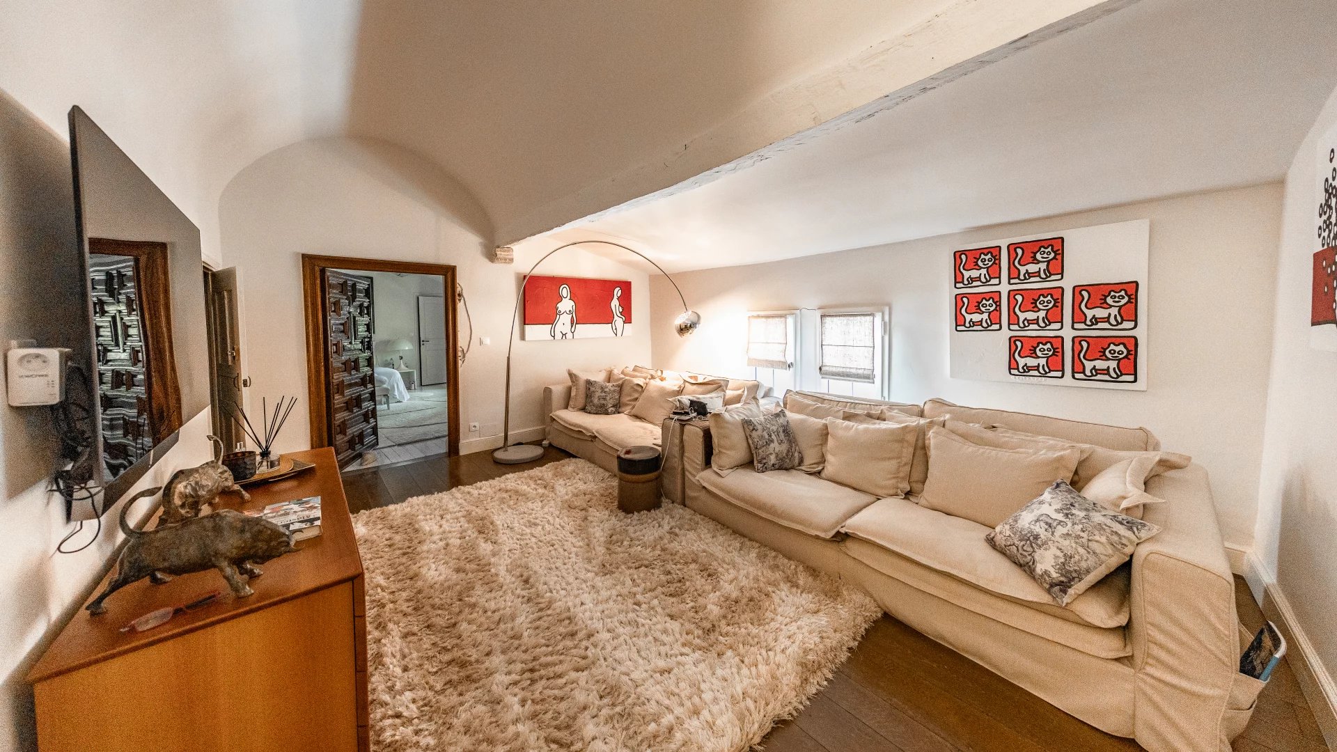 It is notably characterised by a magnificent, vaulted reception room of over 120 m2 with very high ceilings, opening onto an internal patio and a fitted kitchen. Also on the ground floor are three self-contained apartments (55 m2, 38 m2 and 50 m2), as well as a gym and an 85 m2 garage.