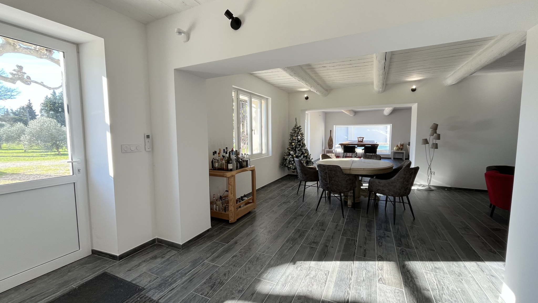 The contemporary house of approximately 200 m2, detached and with its own swimming pool, has 5 bedrooms, 3 of which are en suite, as well as a large living room with fireplace and a large open kitchen, all opening onto a terrace.