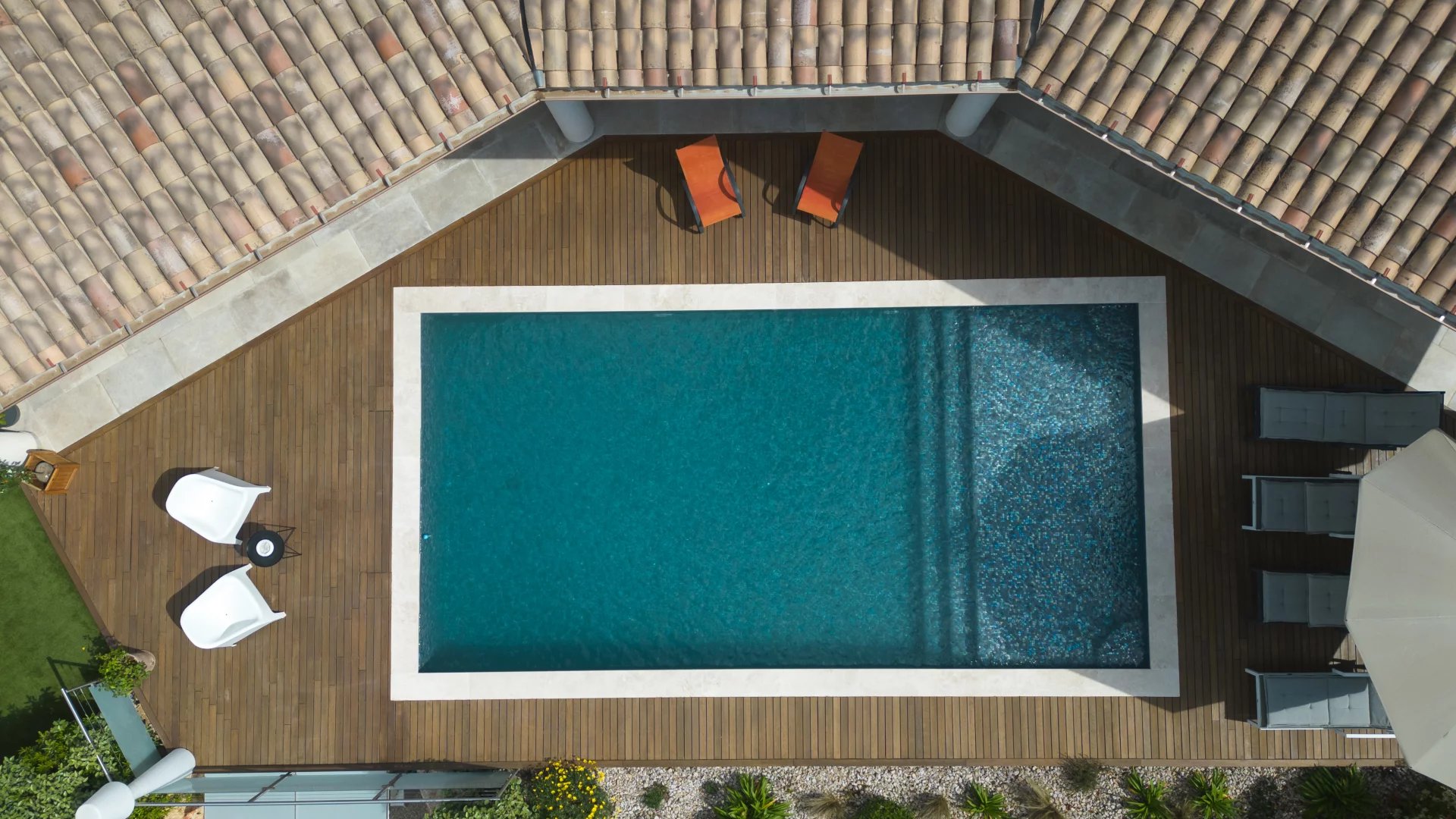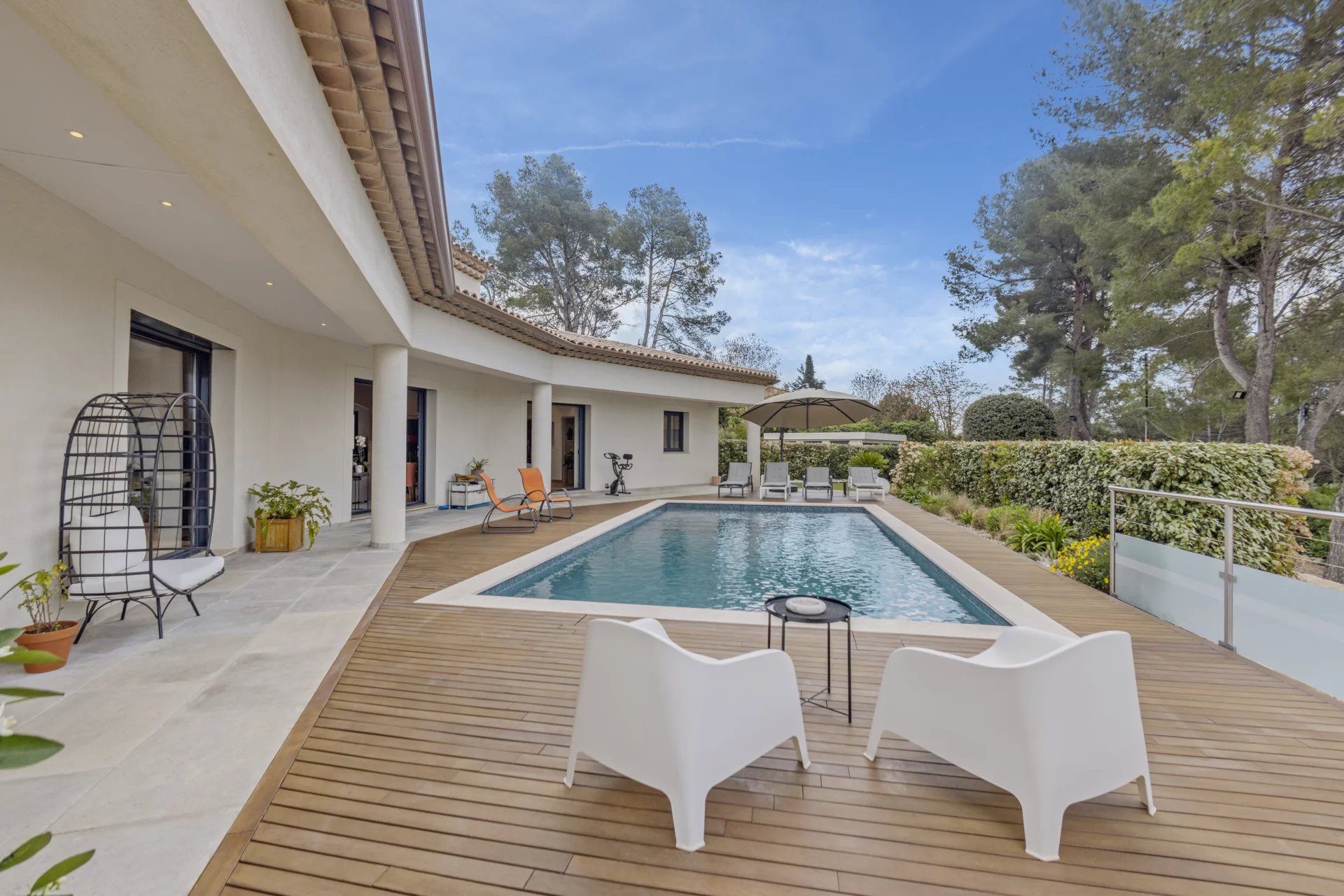 The flat, fully enclosed 2563 m2 plot, superbly landscaped, is located at the end of a dead end street, offering absolute peace and quiet.