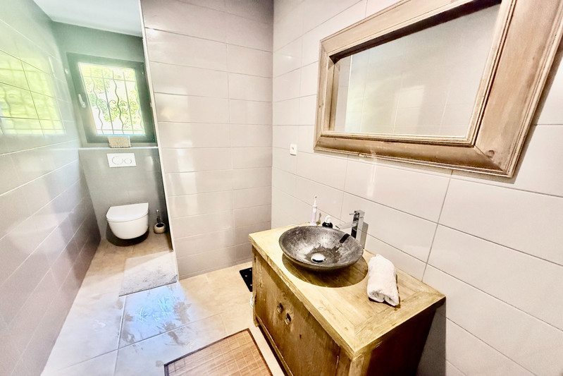 The enclosed, landscaped garden is fully landscaped, featuring an automatic irrigation system and garden lighting that creates a warm atmosphere in the evenings. For leisure, you”ll enjoy a traditional 10 x 3.5 m swimming pool, a petanque court, and an electric gate for added security.