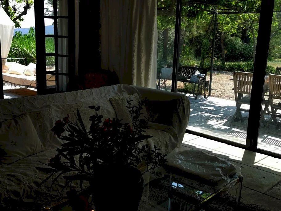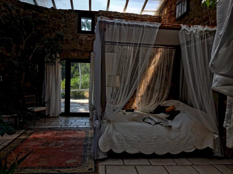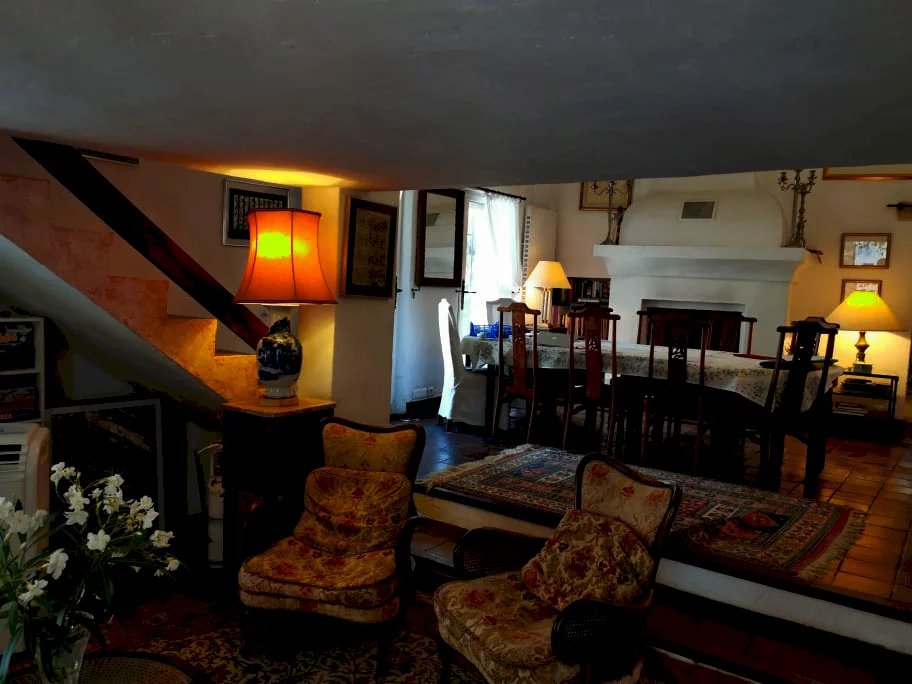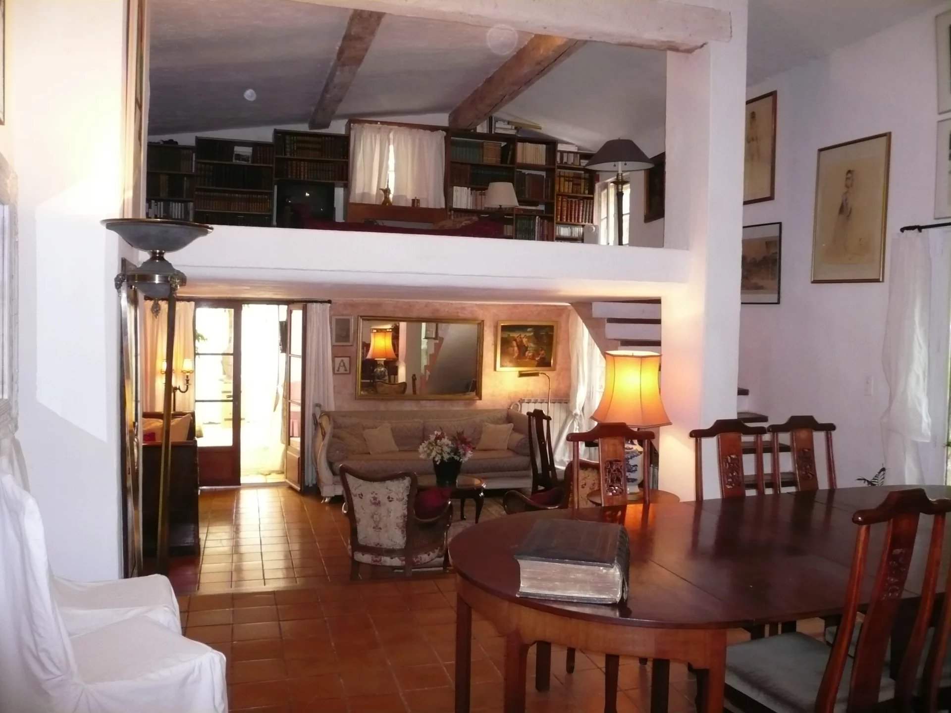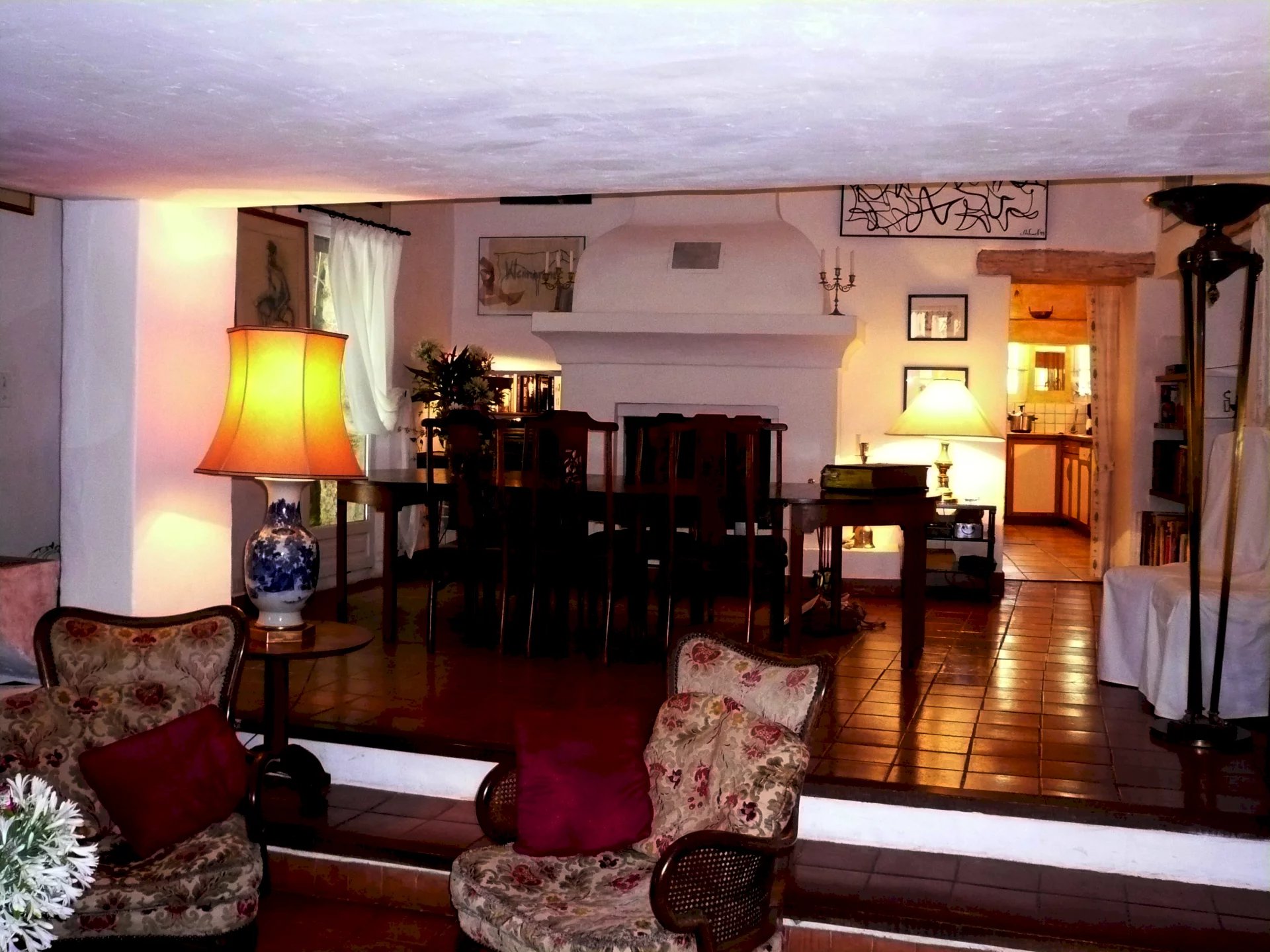 Nice and large living room with mezzanine used a a library or bedroom. Independent equipped kitchen approx 23 m2. Very nice dining room close to the kitchen, very bright and opening out to nature. The main house has 4 bedrooms.