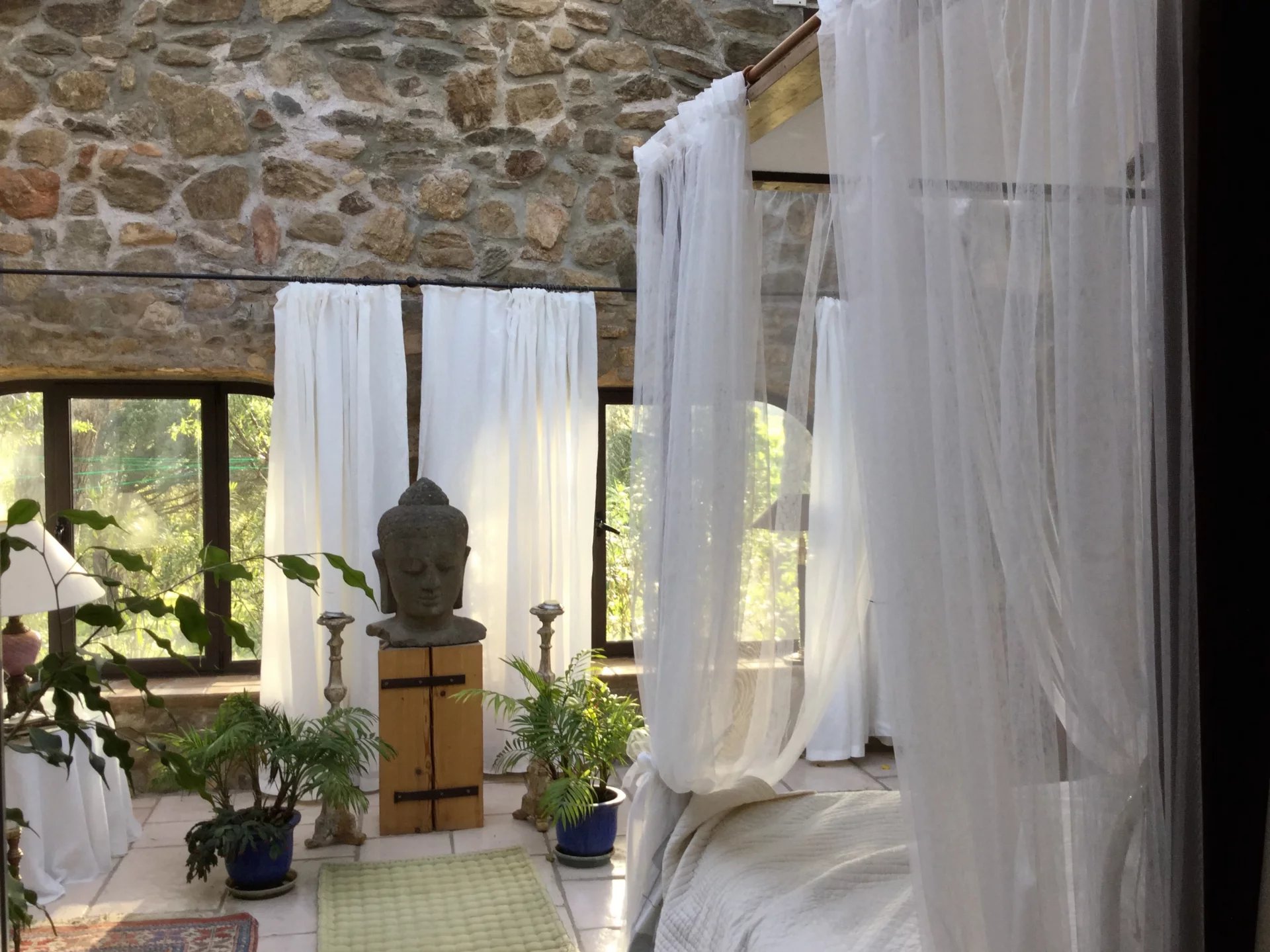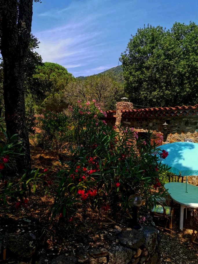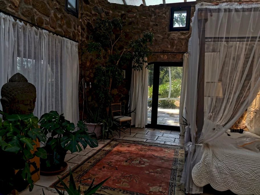 Nestled into the hillside, wonderful stone Mas consisting of a main house, a caretaker’s house and another guest house.