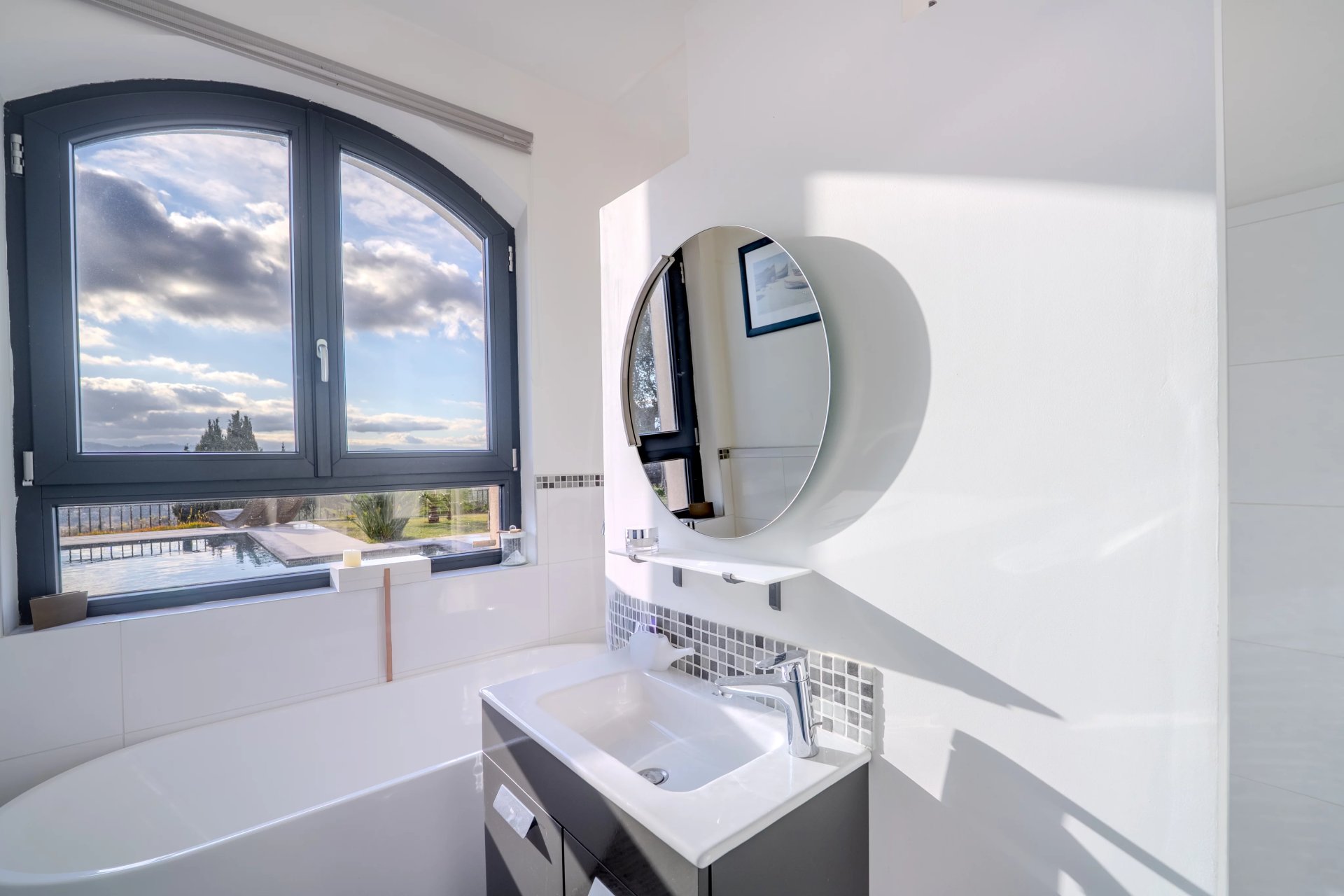 Just a few minutes from the village of Valbonne, this renovated 217m2 property with swimming pool and jacuzzi will seduce you with its spectacular panoramic views, from the bay of Cannes to the mountains of Grasse, all set in landscaped grounds of approx. 3500m2.